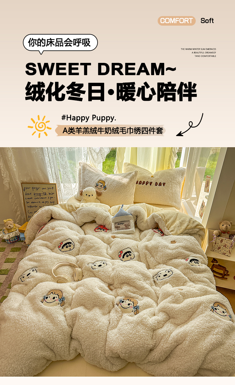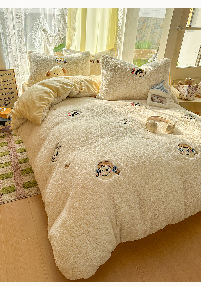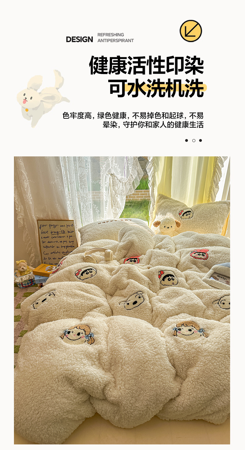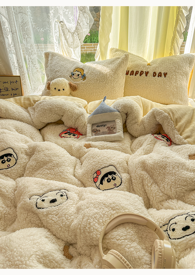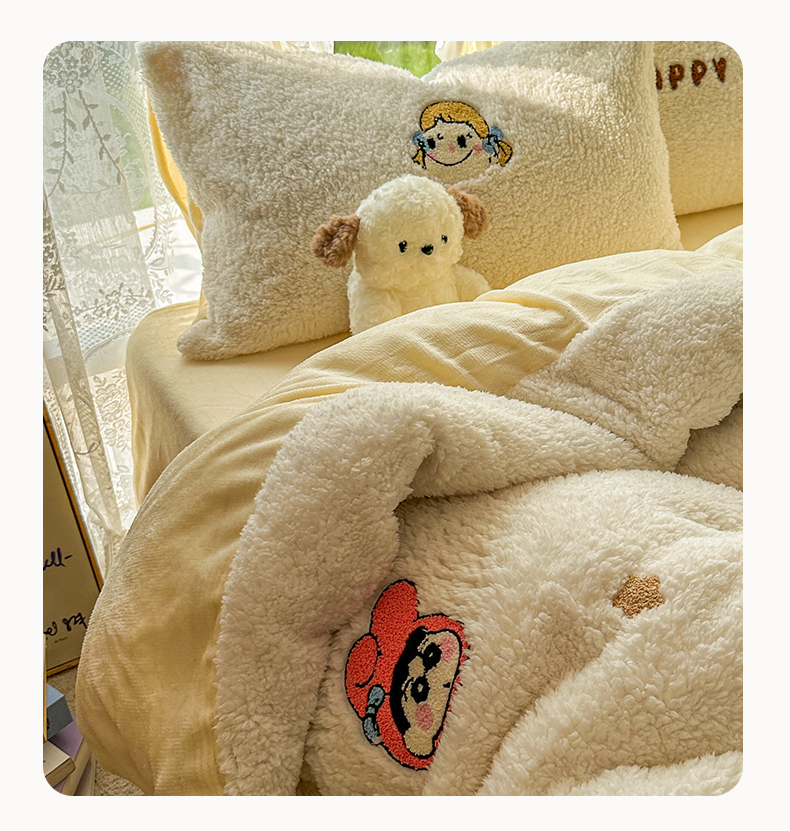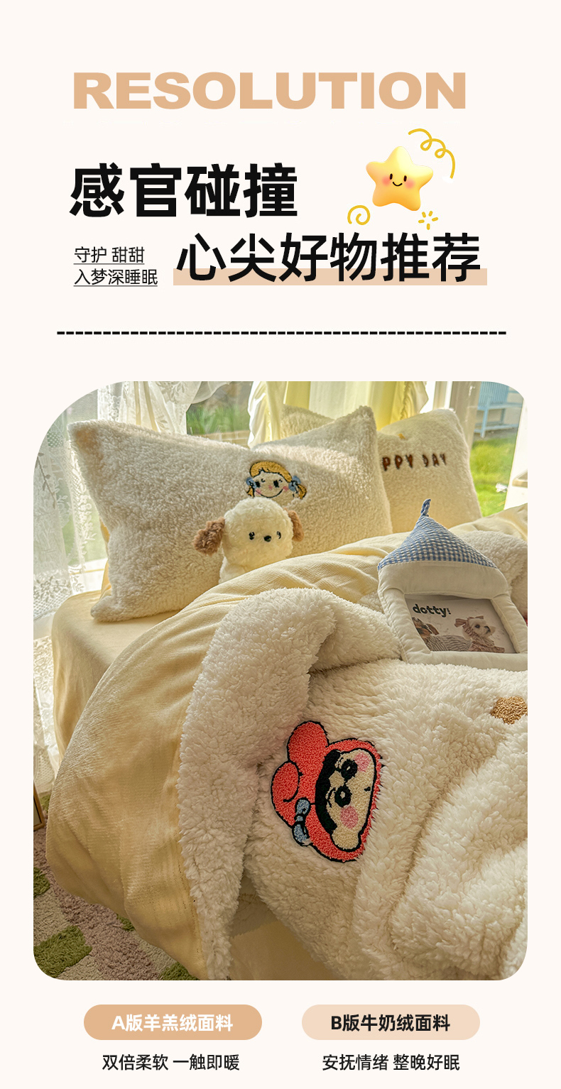 当前位置: 91家纺网 > 商品网购 > 床品套件 > 四件套 > 羊羔绒四件套 > 颜选 2025新款卡通羊羔绒四件套 小新世界