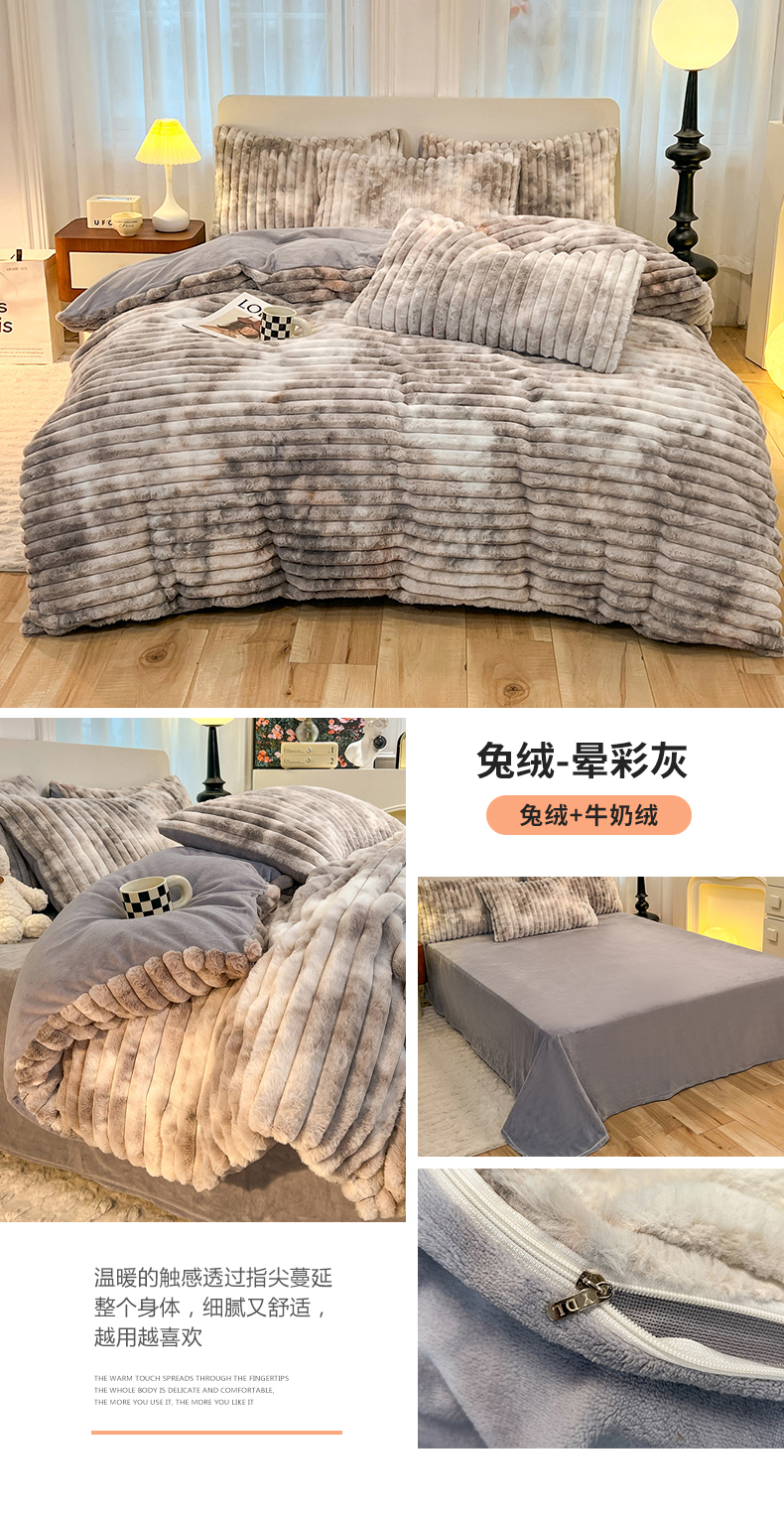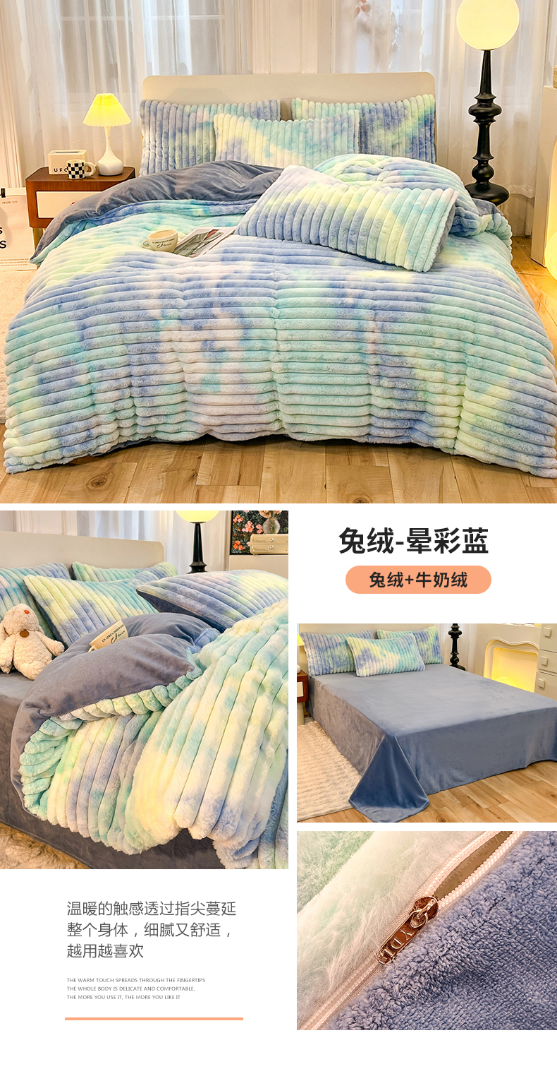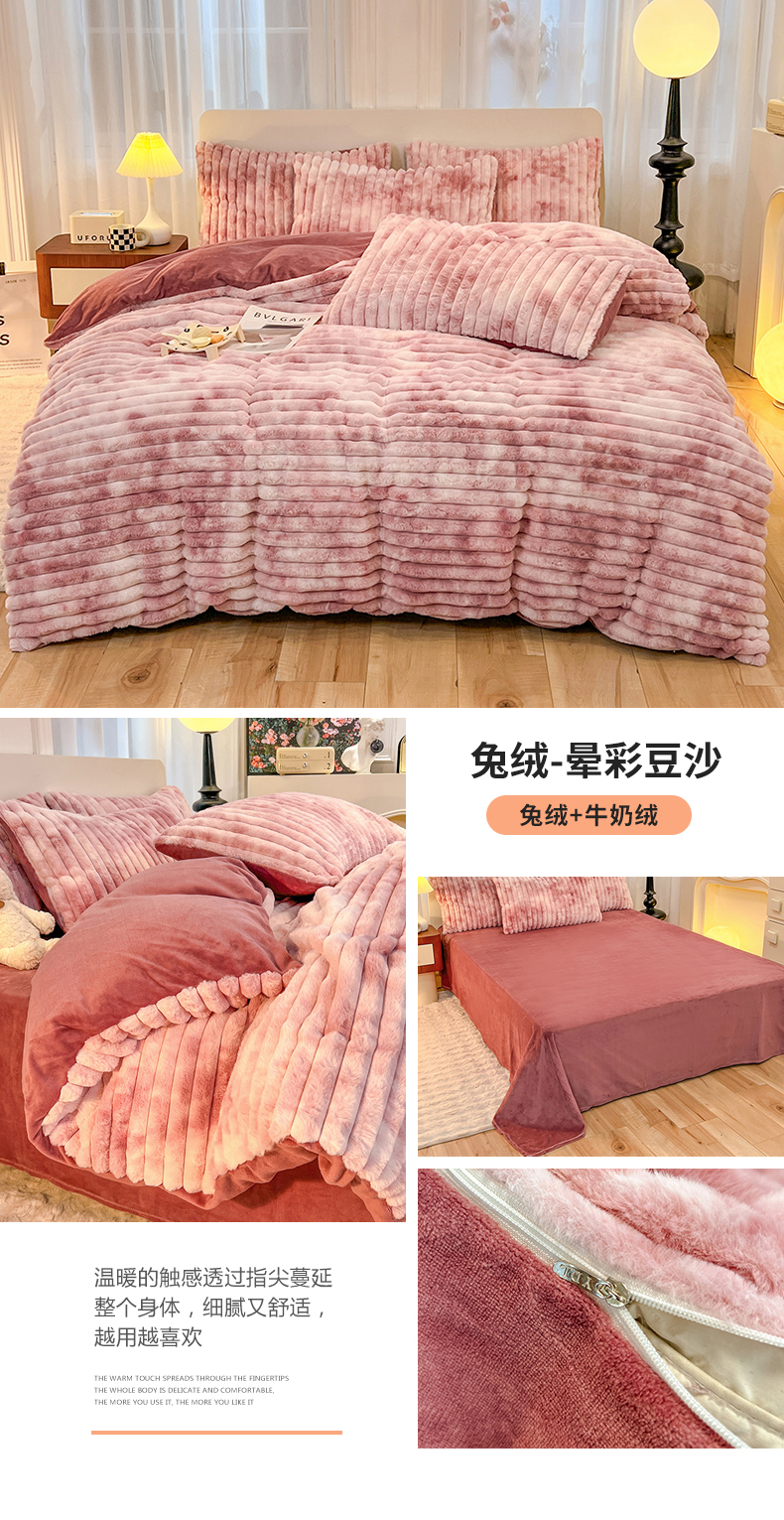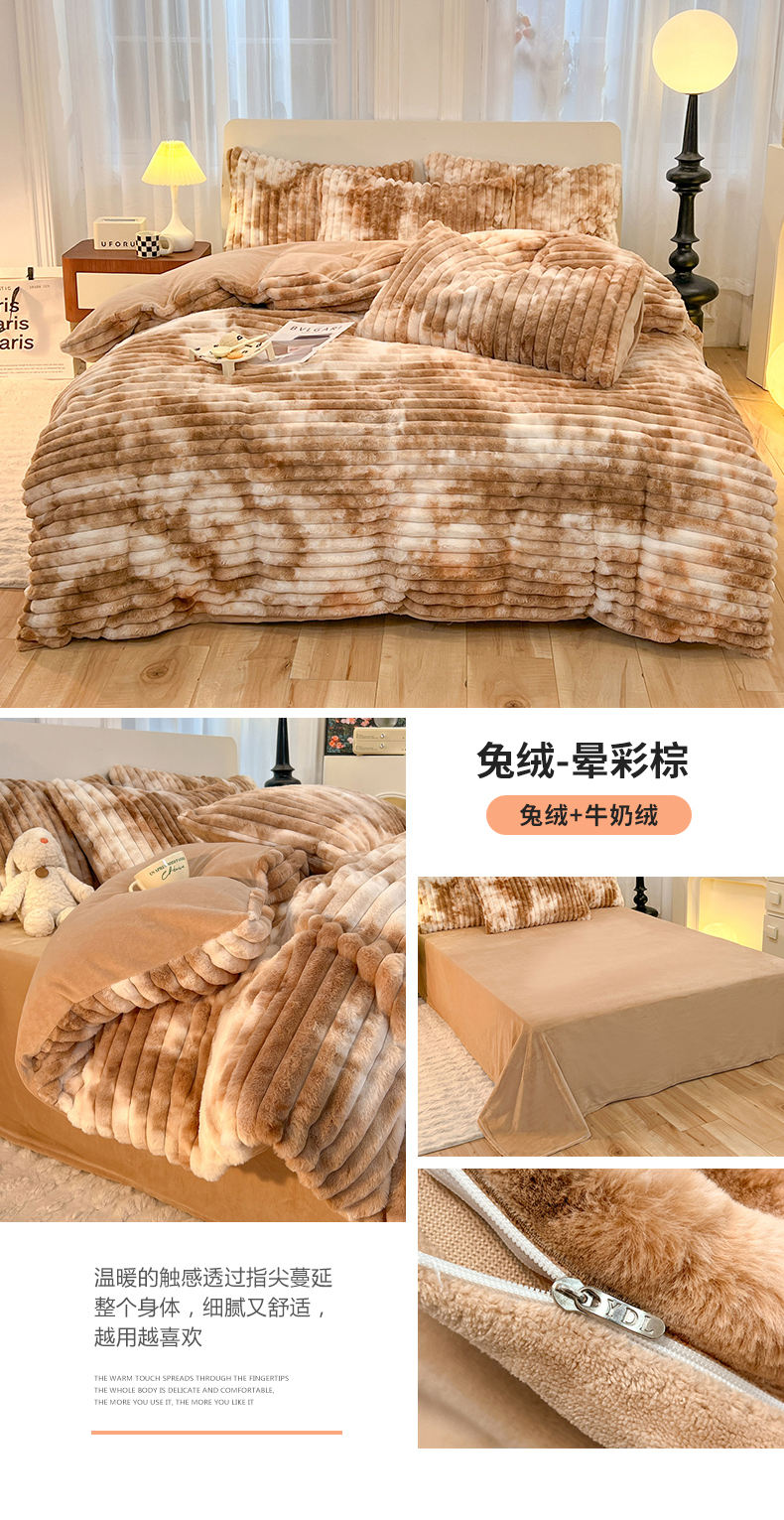 商品名称:(总)2025年新款 高克重 短毛绒兔毛绒牛奶绒四件套-8斤 晕彩系列