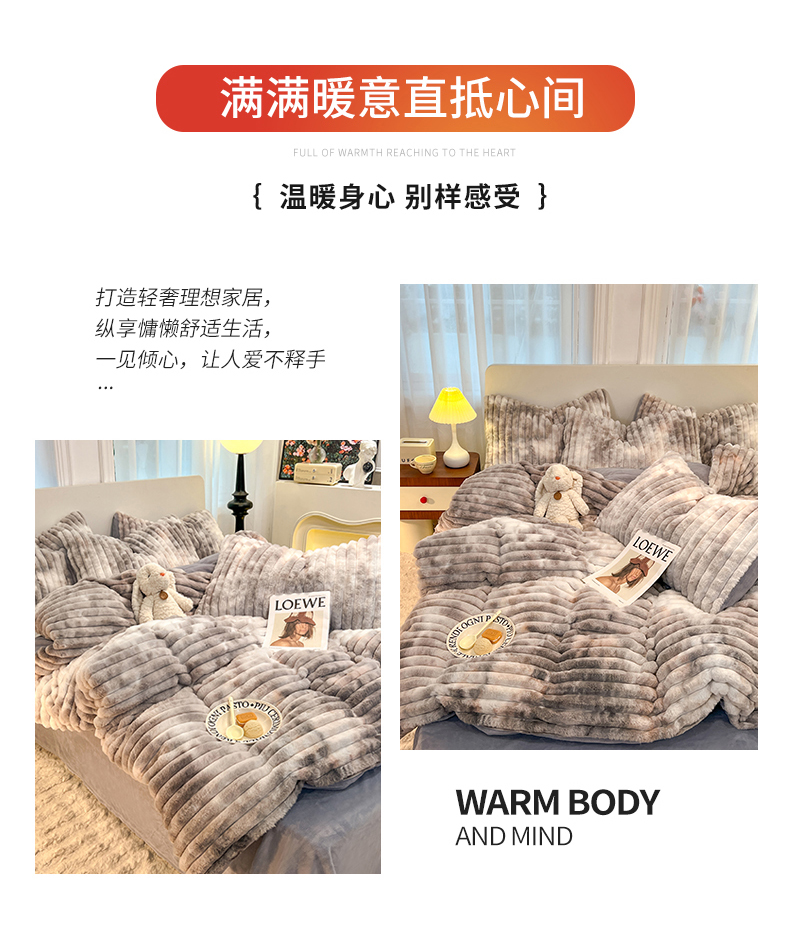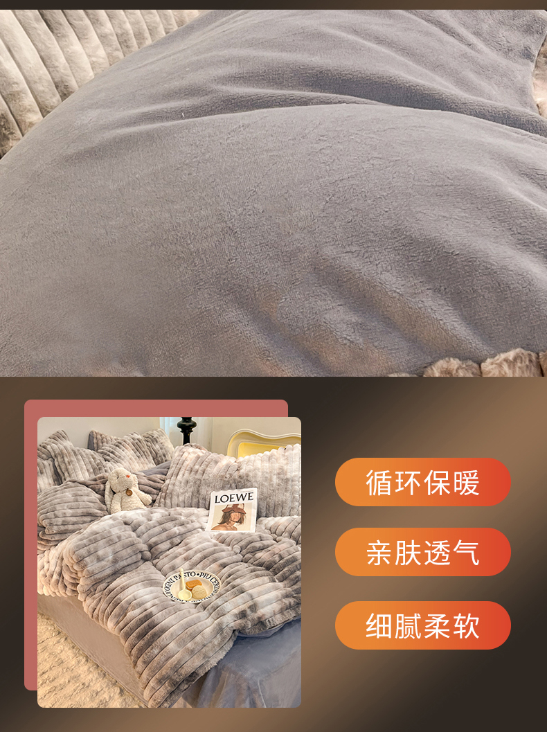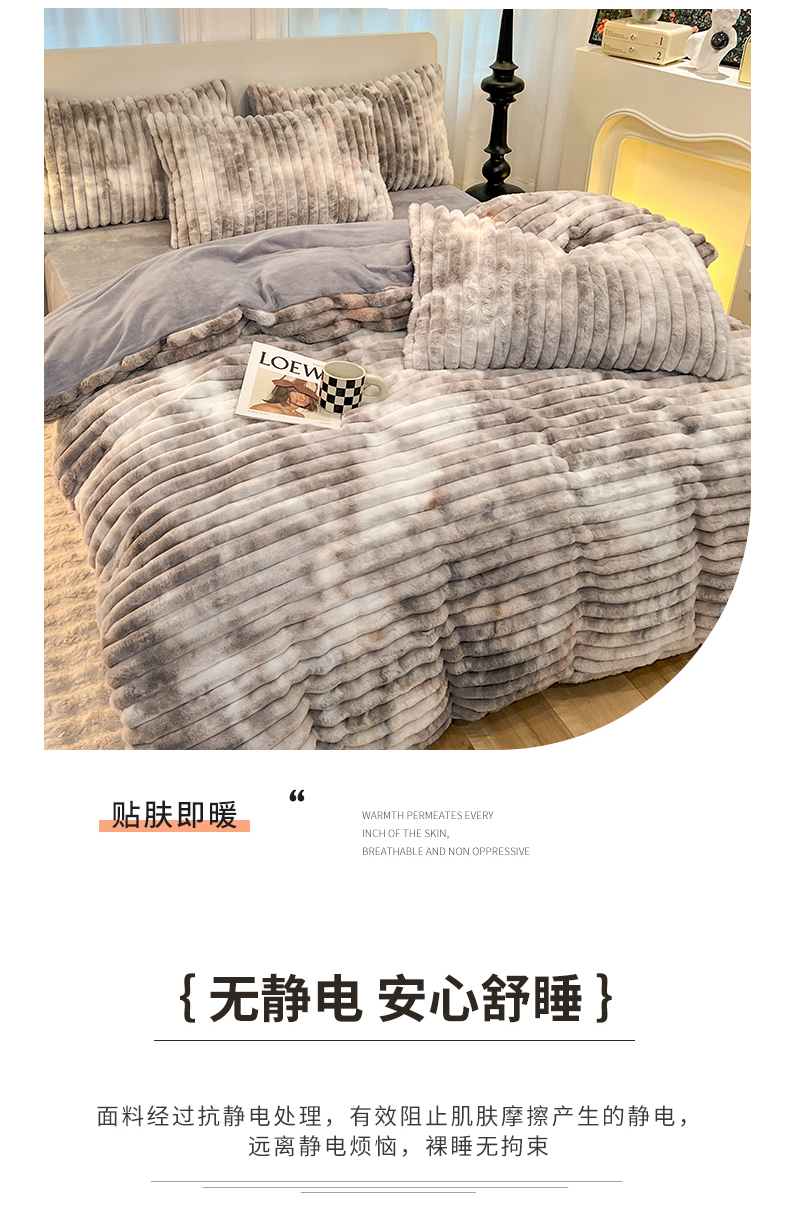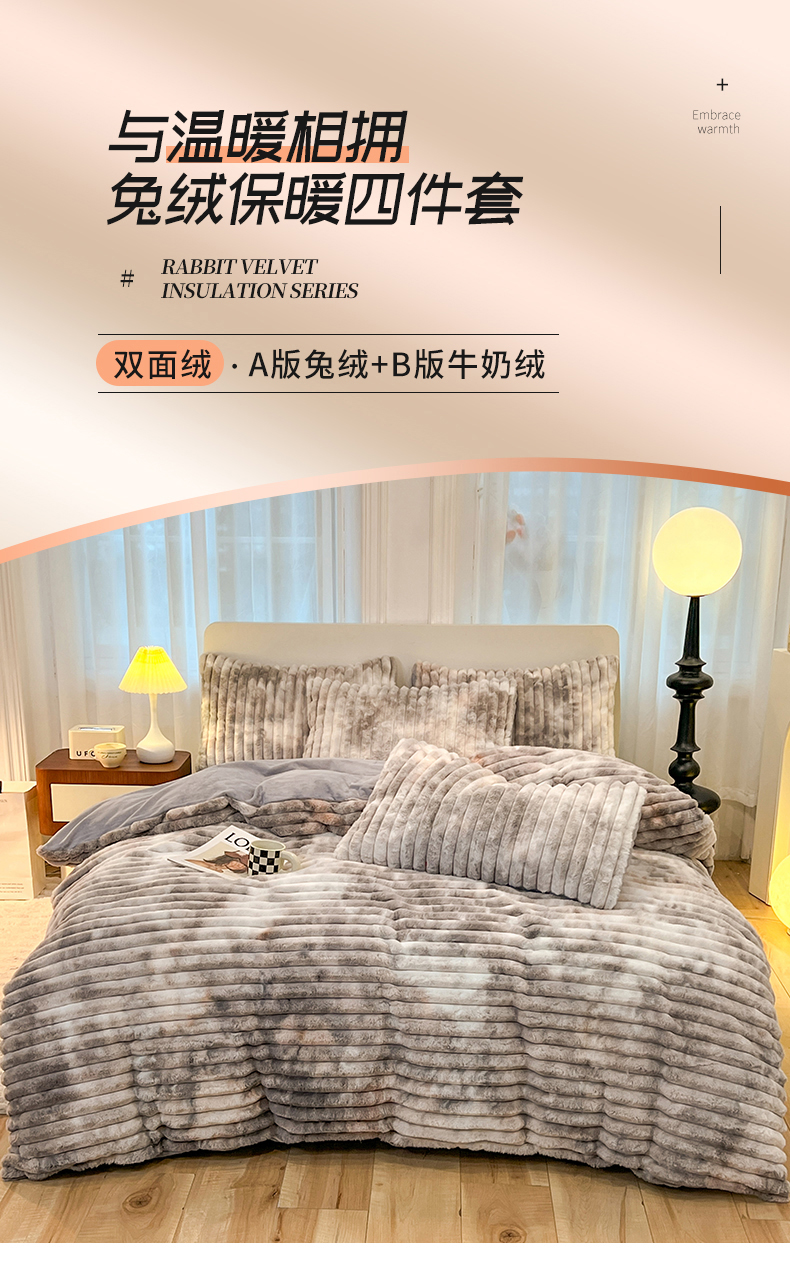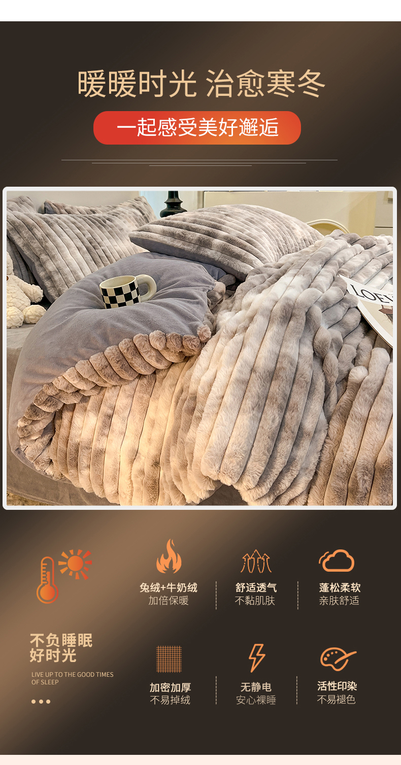 商品名称:(总)2025年新款 高克重 短毛绒兔毛绒牛奶绒四件套-8斤 晕彩系列