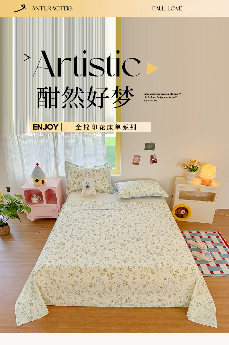 (总)尚帛 2026新款全棉时尚印花单床单,艾米丽-绿,宠爱,花间采趣-咖,可可甜心,可颂日记,浅影,如玉如兰,碎花学院,五星集,叶柔粉,叶之恋