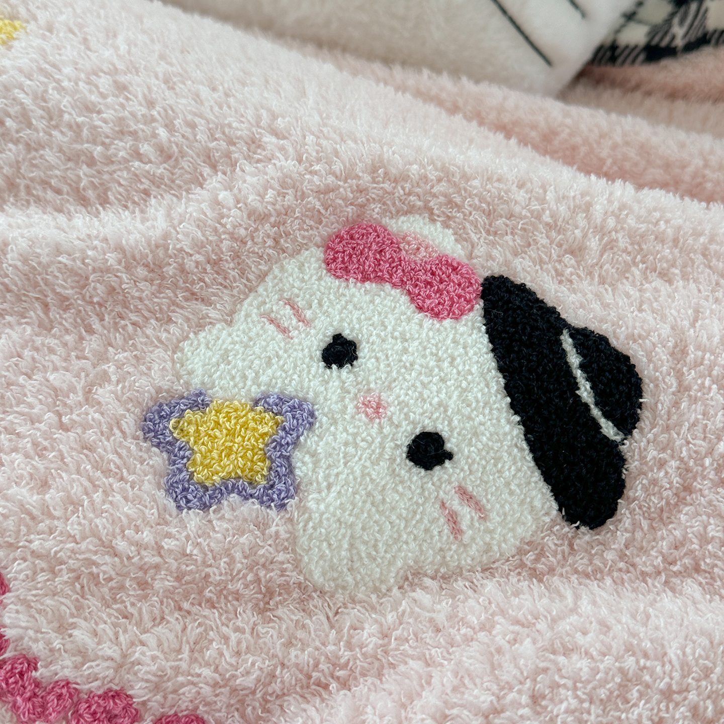 (总)柚子YOUTH 2025新款加厚牛奶绒卡通毛巾绣四件套-印加绣送同款毛毯,蛋糕小狗,公主猫,头套猫,兔兔花园,小伙伴,雪纳瑞