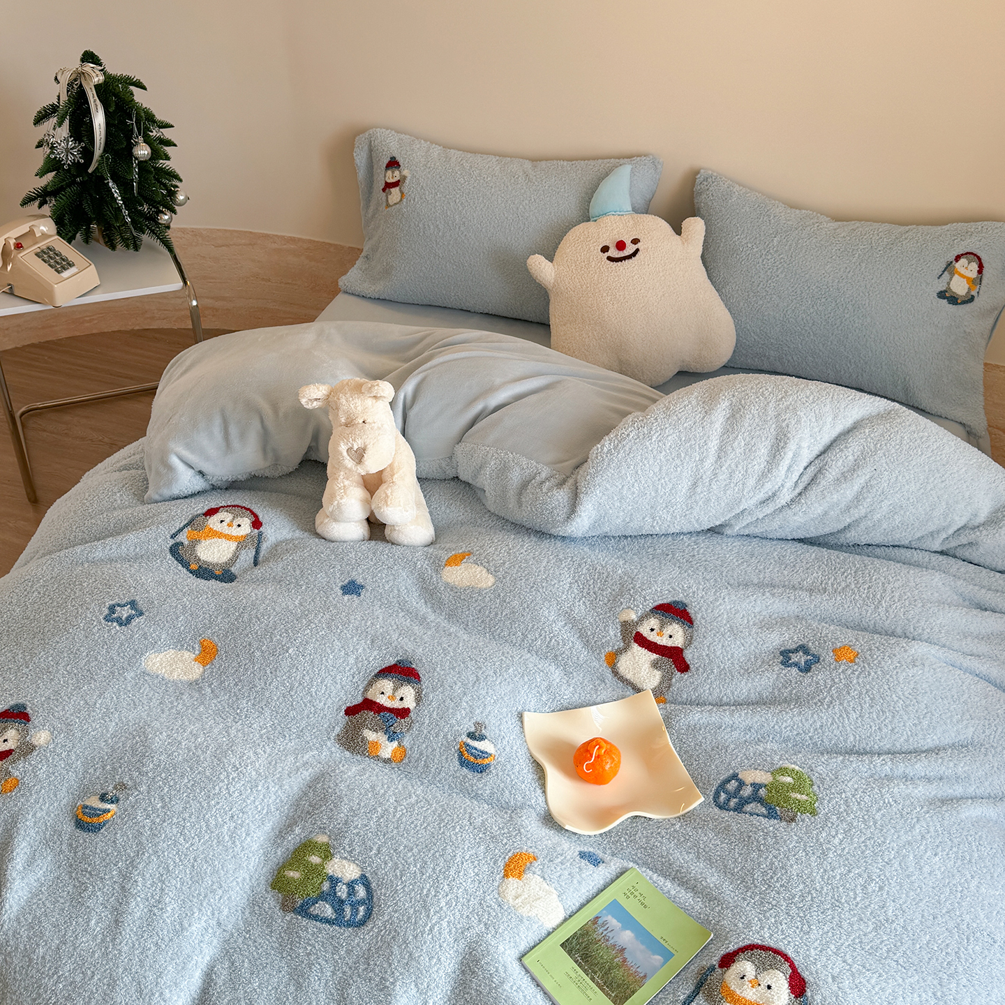 (总)柚子YOUTH 2025新款双面泰迪绒毛巾绣四件套,甜甜圈,快乐企鹅,森林聚会,甜酷KT,小茄子,雪人王国