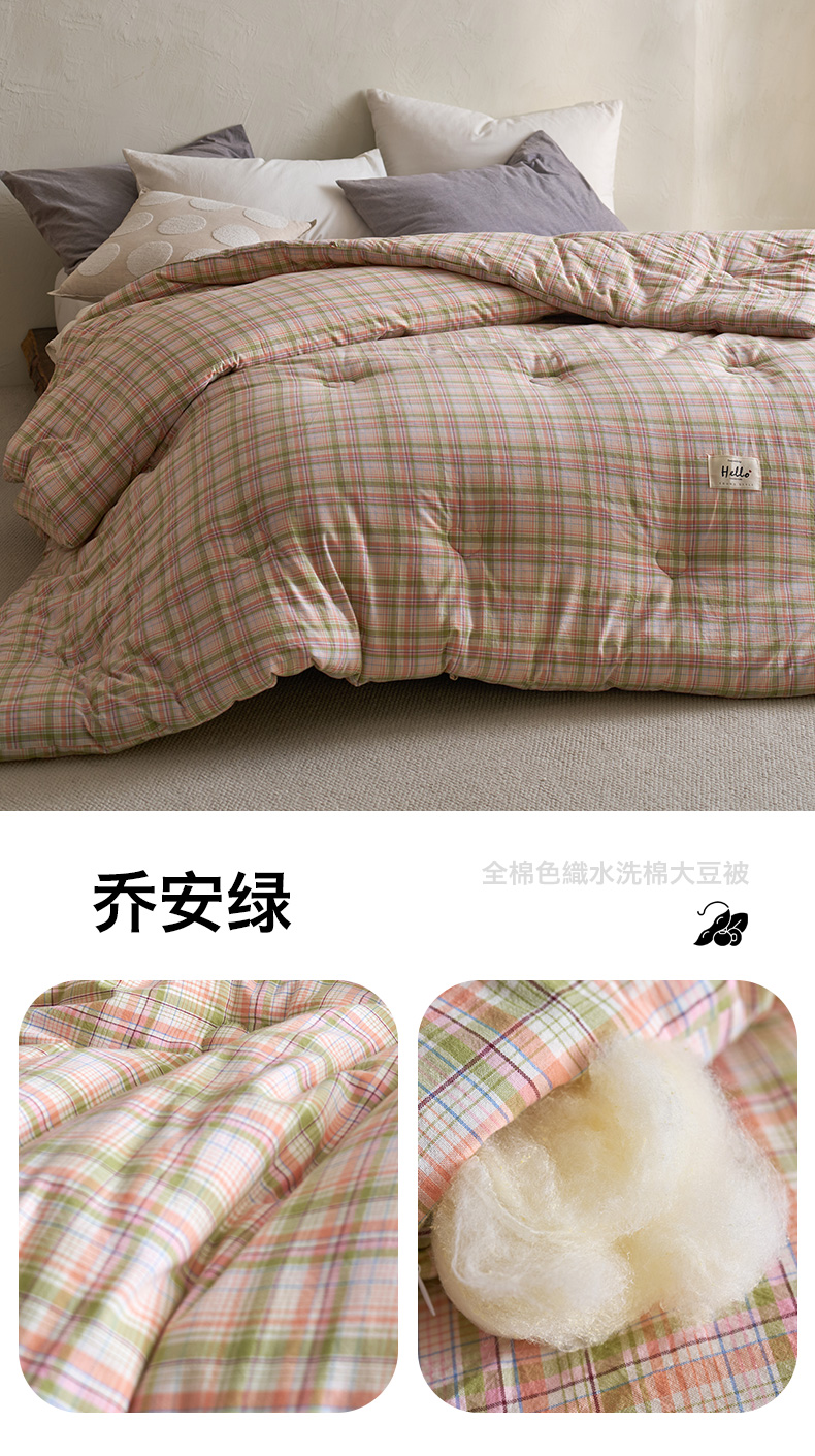 (总)久典家居 2025新款全棉色织水洗棉大豆被 被子被芯,组合图仅供展示不可下单,芭蕾粉,茶里咖,多芙绿,乔安咖,乔安绿,昭华粉,昭华蓝
