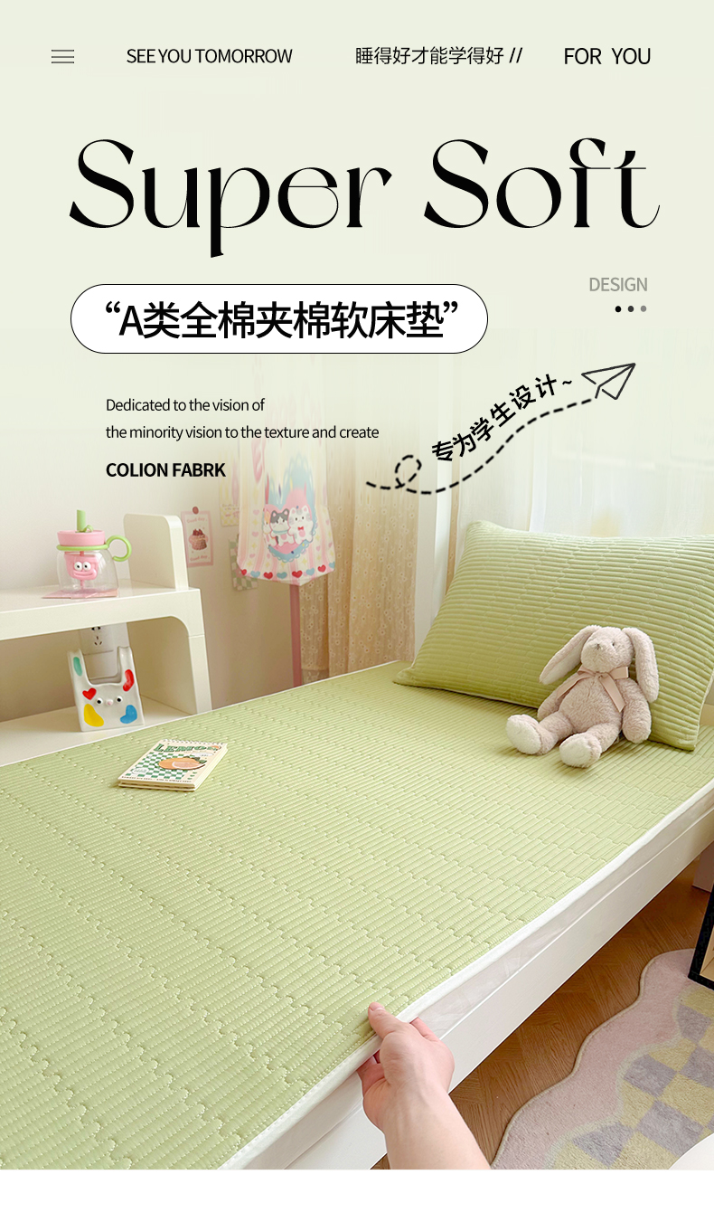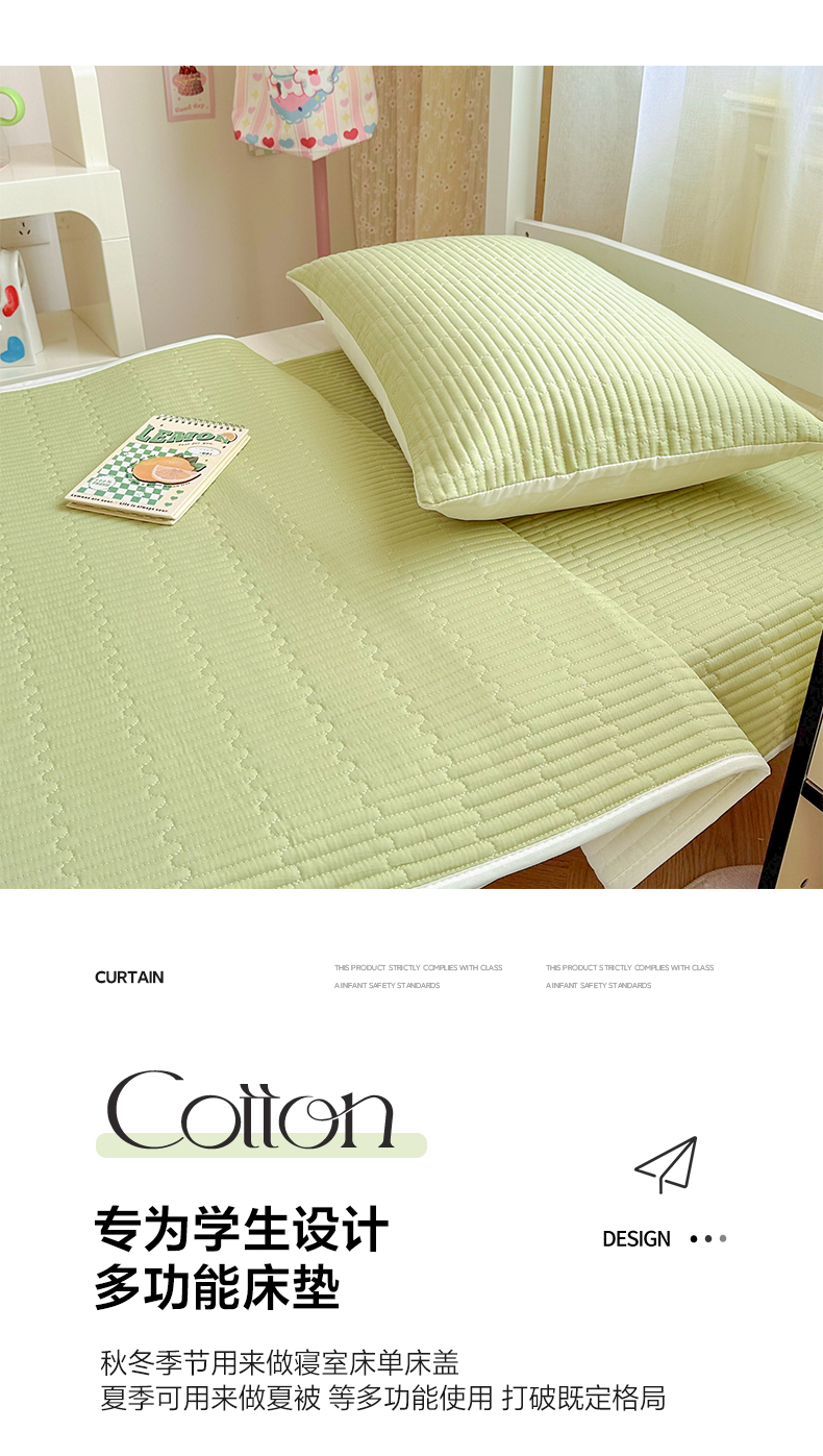 当前位置: 91家纺网 > 商品网购 > 床垫/床褥 > 普通床垫 > 妮可 2025热款学生床全棉夹棉多功能床垫-床盖 发芽绿