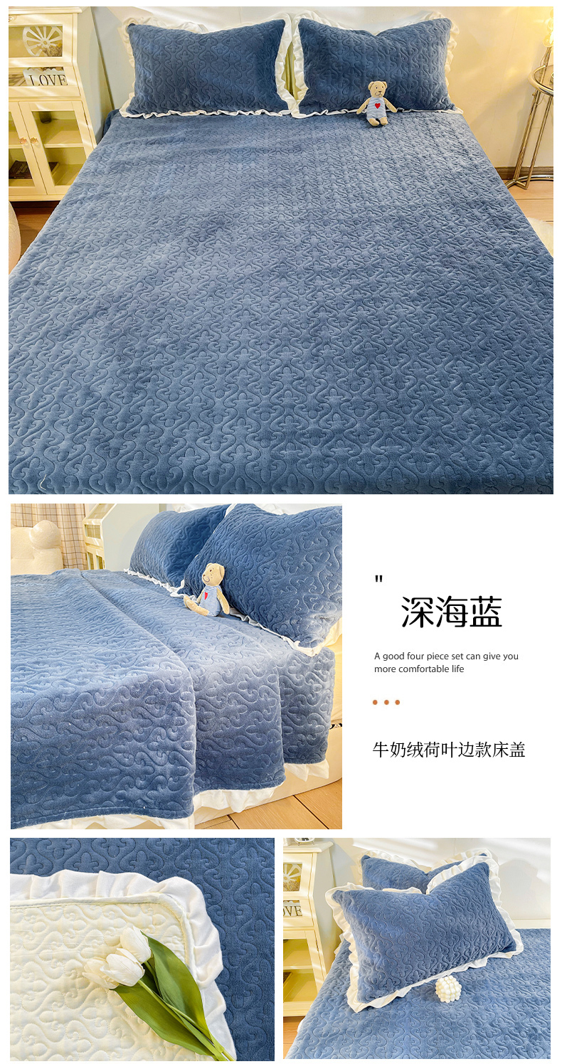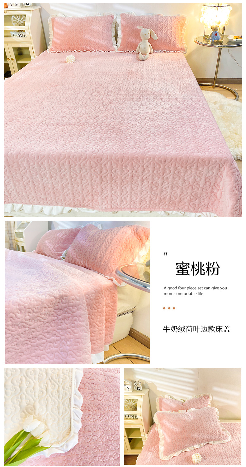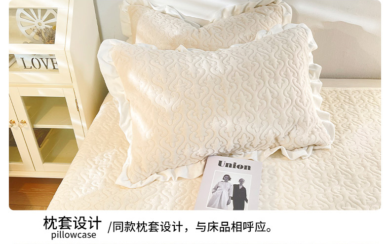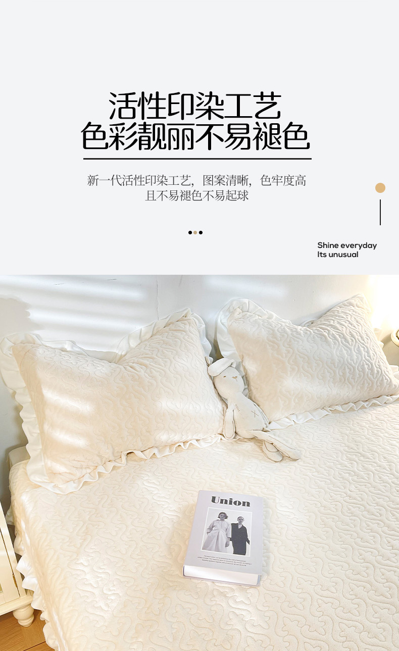 妮可 2025秋冬新款加厚牛奶绒多功能荷叶边纯色床盖 奶油白