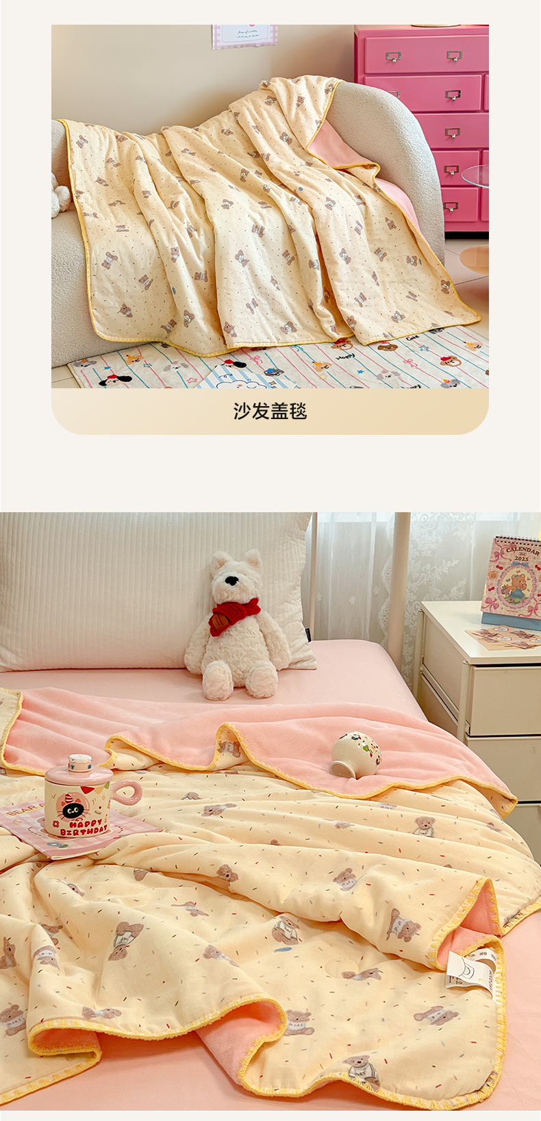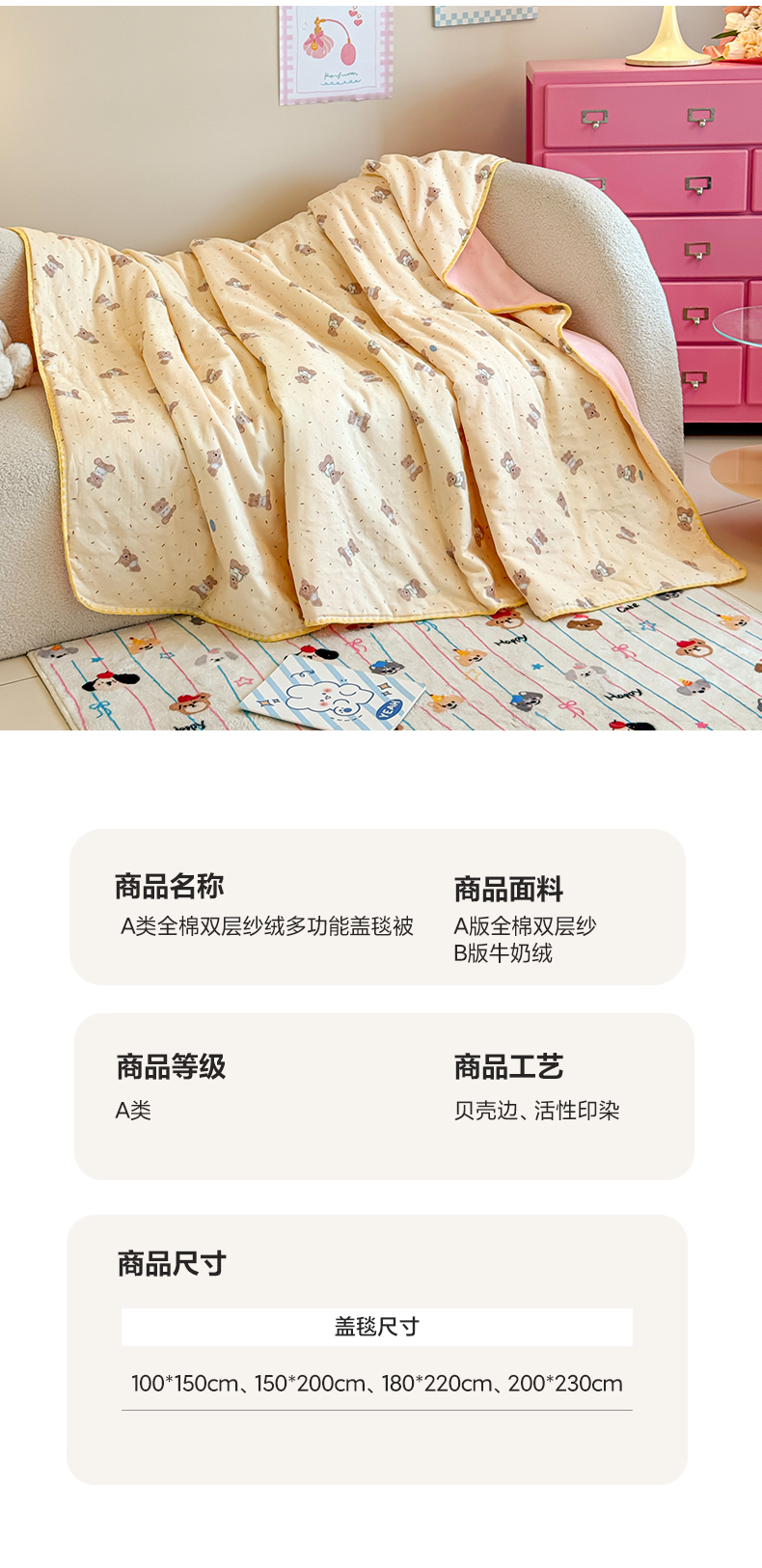 (总)妮可 2025新款跑量款全棉双层纱绒四季可用床盖系列,元气萌宠,花园兔宝,蓝汪拾趣,暖阳熊仔,甜梦凯蒂,甜心乐园,芋泥奶霜,组合图(仅参考)