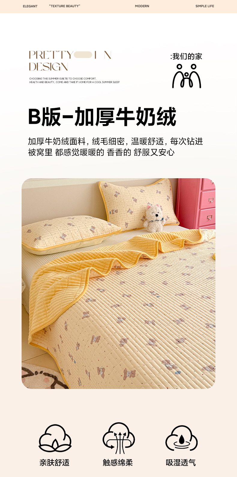 (总)妮可 2025新款四季款双面可用一面棉一面220克牛奶绒夹棉床单床盖,蓝芙-芳华,灰茉-格调,奶芙-小美满,暖芙-小桔,粉芙-漫花,绿茉-遇见