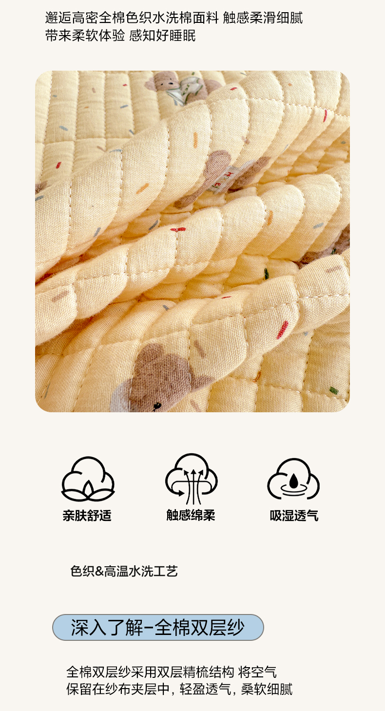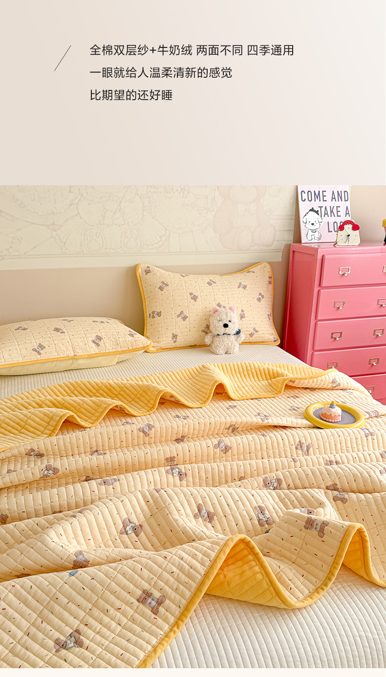 妮可 2025新款跑量款全棉双层纱绒四季可用床盖系列 暖阳熊仔
