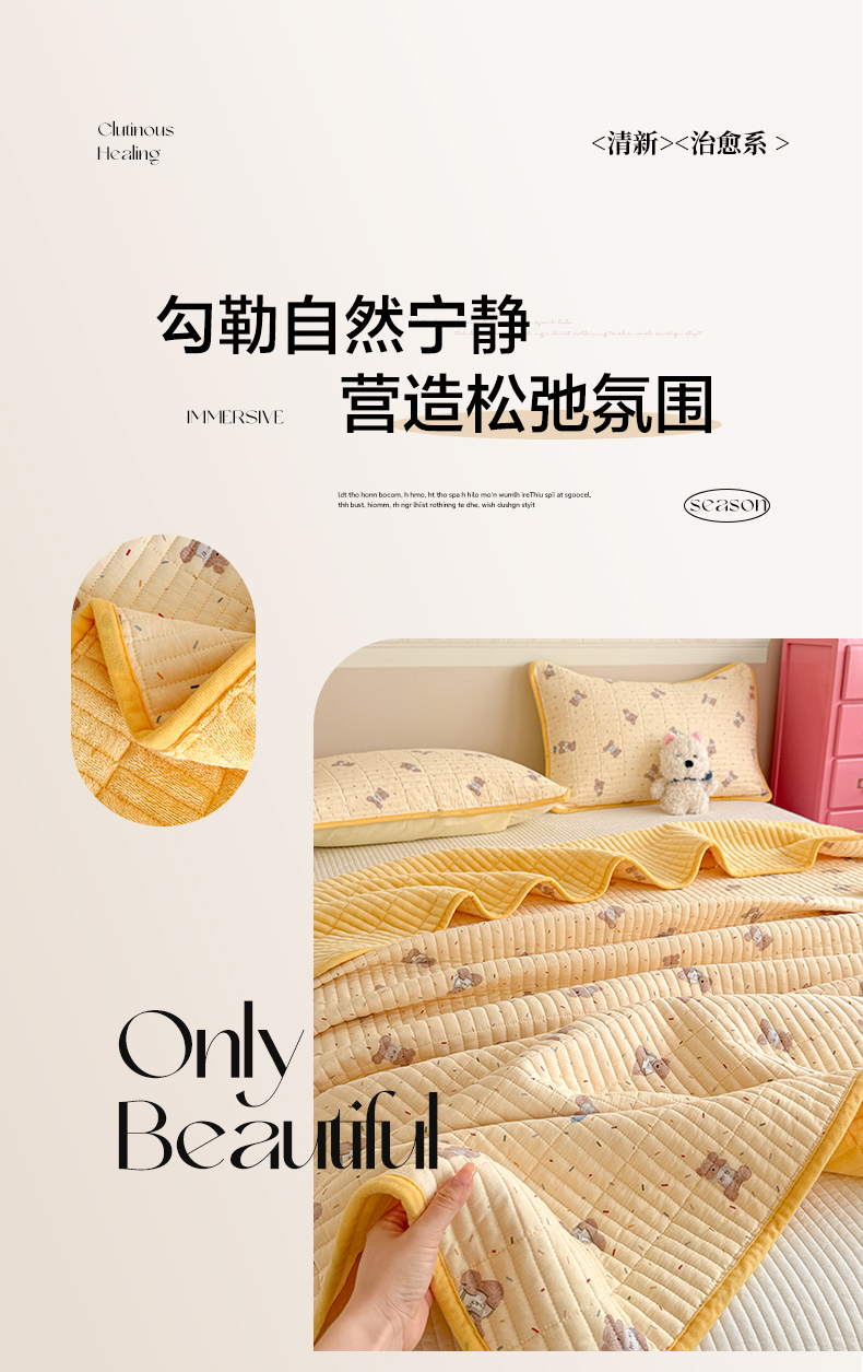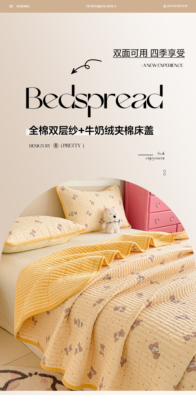 • 91家纺网 家纺一手货源 找家纺 妮可 2025新款跑量款全棉双层纱绒四季可用床盖系列 暖阳熊仔