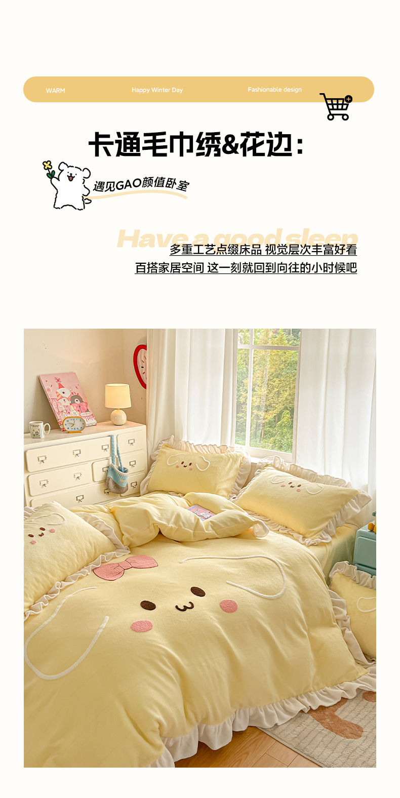 当前位置: 91家纺网 > 商品网购 > 床品套件 > 四件套 > 牛奶绒四件套 > 梦之岛 2025新款高克重大版牛奶绒卡通毛巾绣四件套 幸运兔-黄