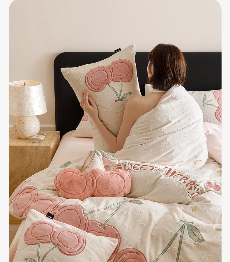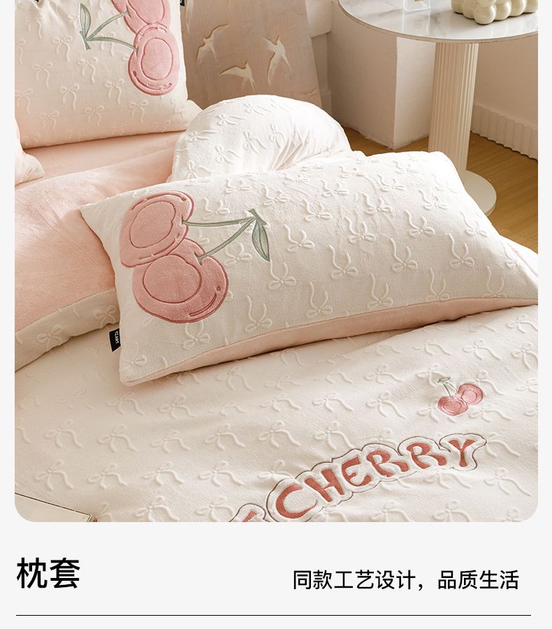 商品名称:(总)卡姿家纺 2025秋冬德国奶芙绒提花甜美风—樱桃可颂
