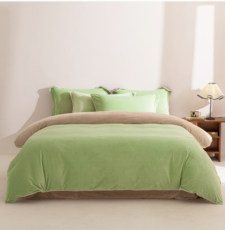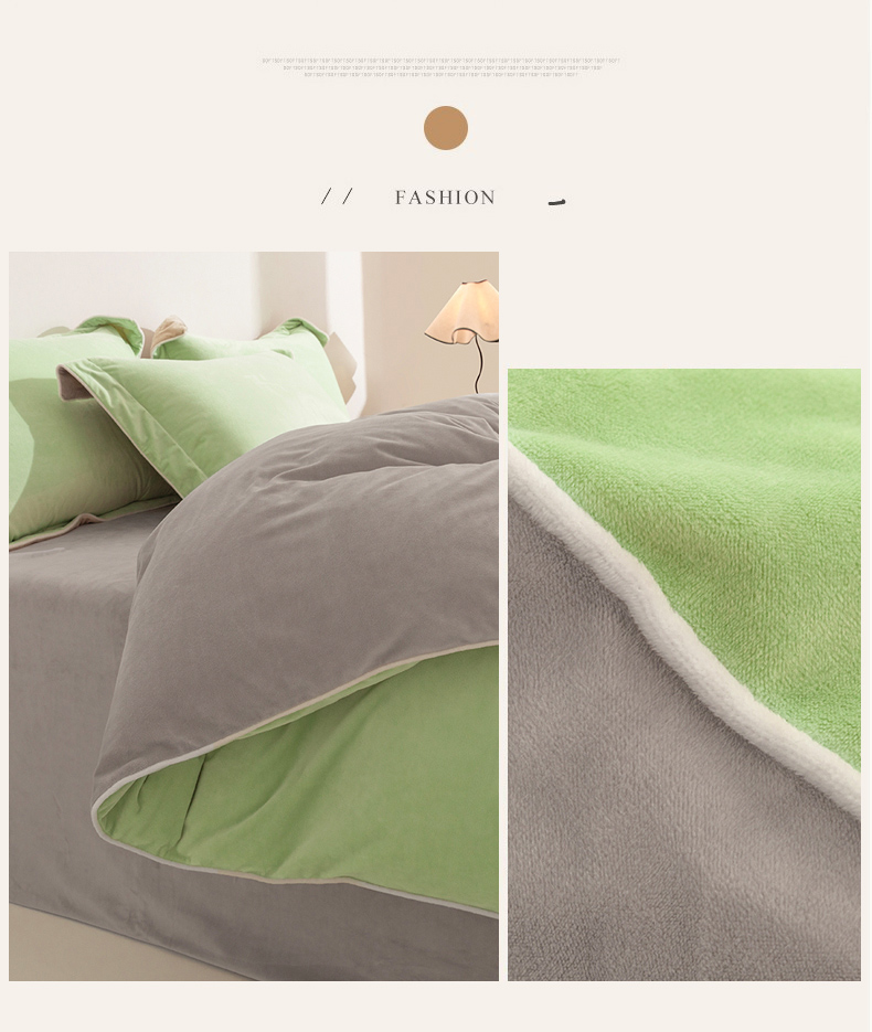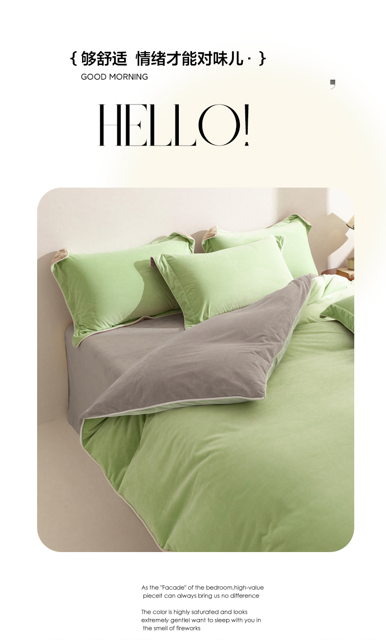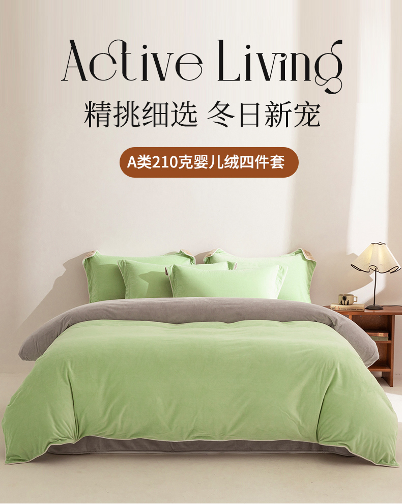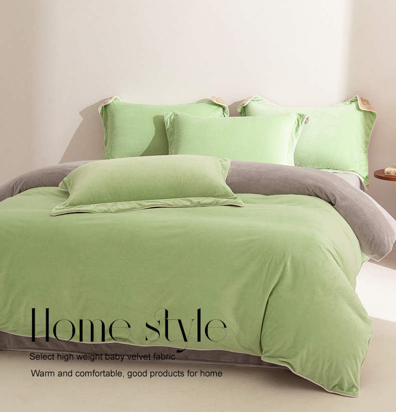 商品名称:安力森/诚臻酒店用品 2025新款麻绳婴儿绒四件套秋冬加厚亲肤保暖卧室床品套件 芽绿-浅灰