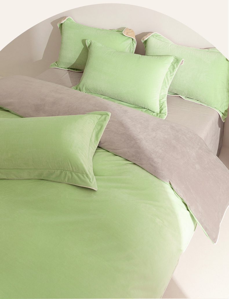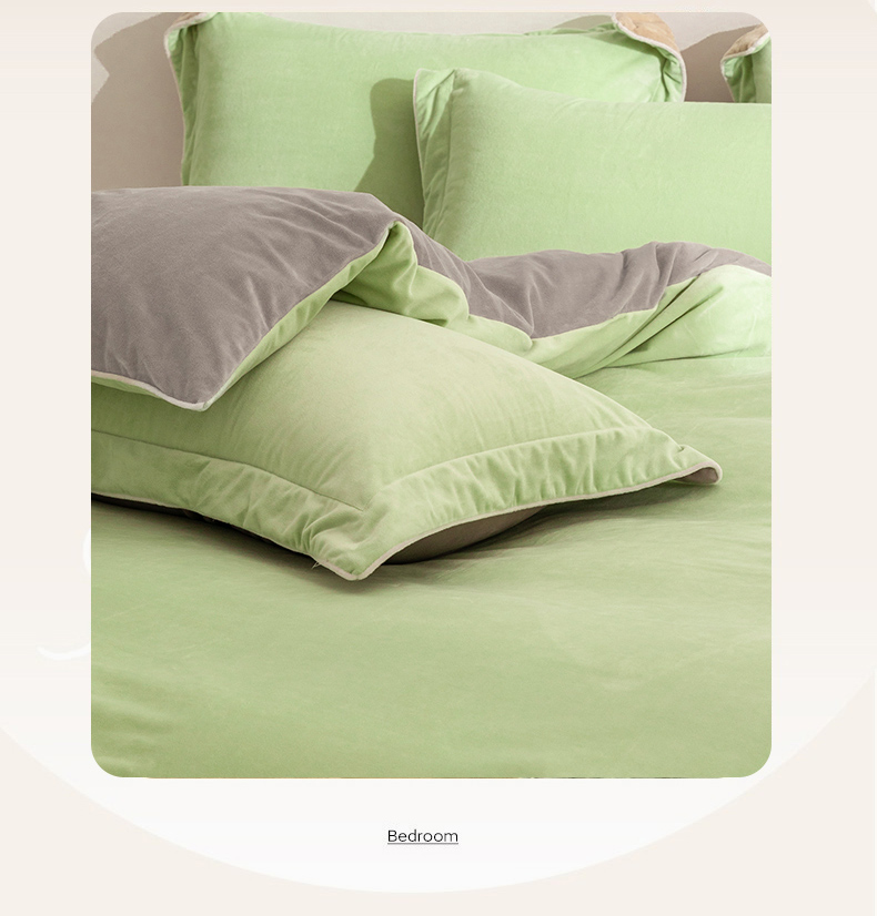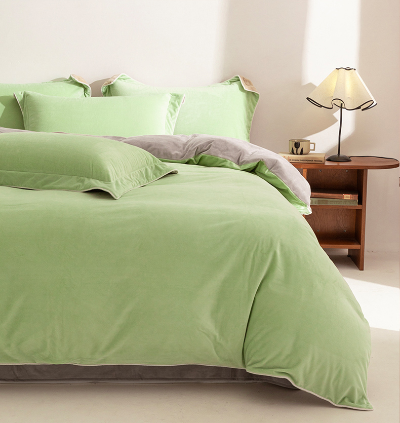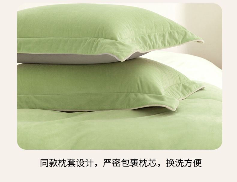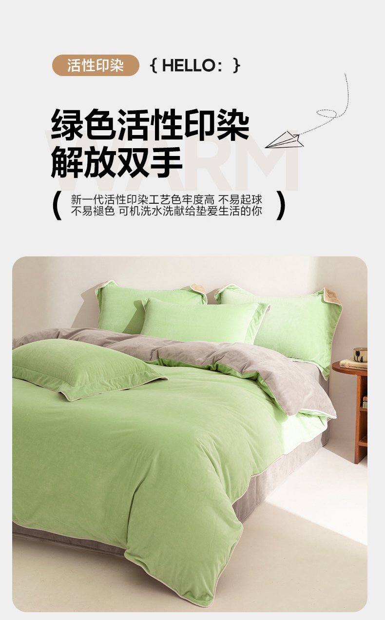 商品名称:安力森/诚臻酒店用品 2025新款麻绳婴儿绒四件套秋冬加厚亲肤保暖卧室床品套件 芽绿-浅灰