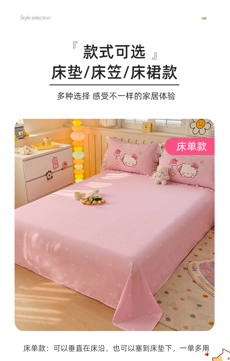 (总)玉元坊 2026新款正版授权三丽鸥系列全棉纯棉床单四件套学生三件套-凯蒂猫系列,雏菊kt【简约款】,告白KT猫【简约款】,公主kt【简约款】,乖巧KT【简约款】,凯蒂小熊【简约款】,美美凯蒂【简约款】,甜心kt【简约款】,babyKT【简约款】,KT和熊粉【简约款】