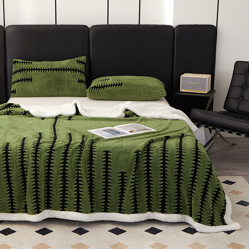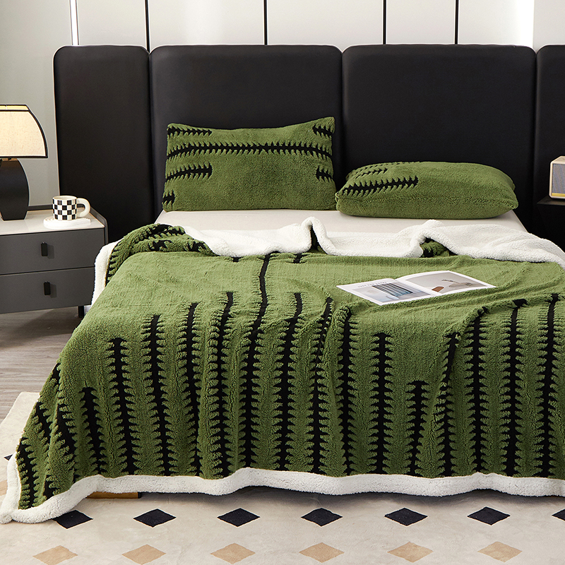 楼兰公主毛毯专供 2025新款杉影绒加厚保暖多功能毛毯盖毯绒毯 杉影毯-绿