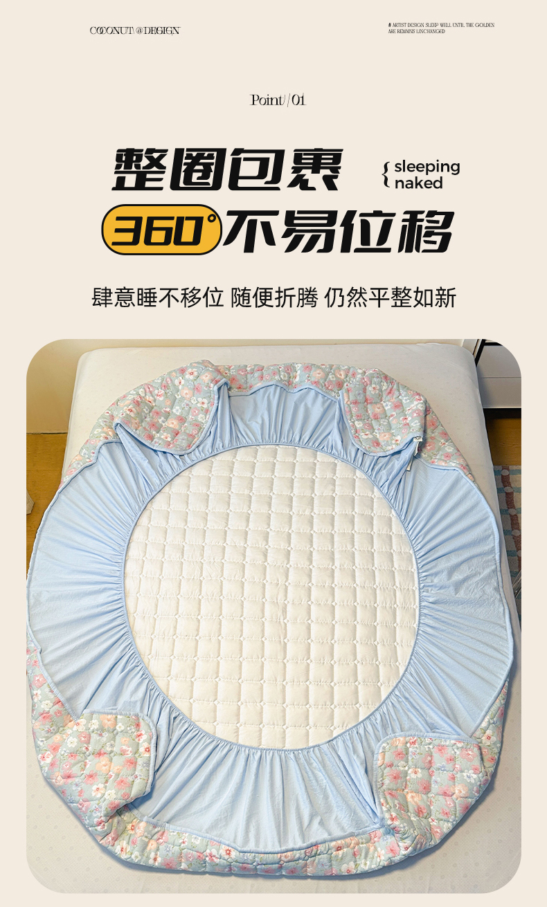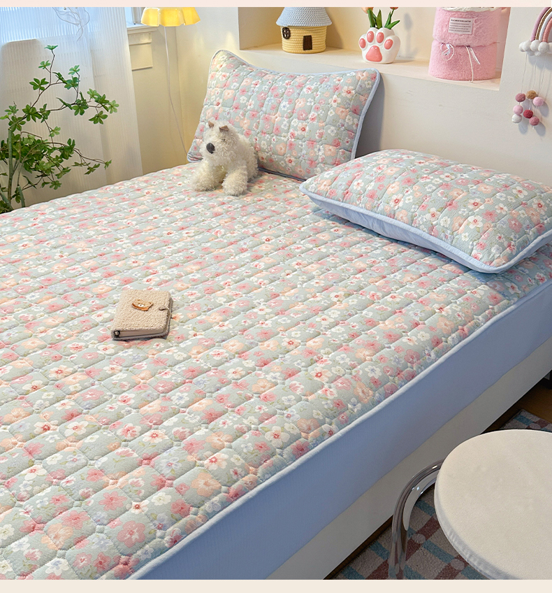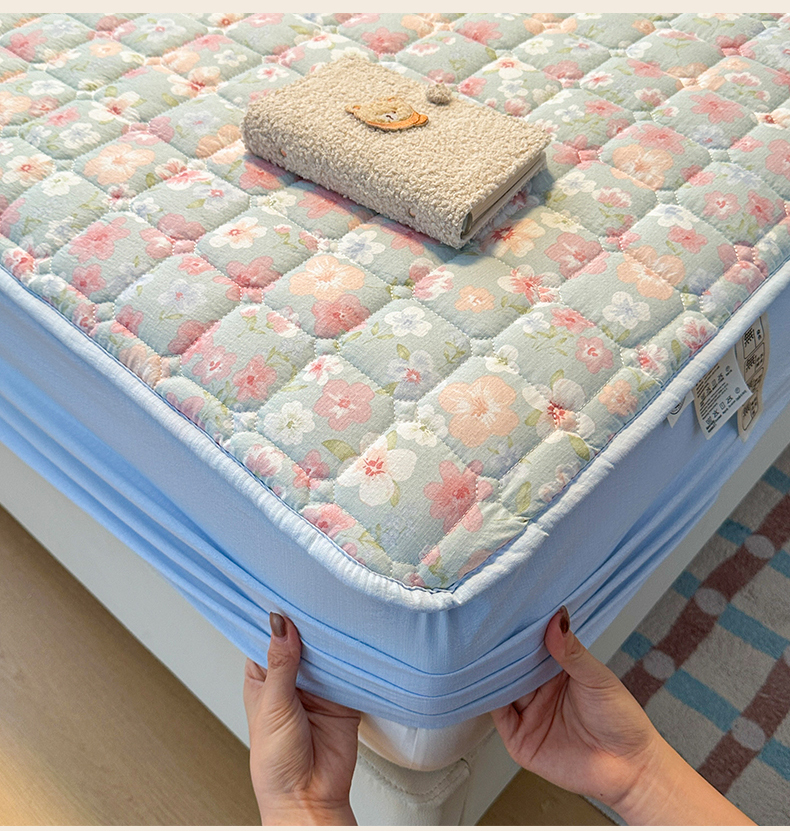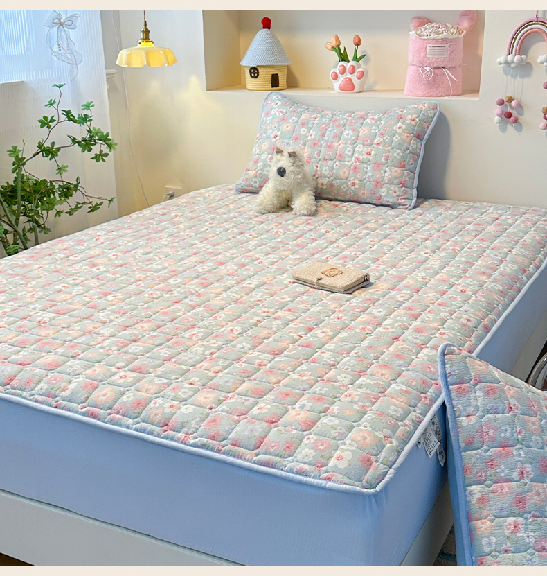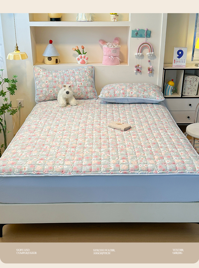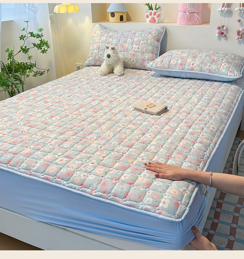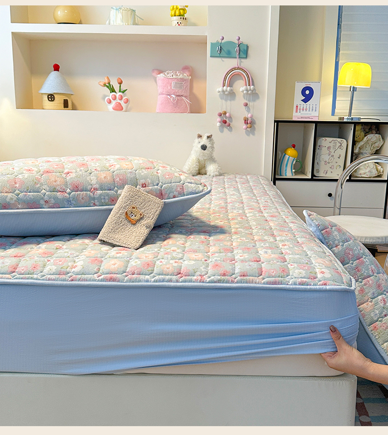 • 91家纺网 家纺一手货源 找家纺 丝芙妮家居(原乐视家纺) 2025新款A类亲肤云朵棉夹棉保暖床笠 蓝萱花町