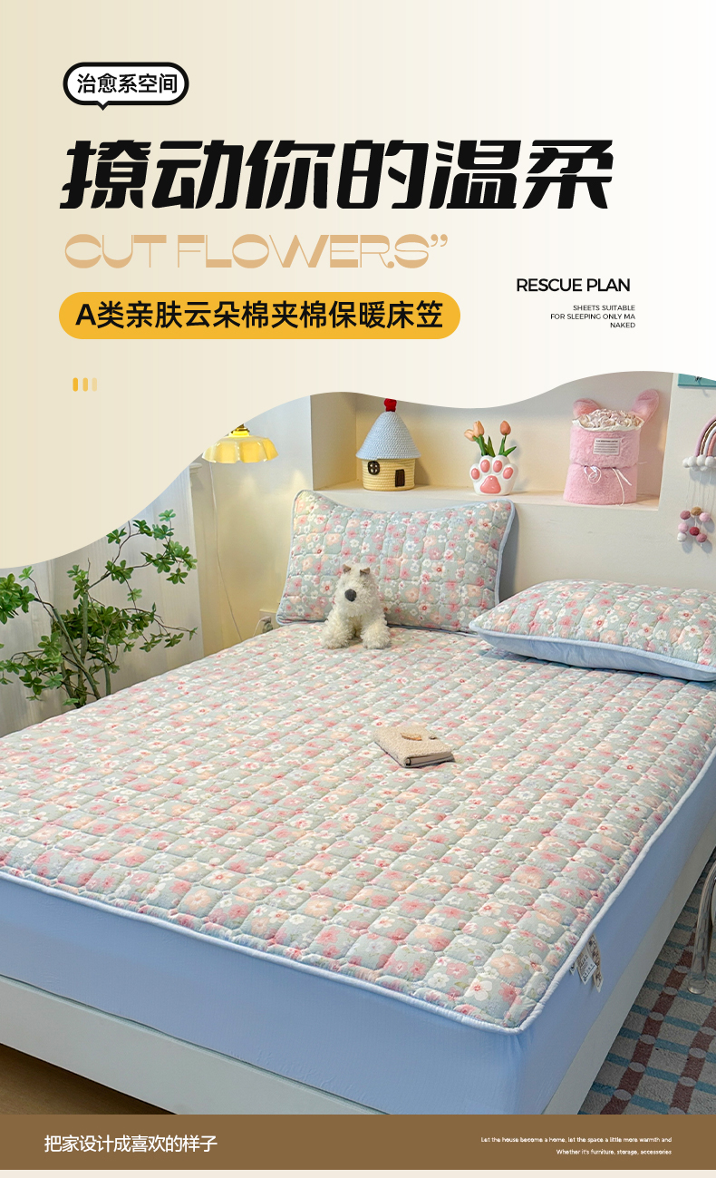 (总)丝芙妮家居(原乐视家纺) 2025新款A类亲肤云朵棉夹棉保暖床笠,布丁小熊,草莓微甜,海棠花眠,可爱萌宠,蓝萱花町,漫游花境,墨色花园,南岛乐园,甜品狗狗,甜心小兔,晚安小狗,午后时光