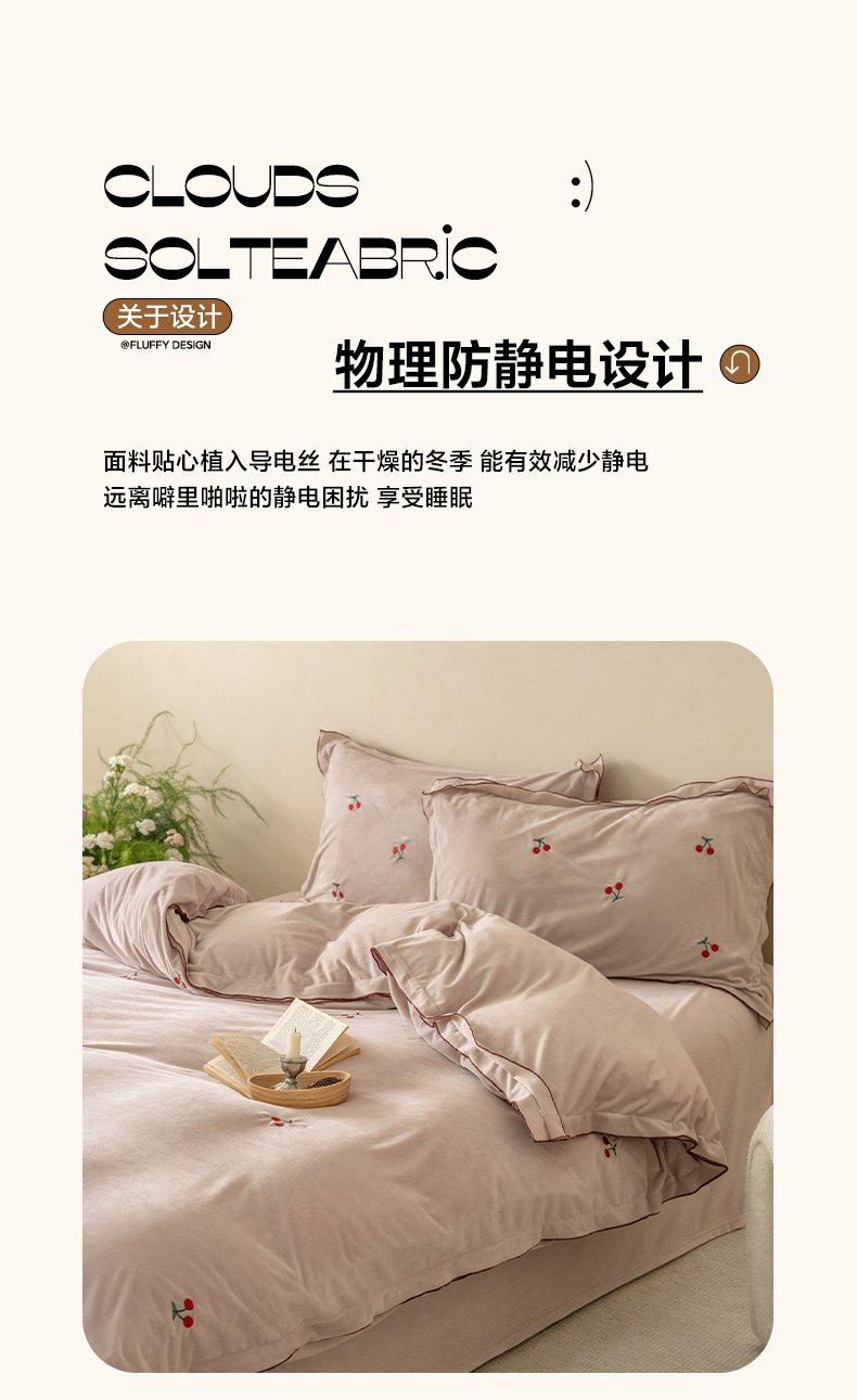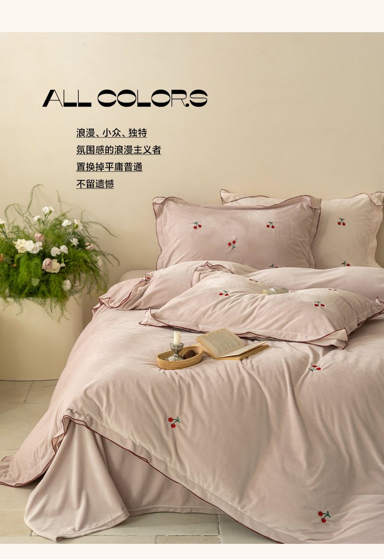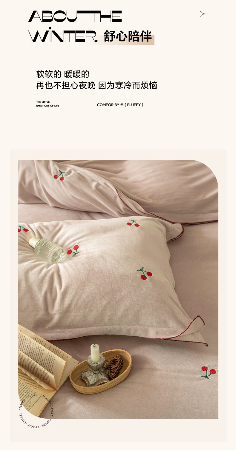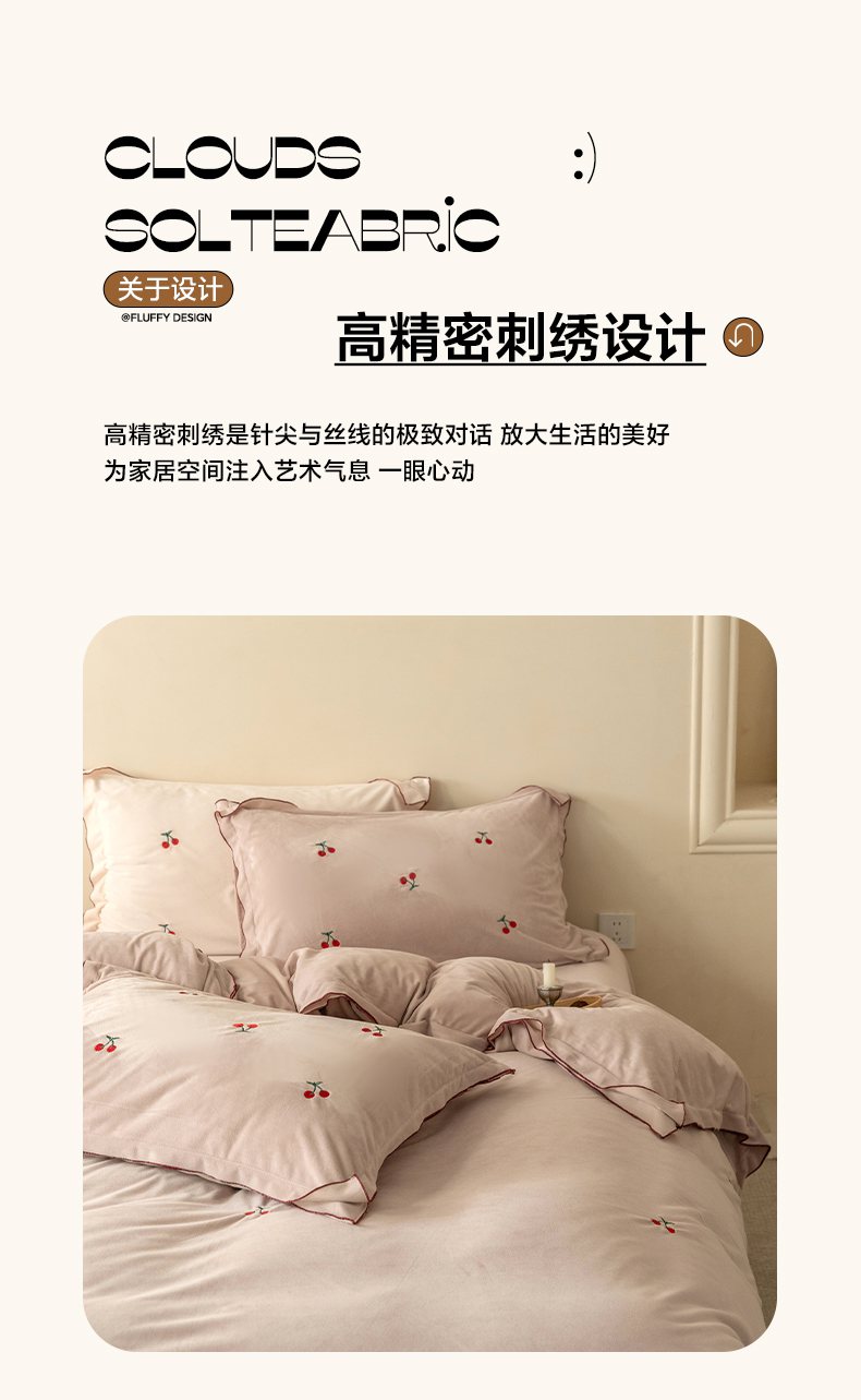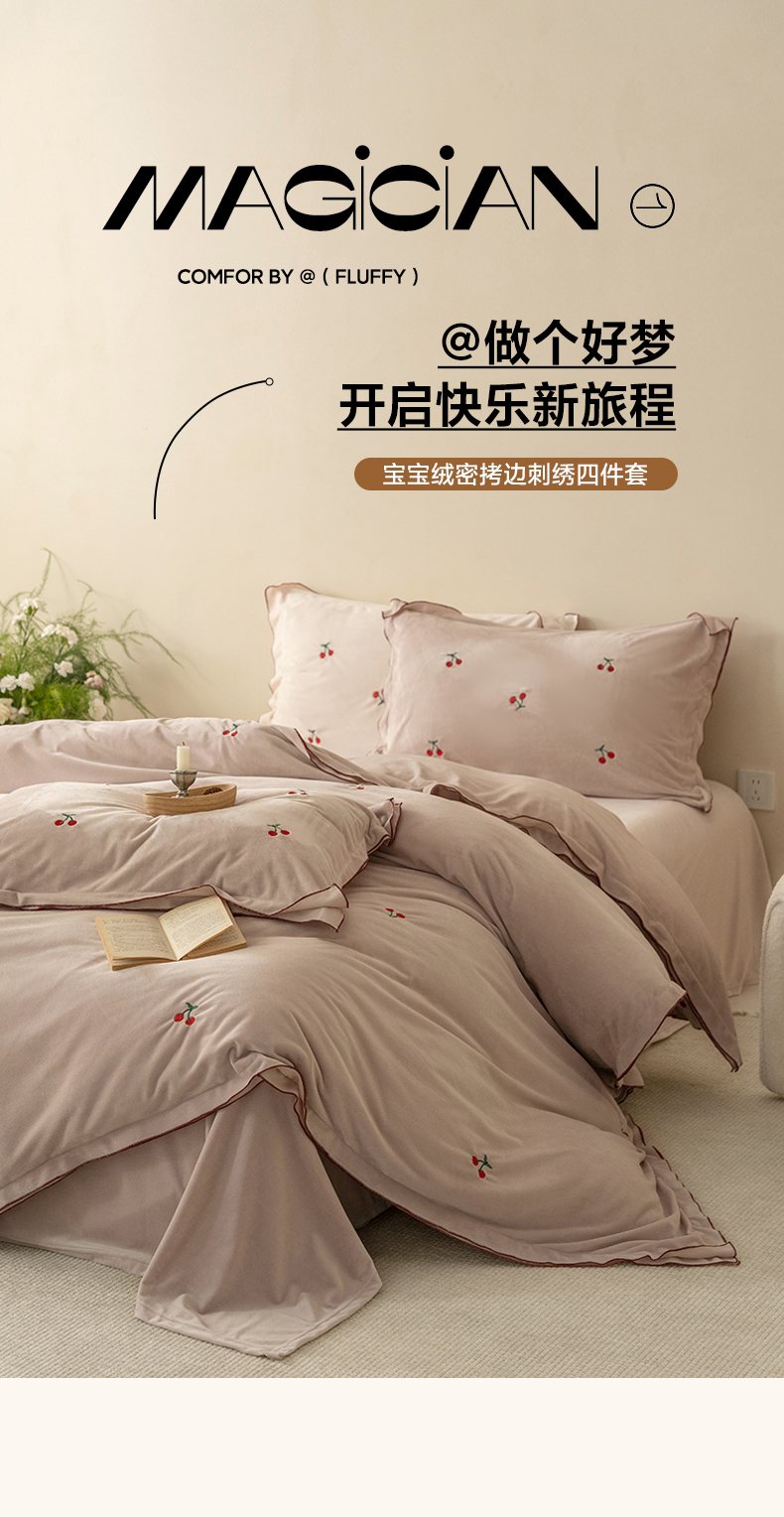 商品名称:华超针织 2025新款宝宝绒密拷边刺绣四件套 (会员-20) 初樱琥珀