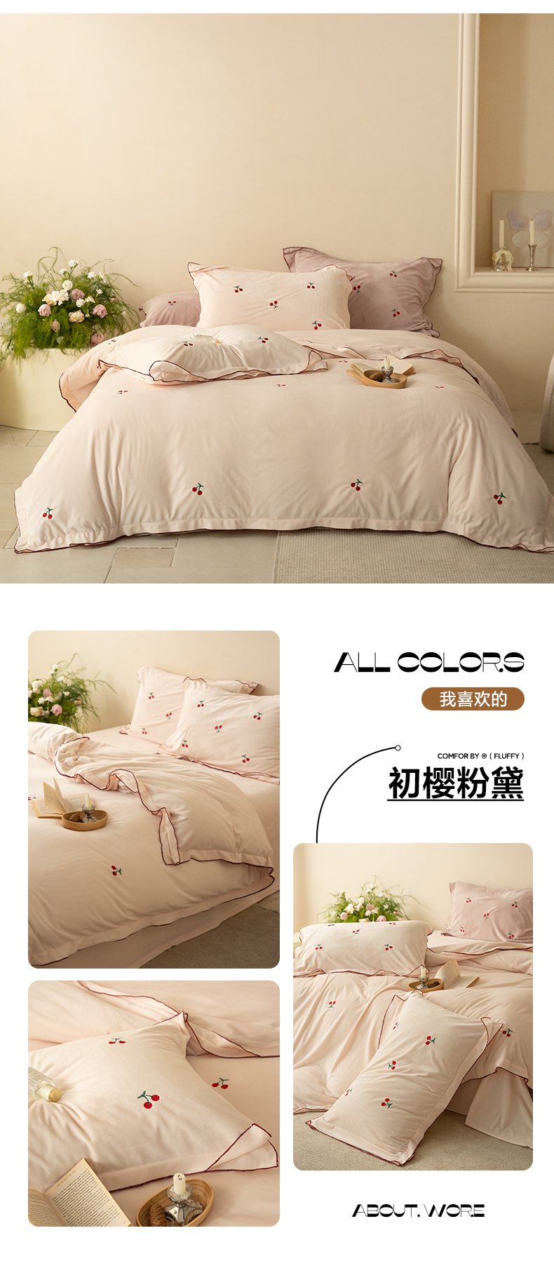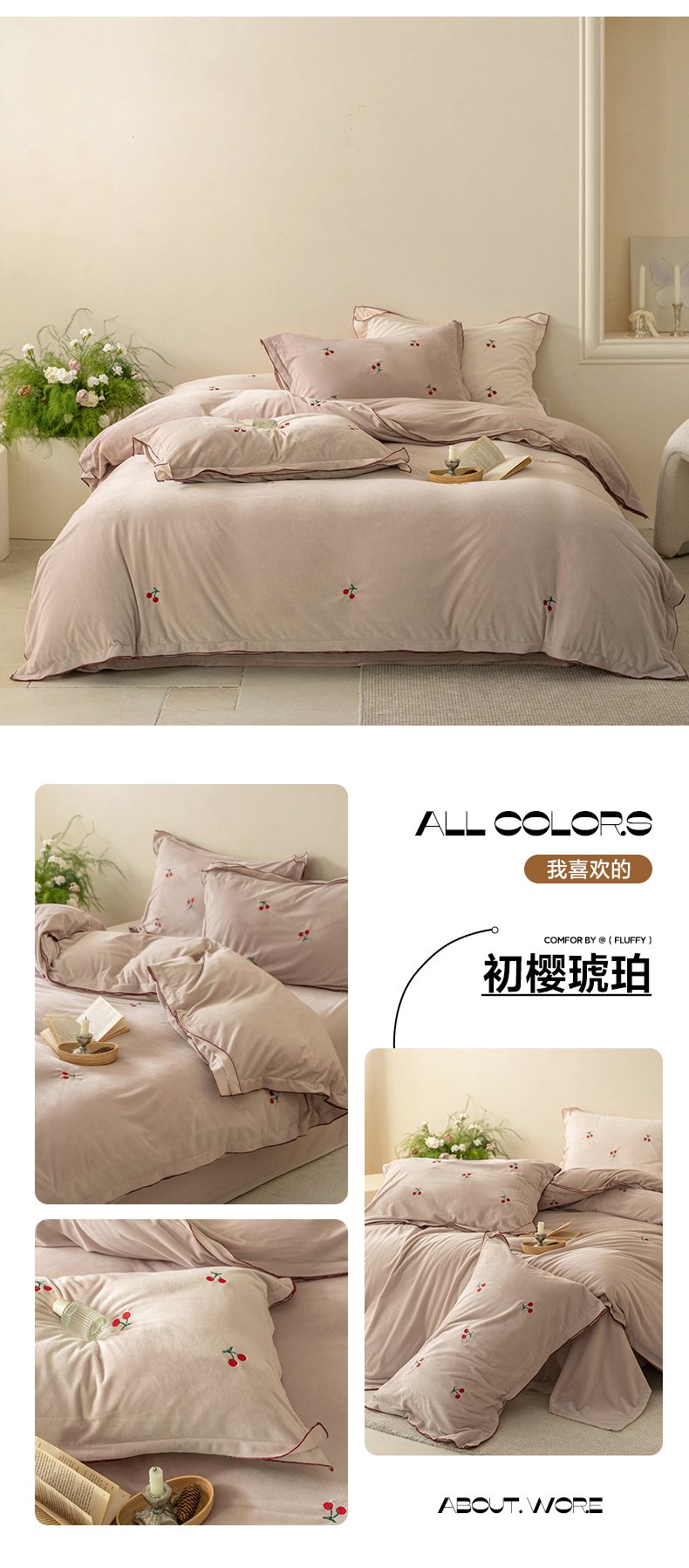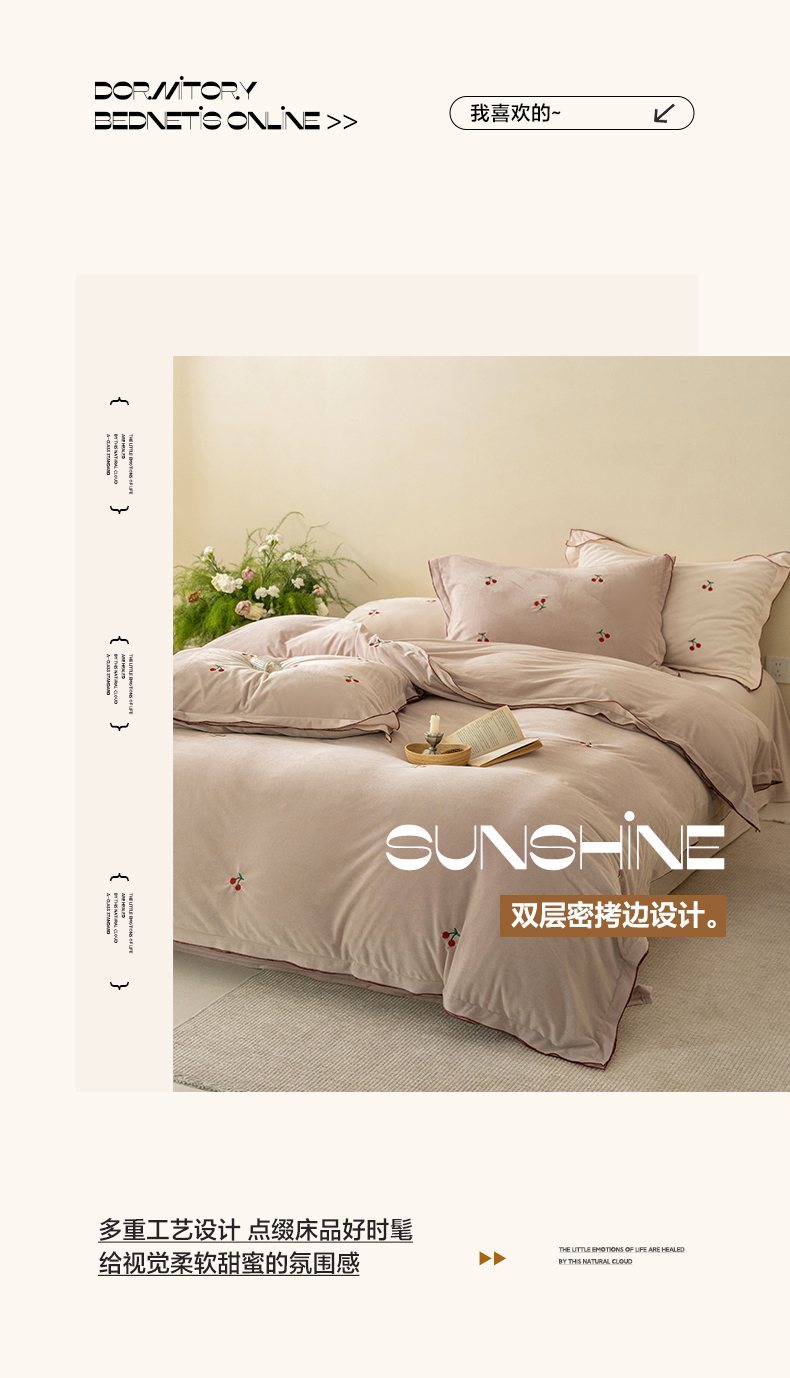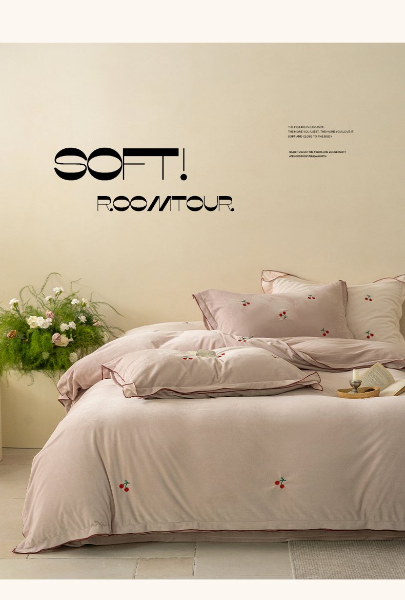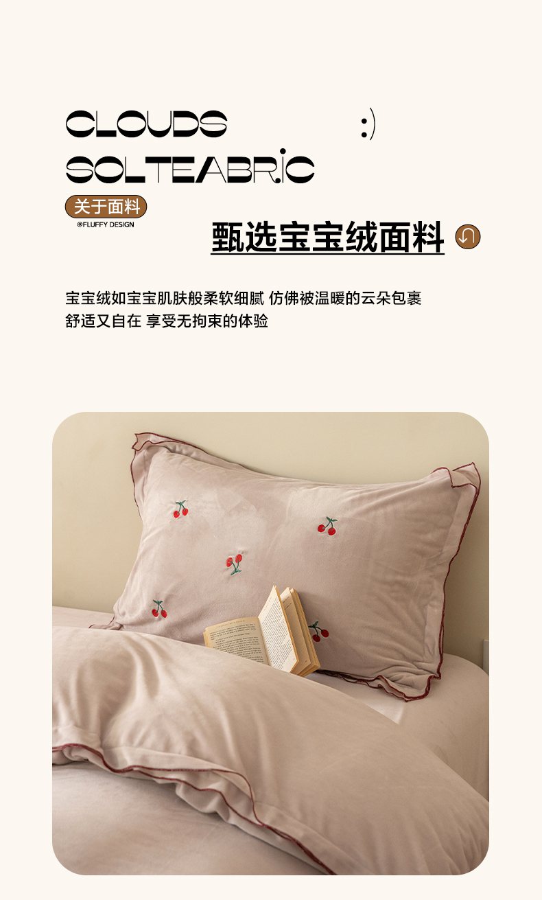 商品名称:华超针织 2025新款宝宝绒密拷边刺绣四件套 (会员-20) 初樱琥珀