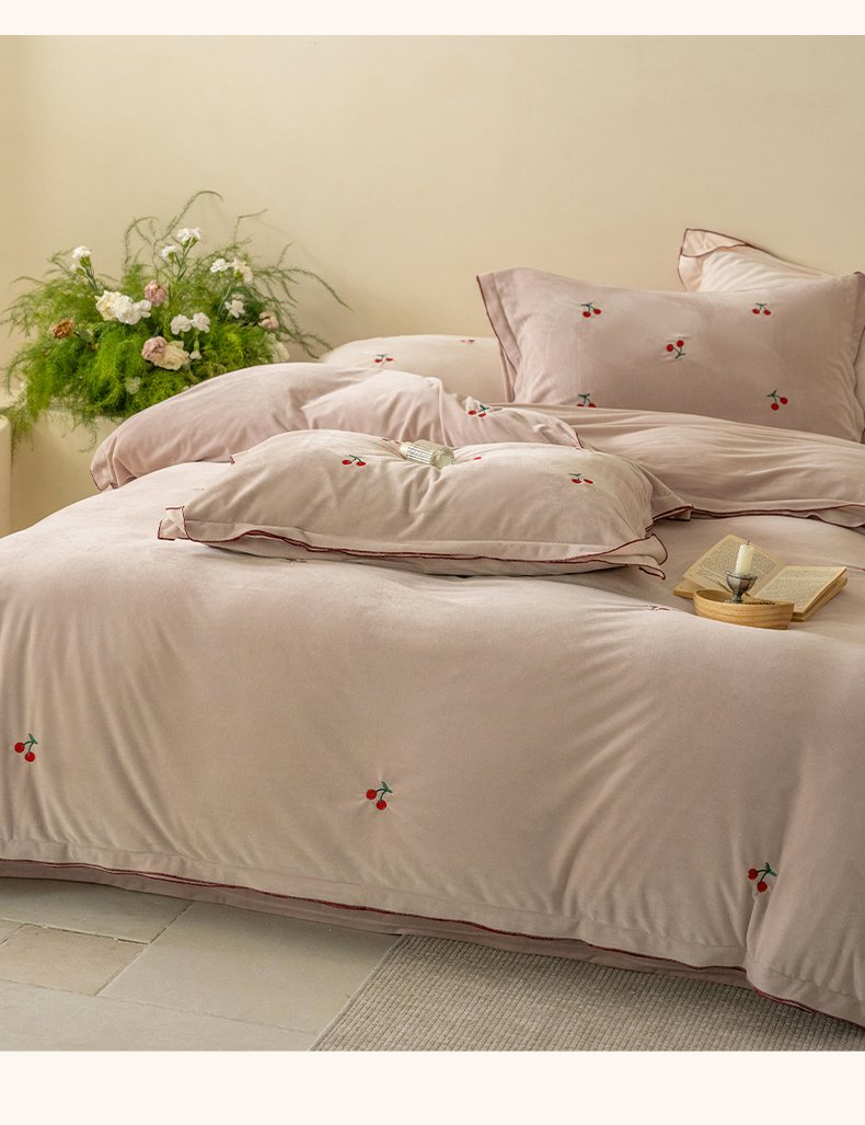 华超针织 2025新款宝宝绒密拷边刺绣四件套 (会员-20) 初樱琥珀