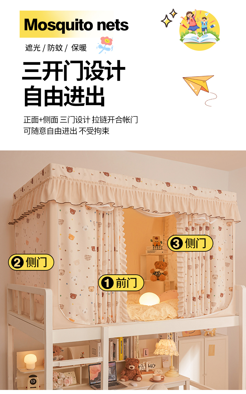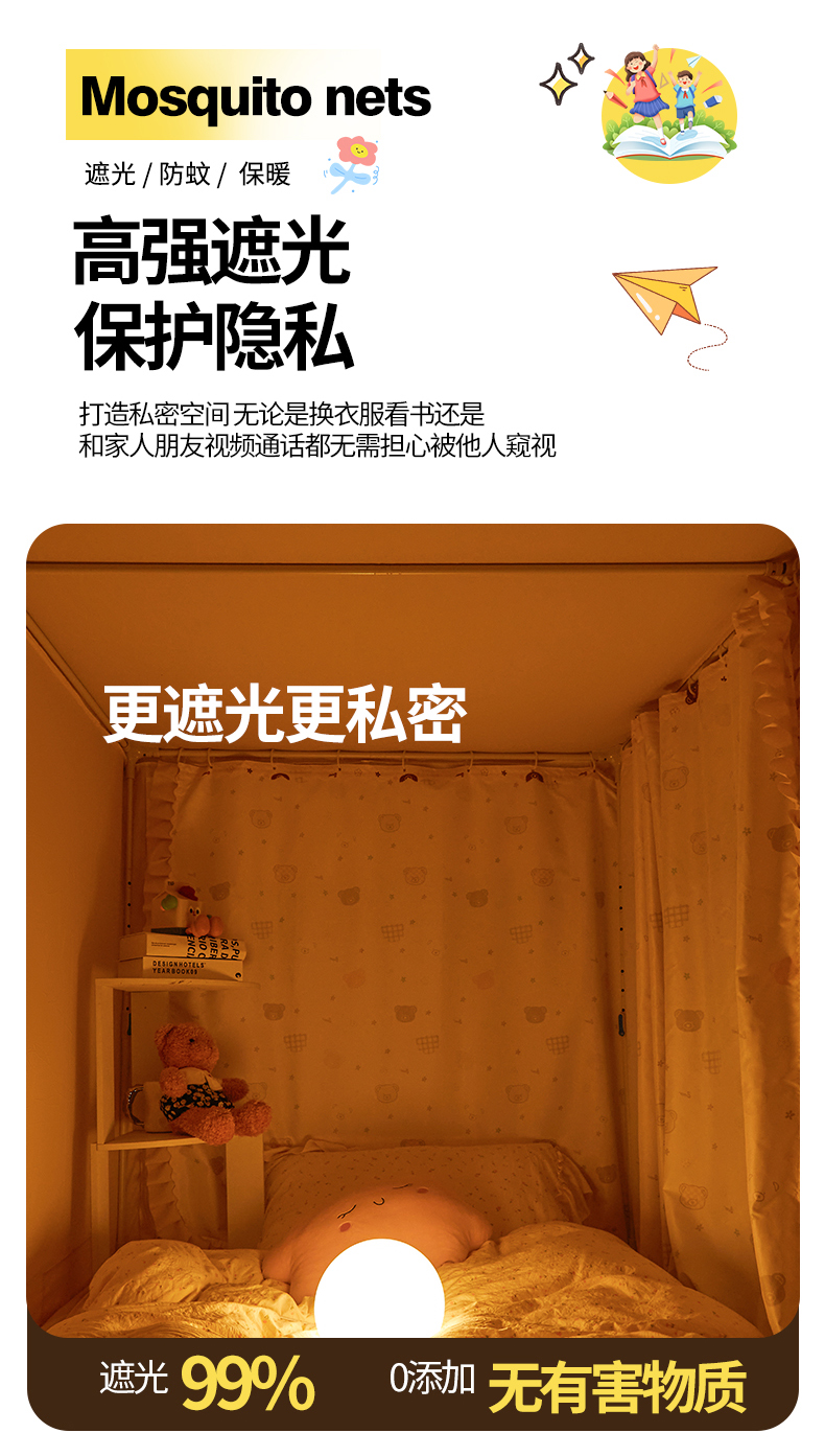 当前位置: 91家纺网 > 商品网购 > 床上用品 > 蚊帐 > 学生蚊帐 > 艾晶美家纺有限公司 2025新款学生宿舍遮光保暖蚊帐夹棉床帘蚊帐大学生宿舍蚊帐 学生布帘款-米格熊