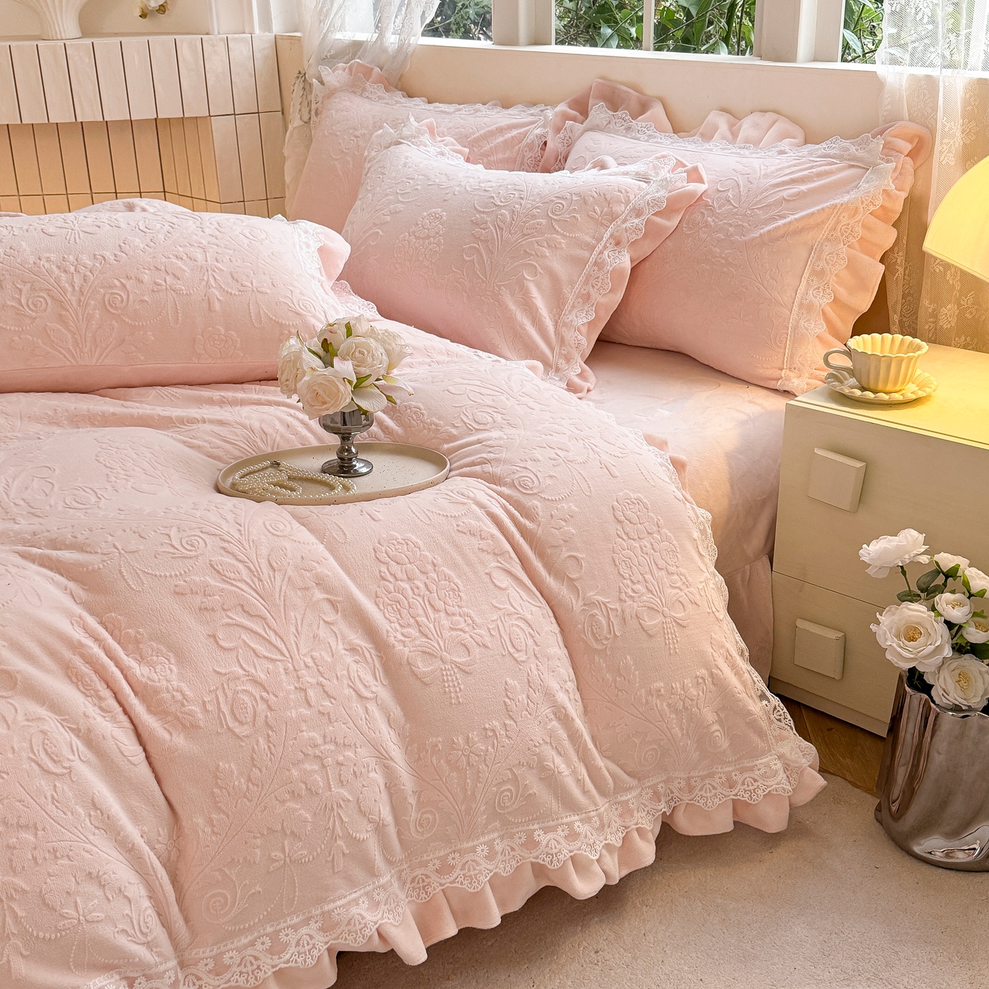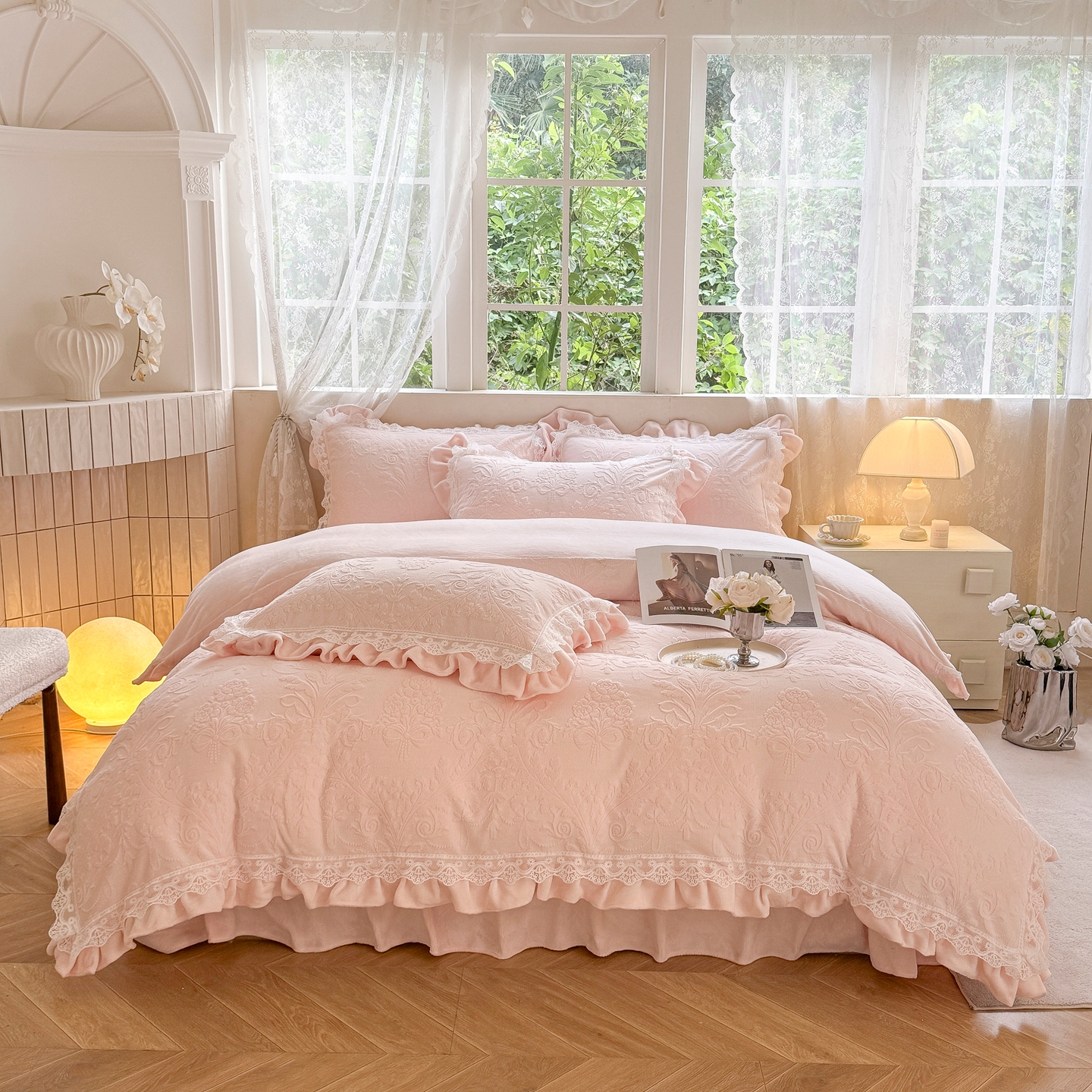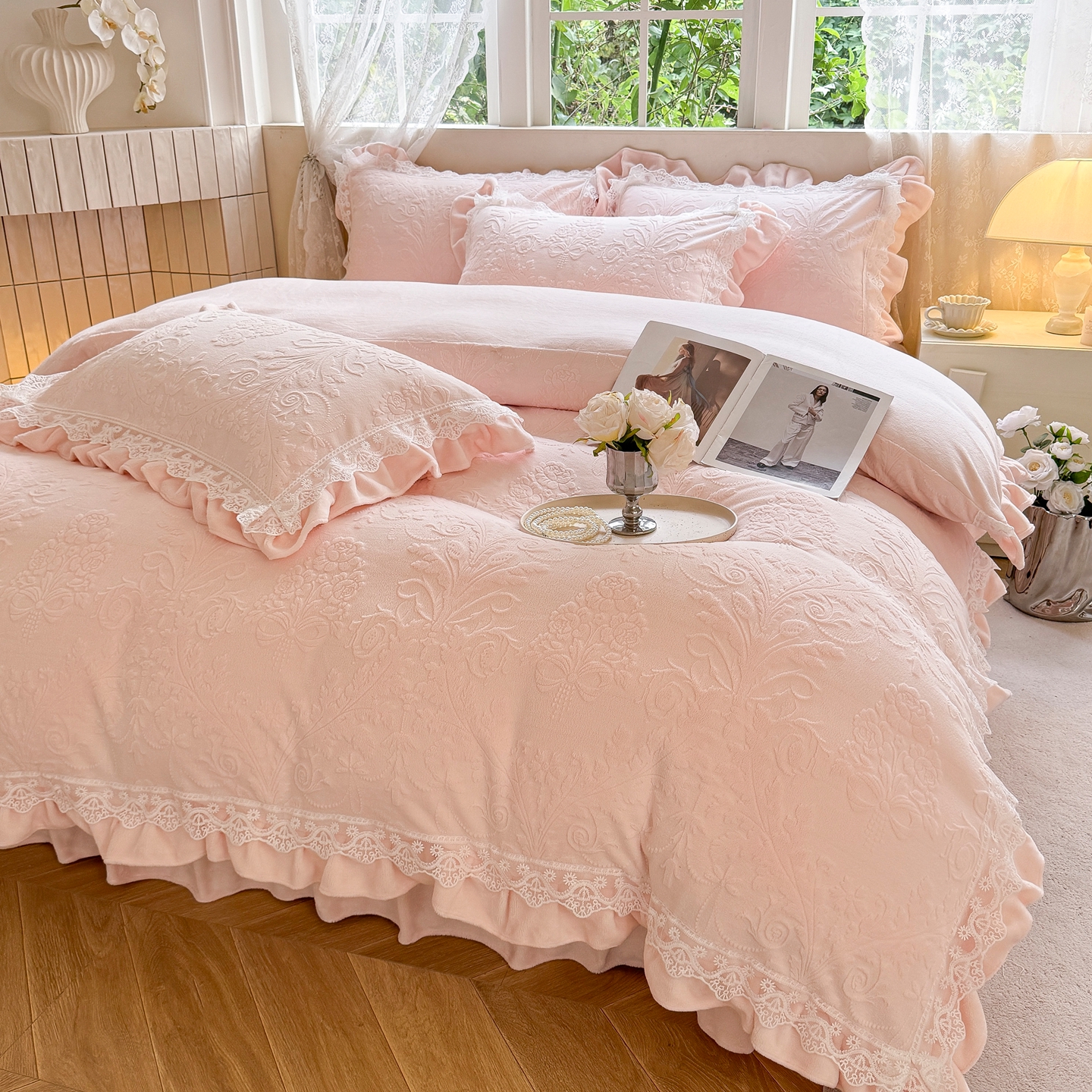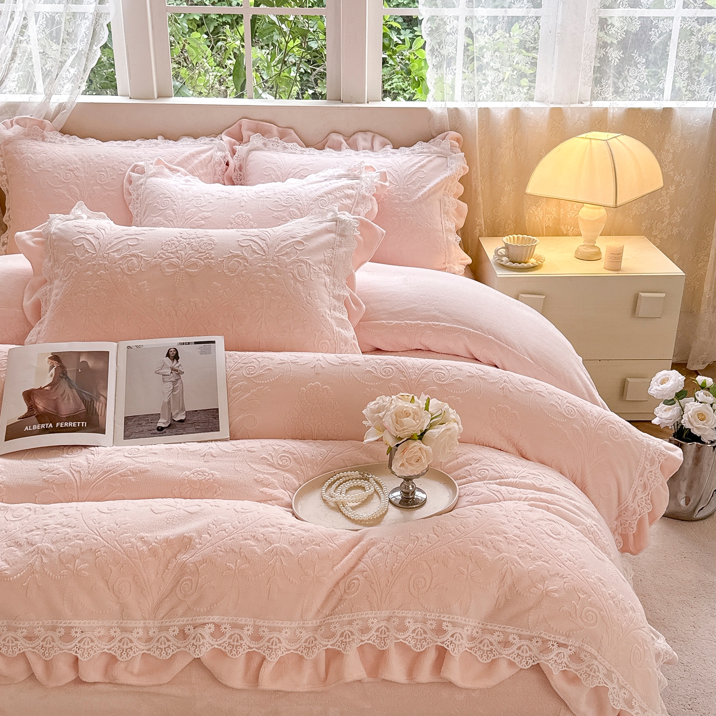 久久红 2025新款高克重牛奶绒四件套系列 粉玉