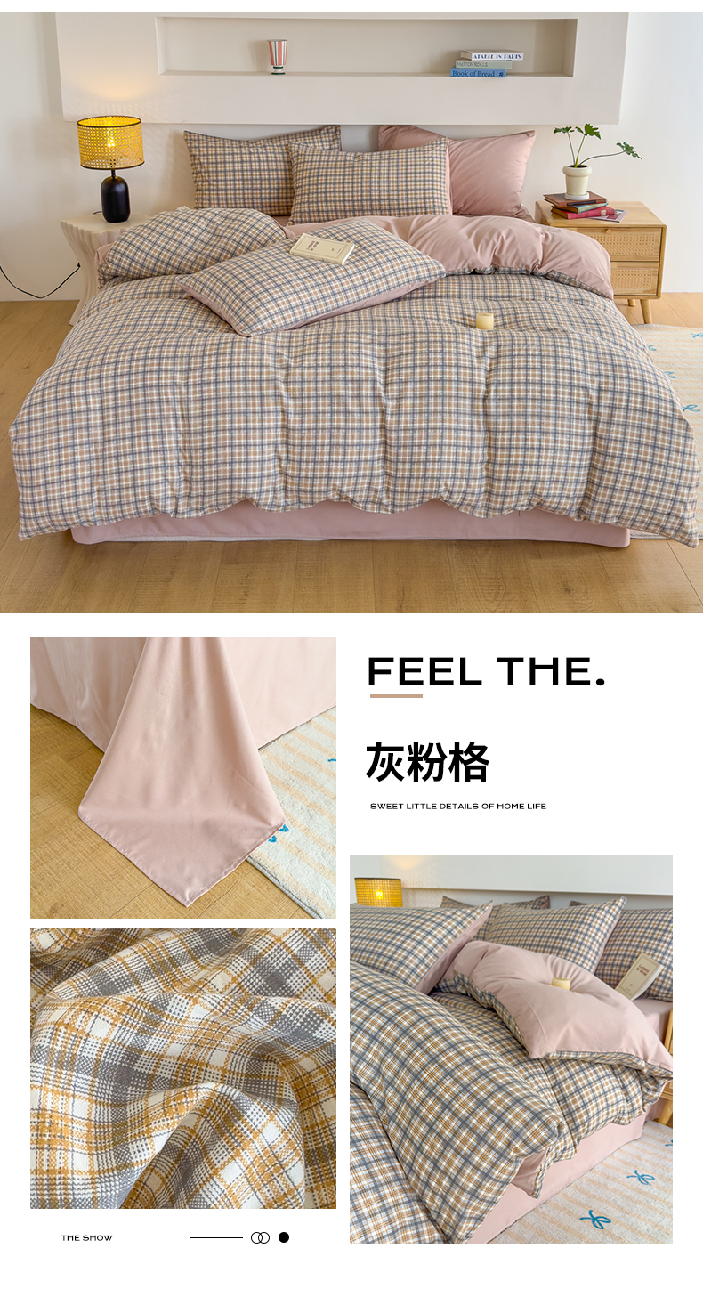 当前位置: 91家纺网 > 商品网购 > 床品套件 > 四件套 > 水洗棉四件套 > 桔禾家纺 2025新款无印风四件套床单床笠被套被罩纯色水洗棉学生宿舍床上三件套四件套 灰粉格
