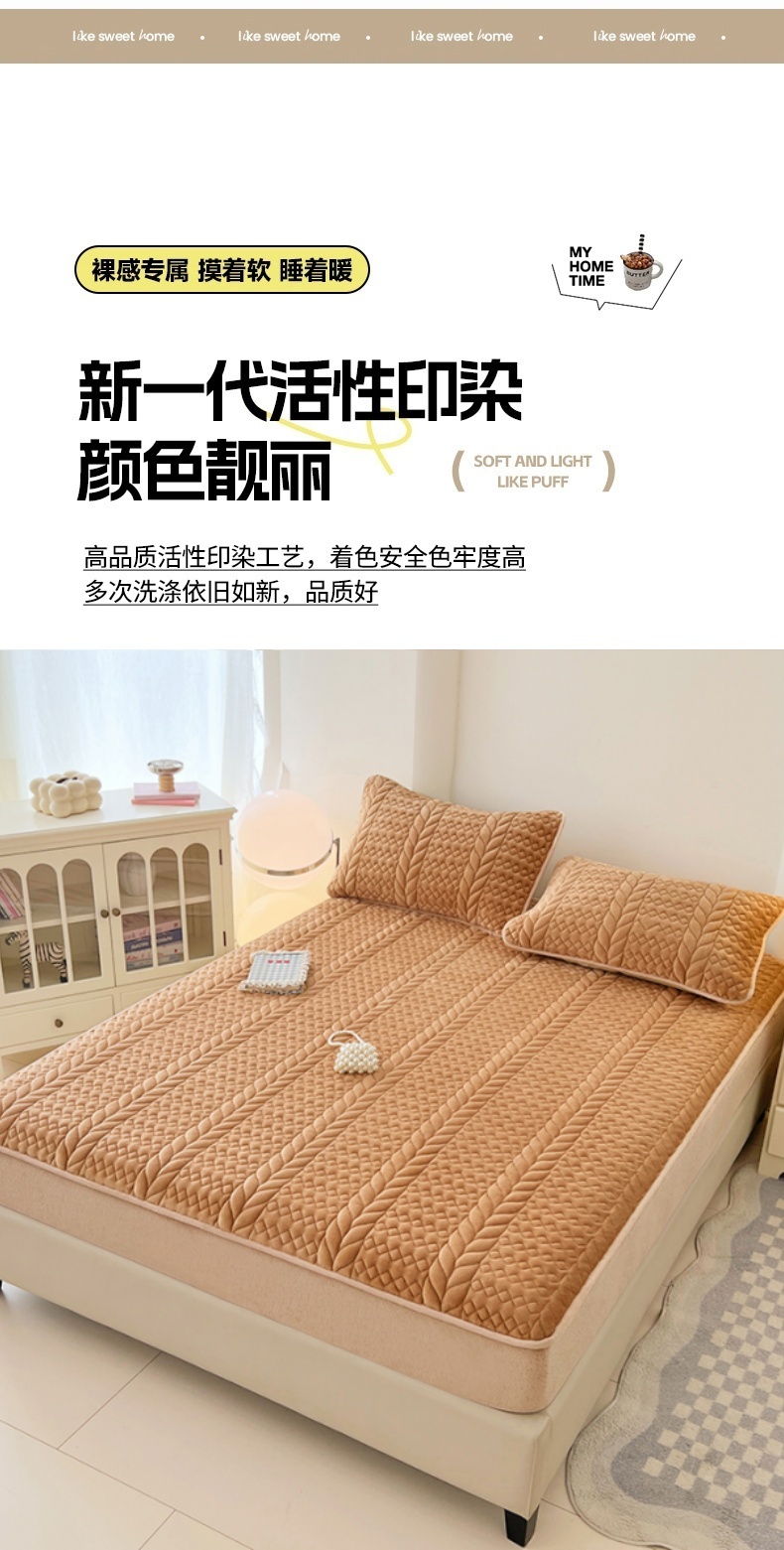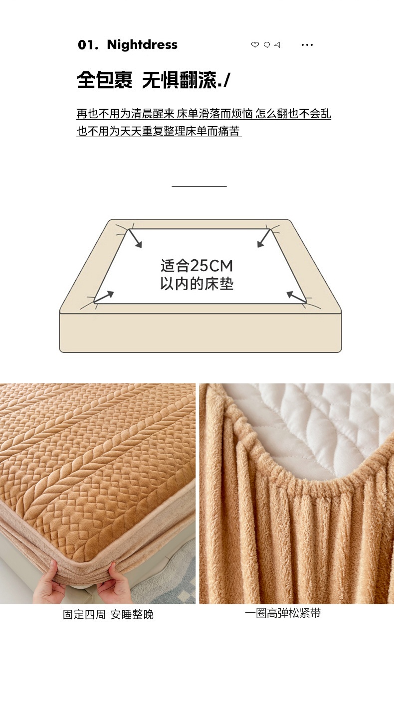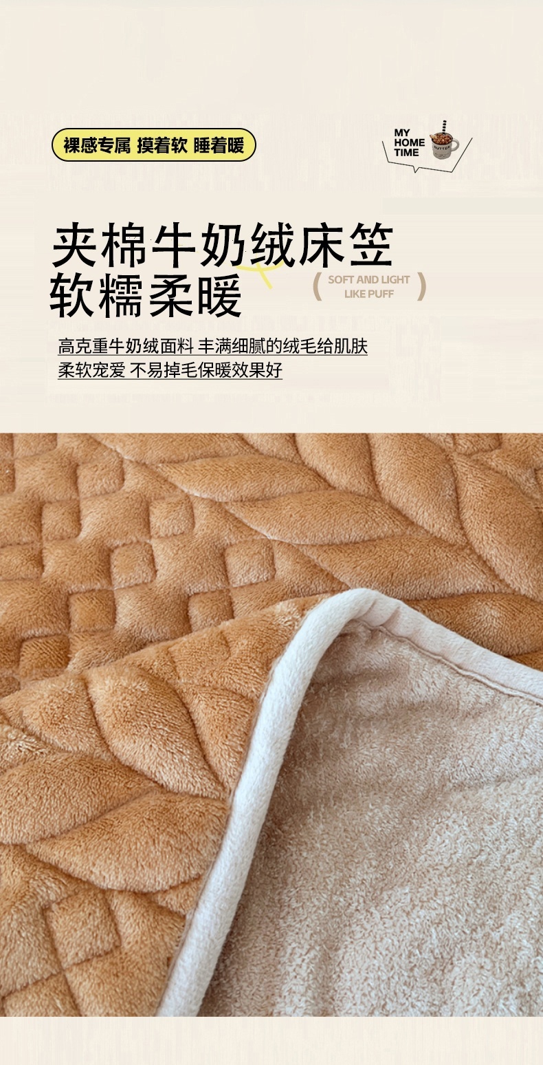 • 91家纺网 家纺一手货源 找家纺 梦舒羽 2025新款A类牛奶绒夹棉床笠床单床盖床罩床护垫床垫保护罩三件套-轻奢 轻奢款-奶茶咖