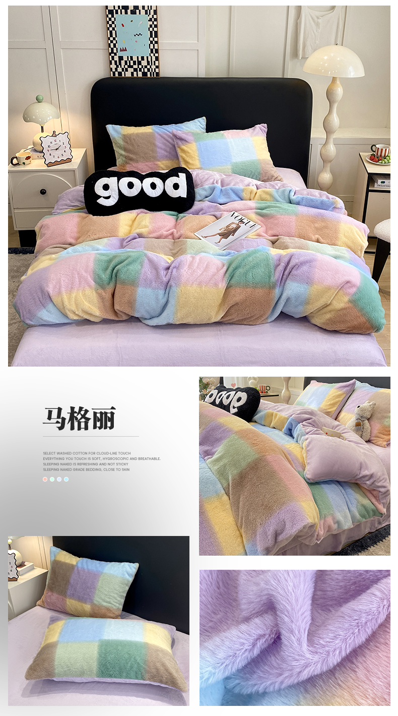 蝶帕家纺 2025新款兔毛绒印花四件套 马格丽