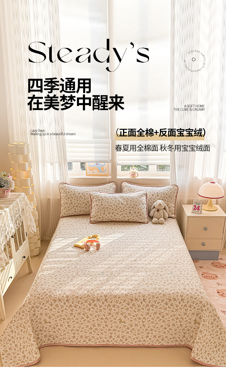 (总)布兰鸟家纺【1店】 2025新款全棉宝宝绒夹棉床盖单品床盖床盖单件(四季换面用),梦迪乐园,贝贝南瓜,达乐宝贝,格彩小象,美吉宠宝,鲜花小马,心动时刻,阳光狮子,组合图仅做展示不可下单