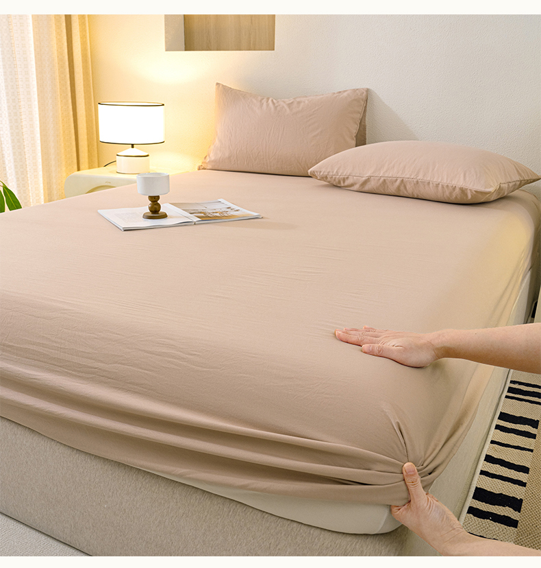 (总)桔禾家纺 2025新款水洗皱皱云感棉纯色床笠,奶茶驼,宾利蓝,富贵紫,高级灰,奶油白,苹果绿,晴空蓝,樱花粉,组合