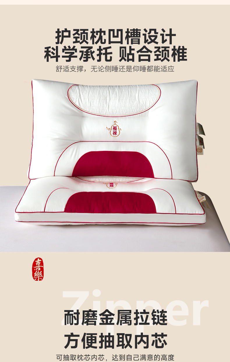 商品名称:(总)糖果枕芯 2025新款婚庆枕芯新中式福禄绣花护颈枕