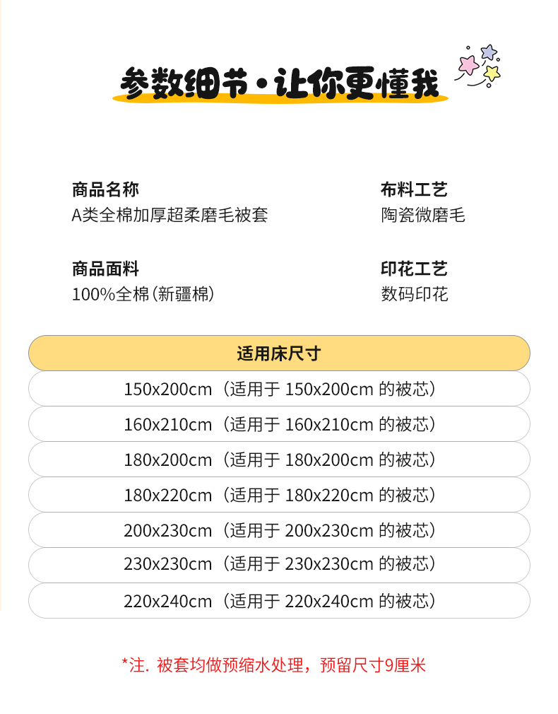 230x230cm单被套+48x74枕套一对 | ¥110.00 |