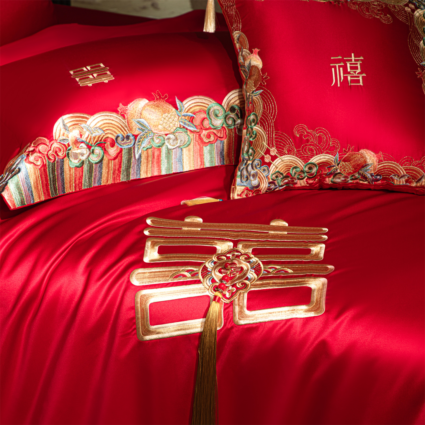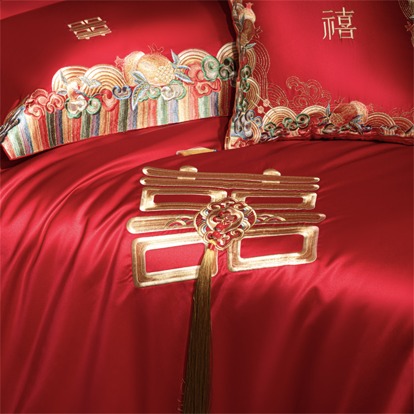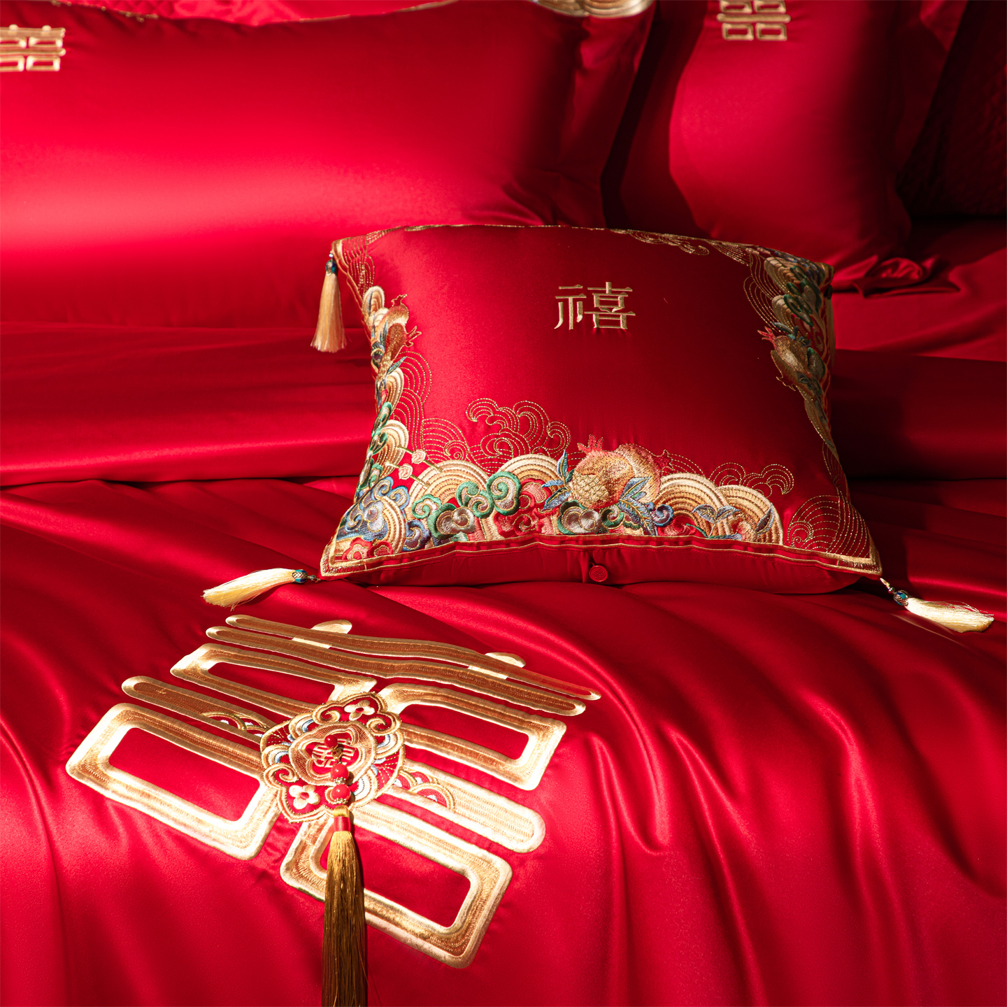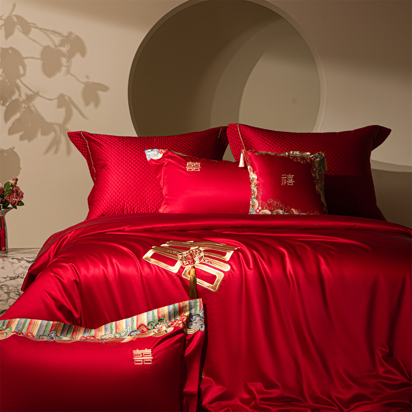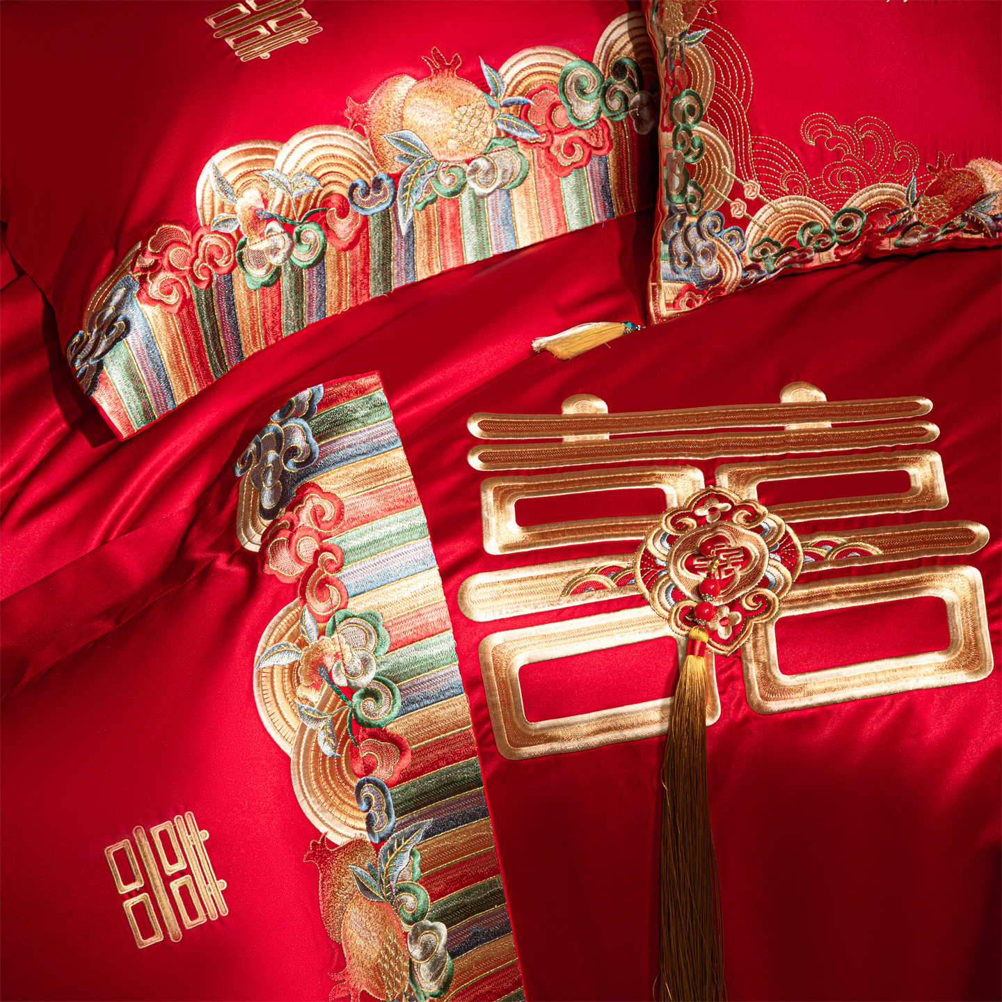 商品名称:(总)佳汐蓝家纺 2025新款100支全棉刺绣婚庆四件套-喜传祥瑞