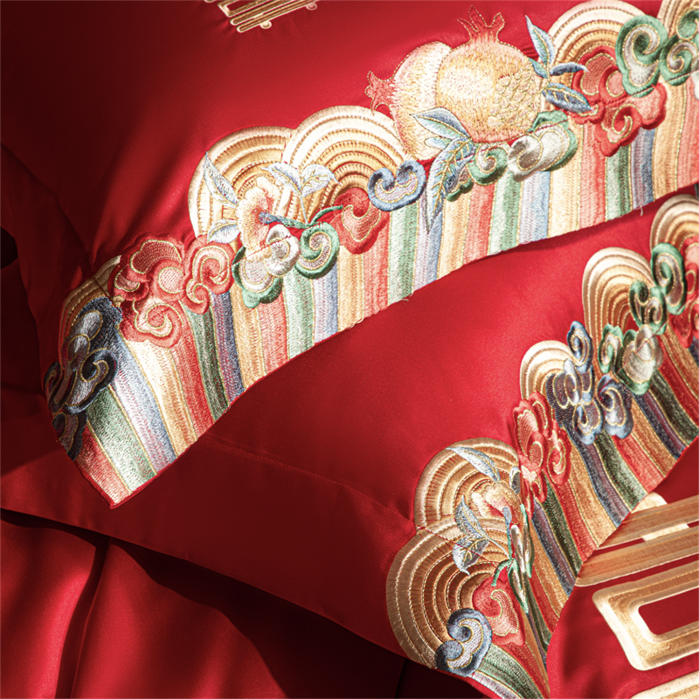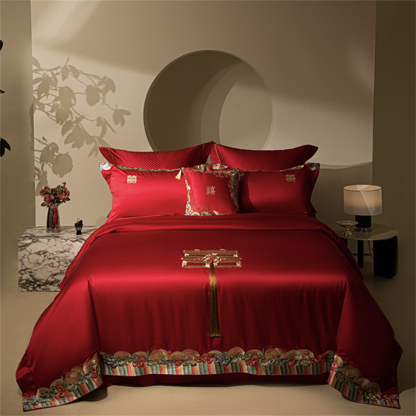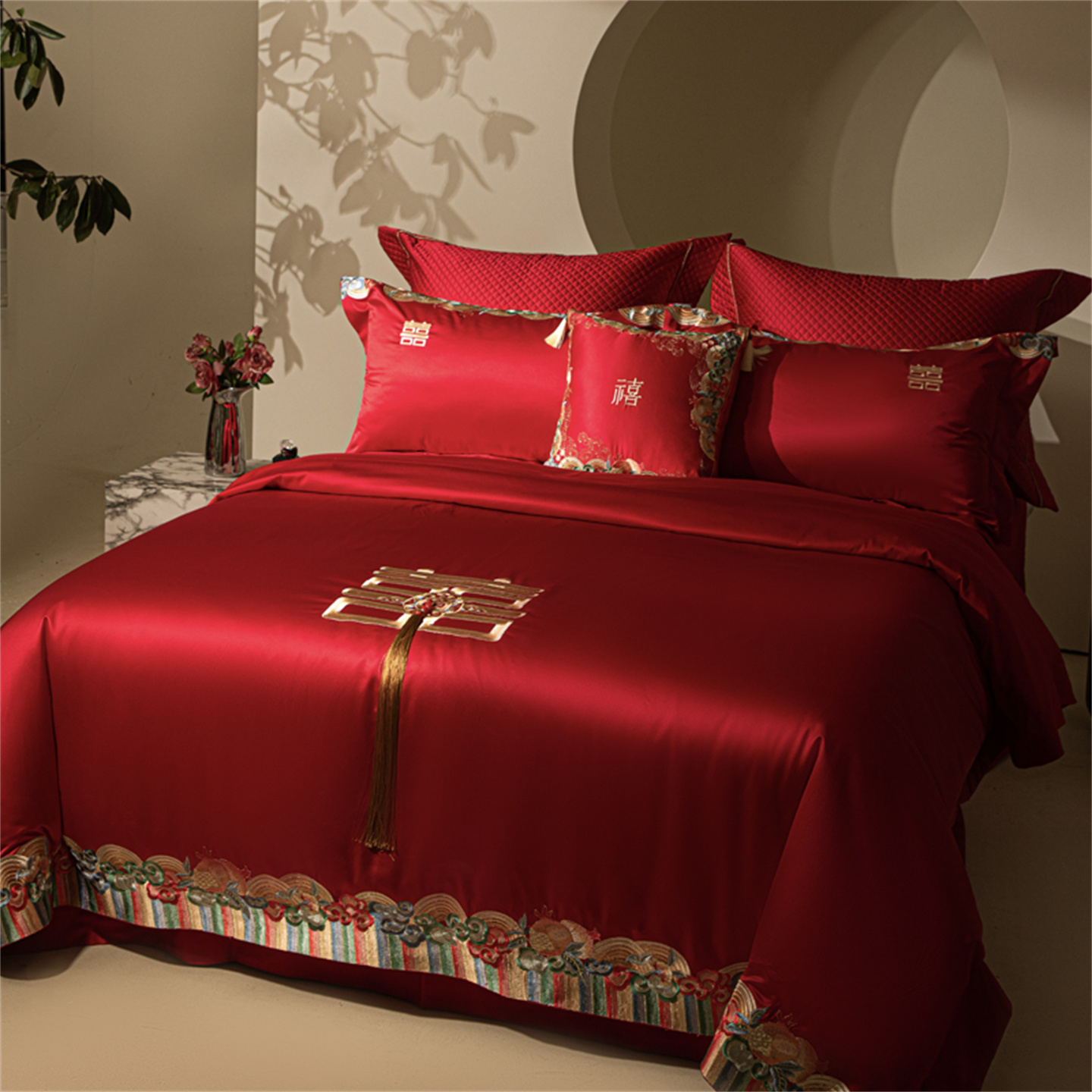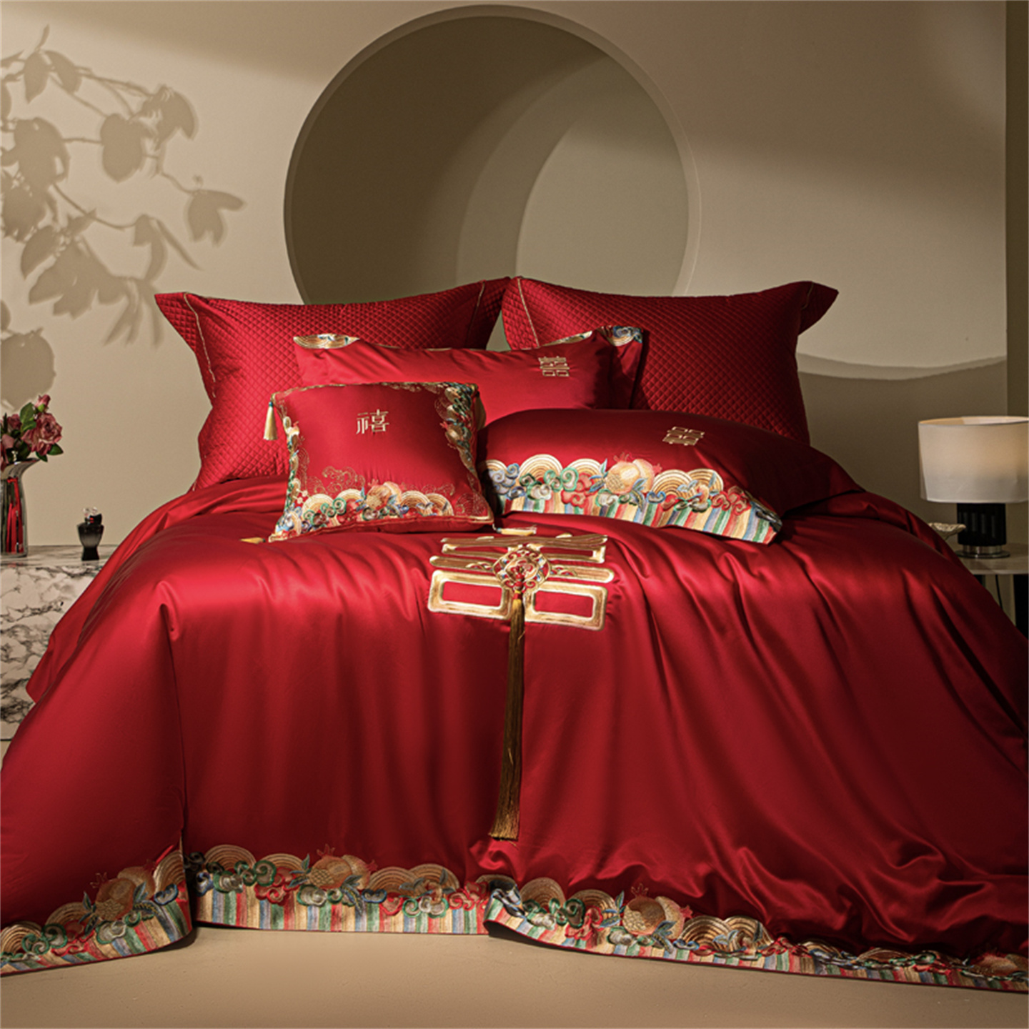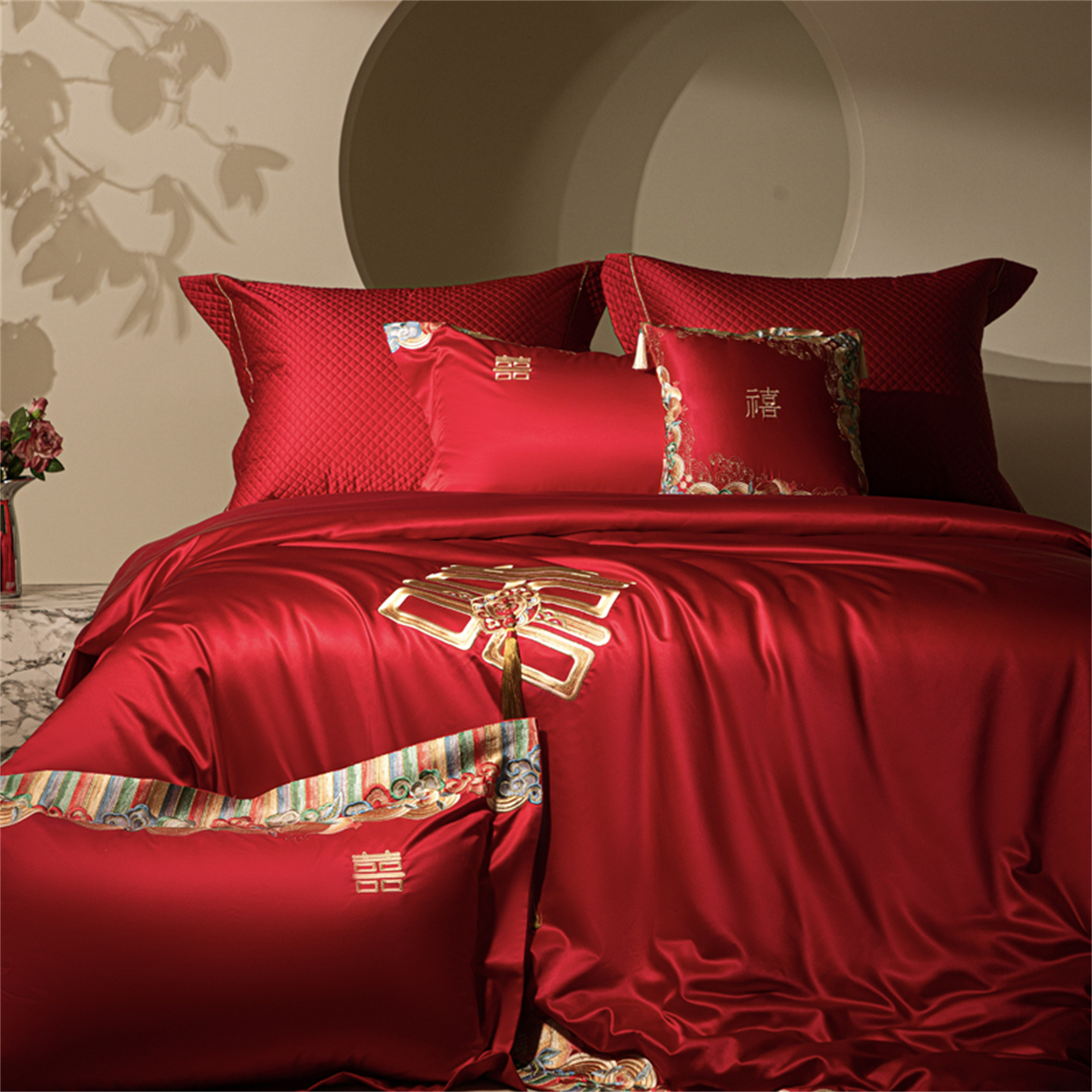 商品名称:(总)佳汐蓝家纺 2025新款100支全棉刺绣婚庆四件套-喜传祥瑞