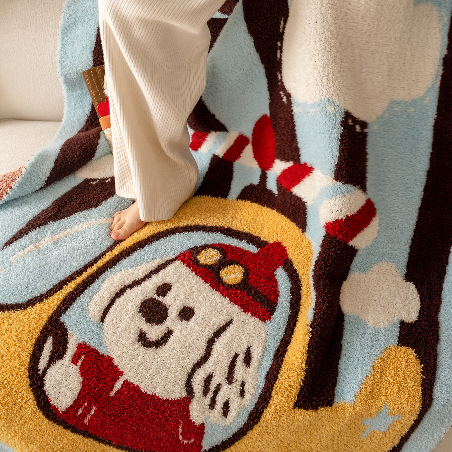 商品名称:多乐娜 2025新款原创设计半边绒毛毯盖毯沙发毯毯子 奶棕萌汪