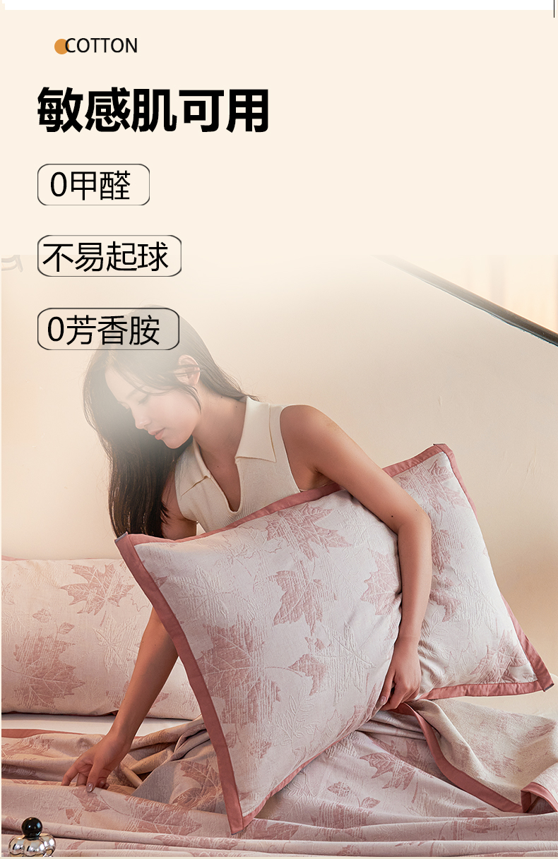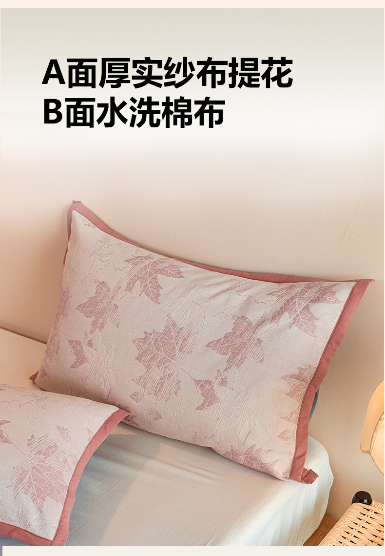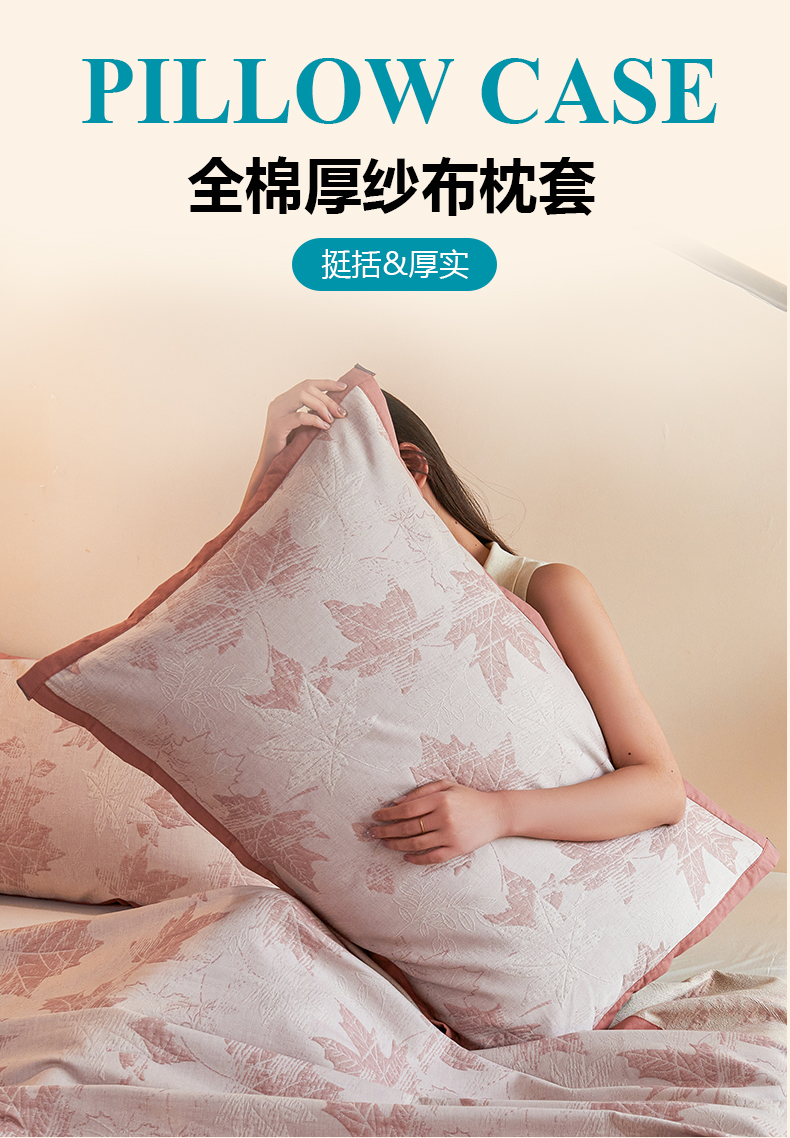 商品名称:棠薇家纺 2025新款全棉纱布枕套厚枕套 枫叶浅豆沙
