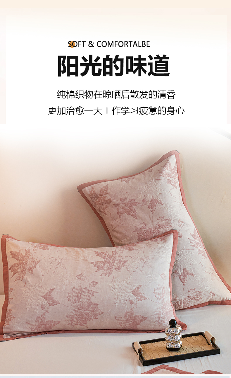 棠薇家纺 2025新款全棉纱布枕套厚枕套 枫叶浅豆沙