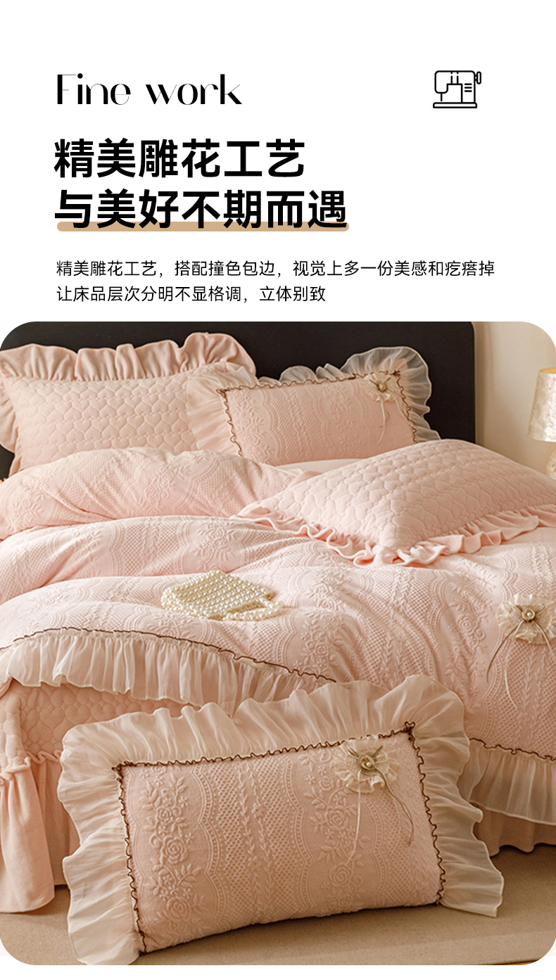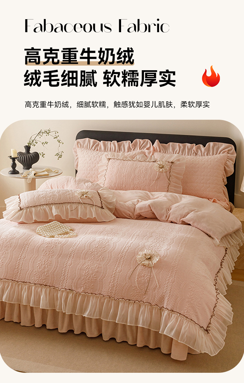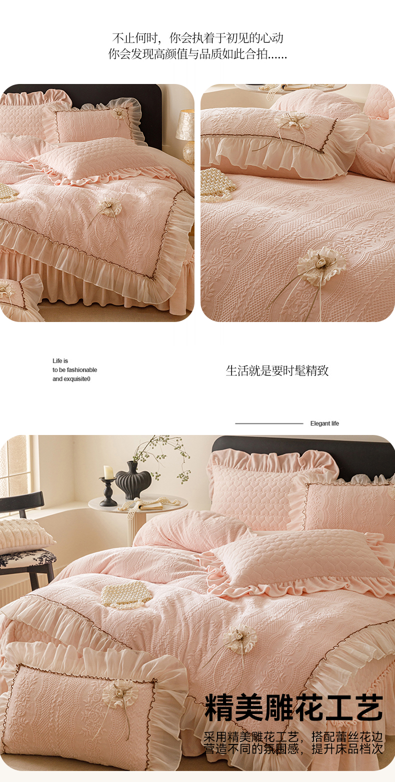 商品名称:好儿喜家纺 2025新款雕花牛奶绒床盖四件套-瑞享系列 瑞享-浅粉