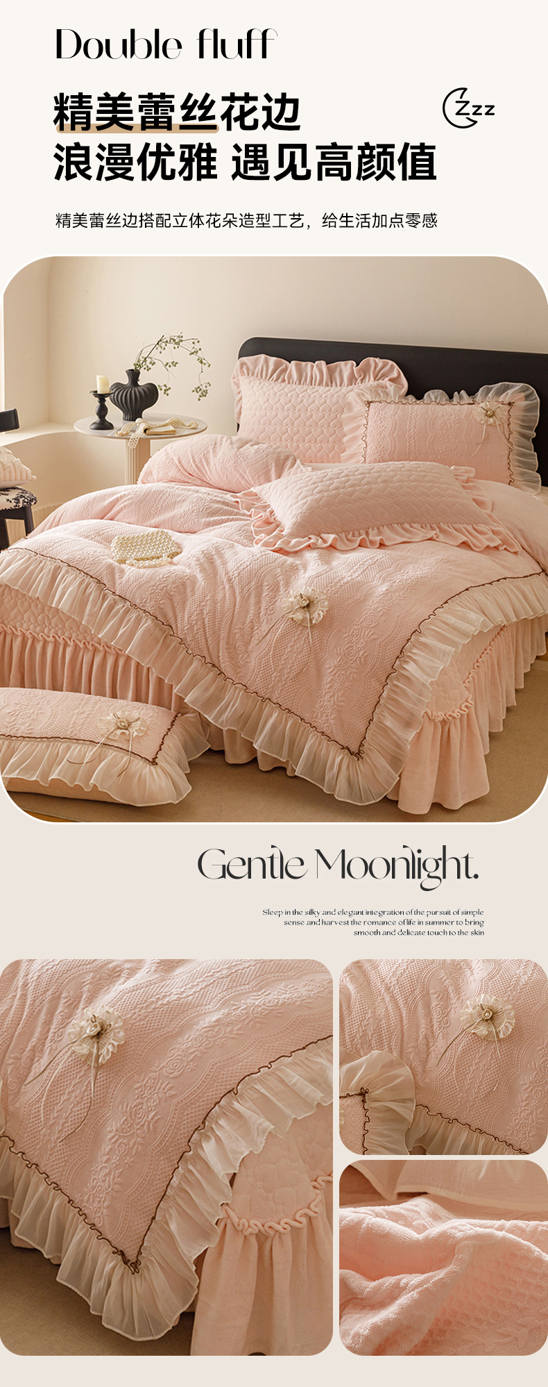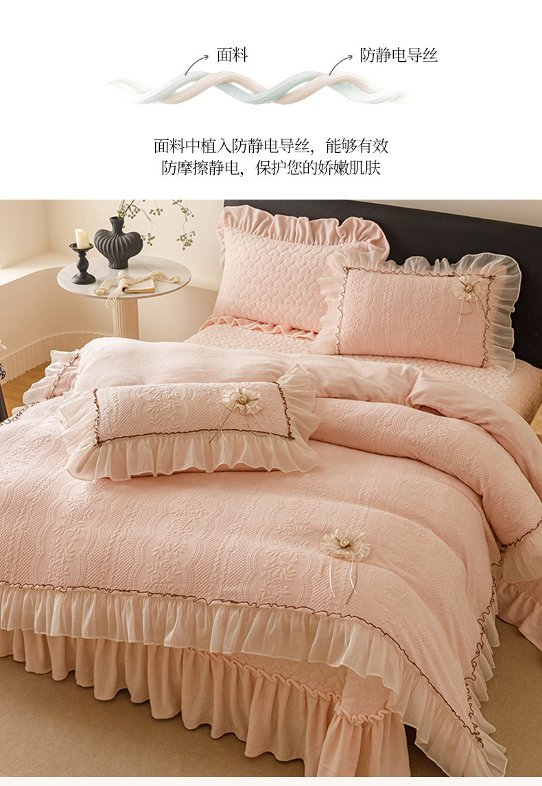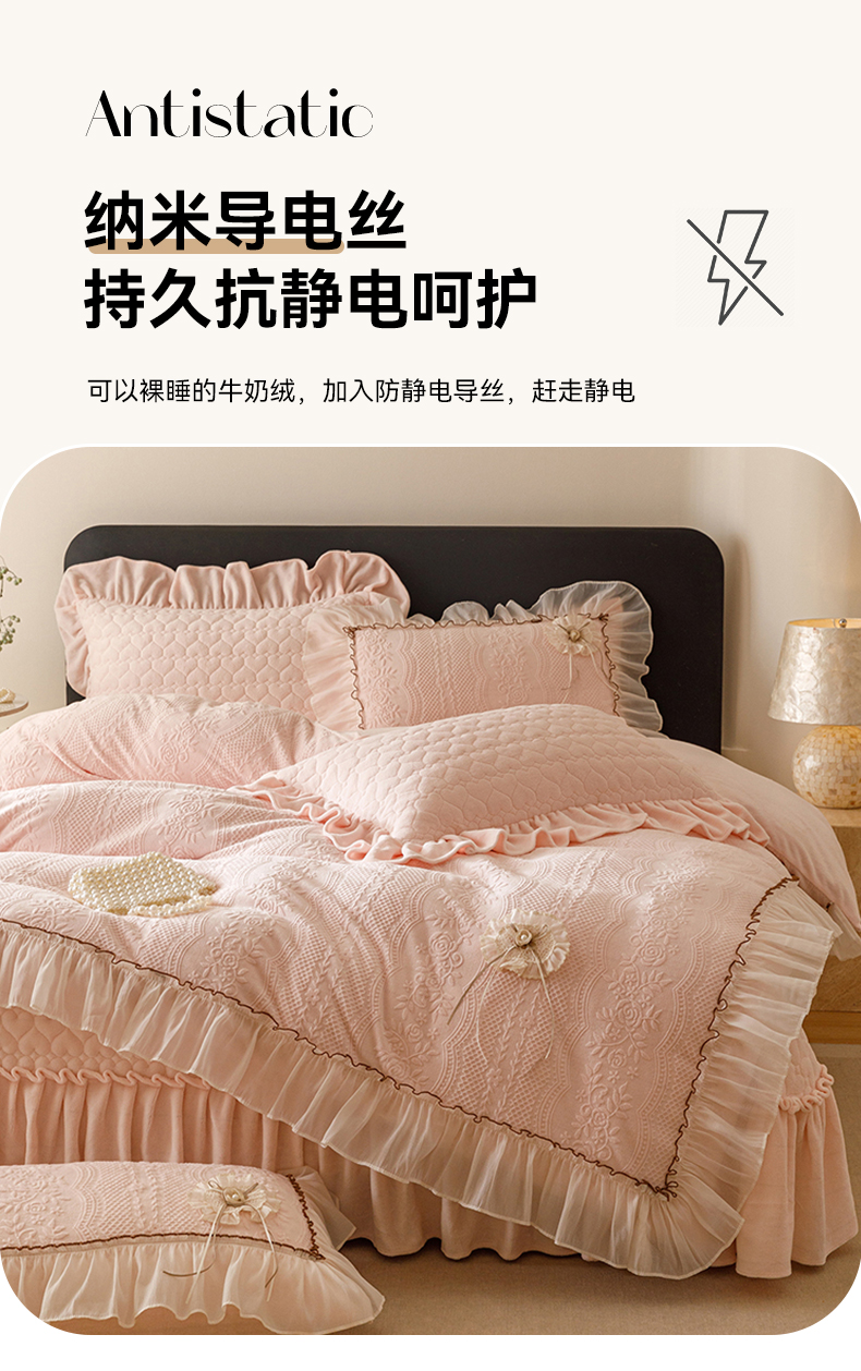 商品名称:好儿喜家纺 2025新款雕花牛奶绒床盖四件套-瑞享系列 瑞享-浅粉