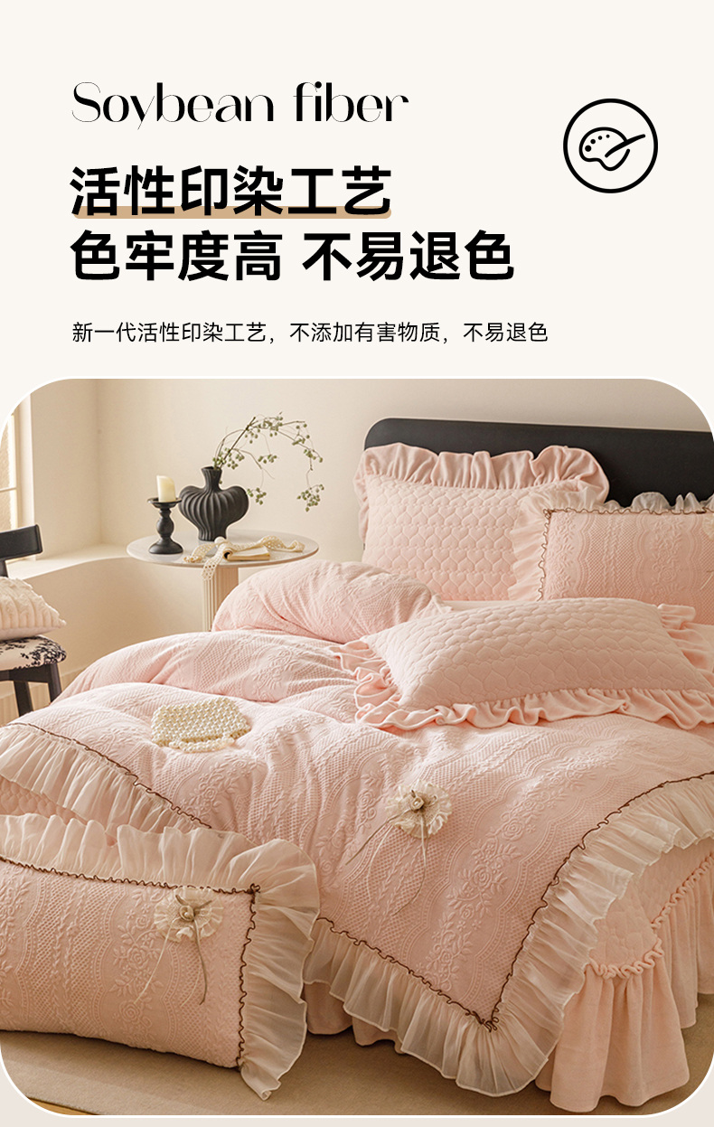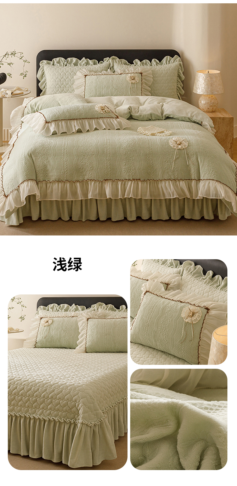 (总)好儿喜家纺 2024新款伊芙琳夏被凉席床裙四件套,浅绿,橄榄绿,奶白,浅粉,浅蓝