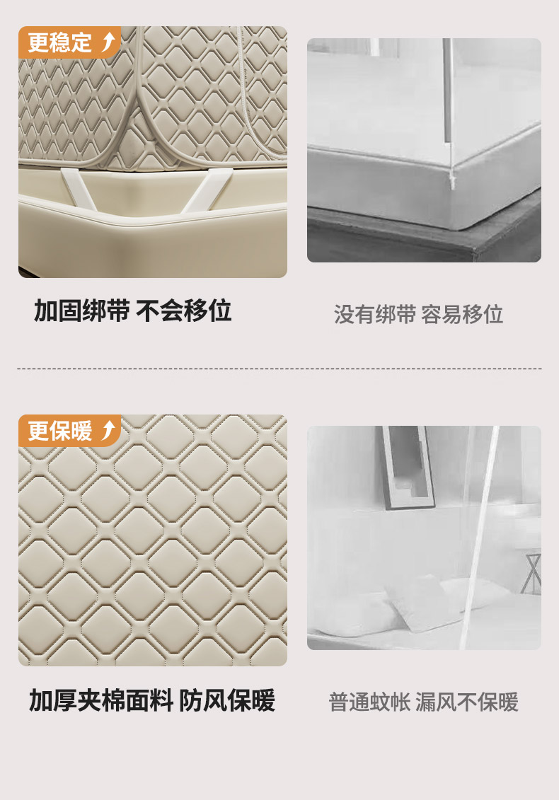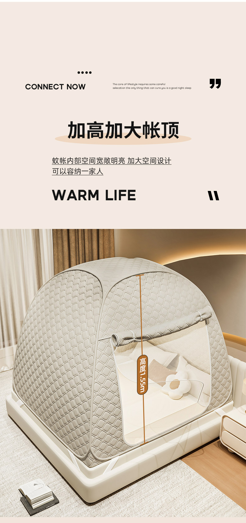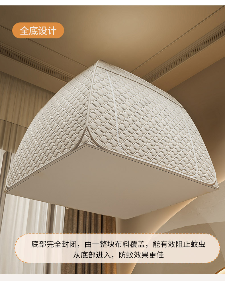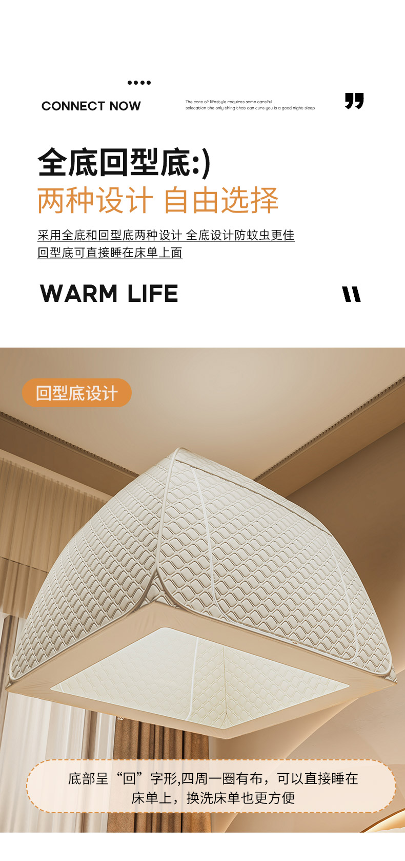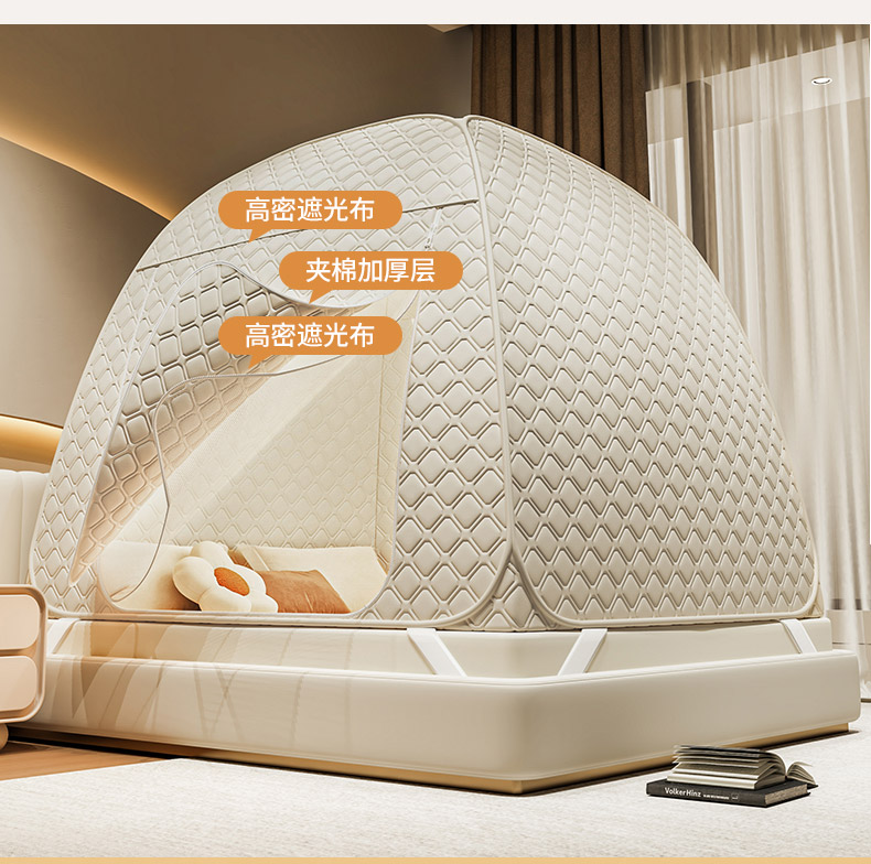 商品名称:海虹蚊帐 2025新款免安装保暖遮光钢丝蚊帐 浅米咖夹棉特厚全底