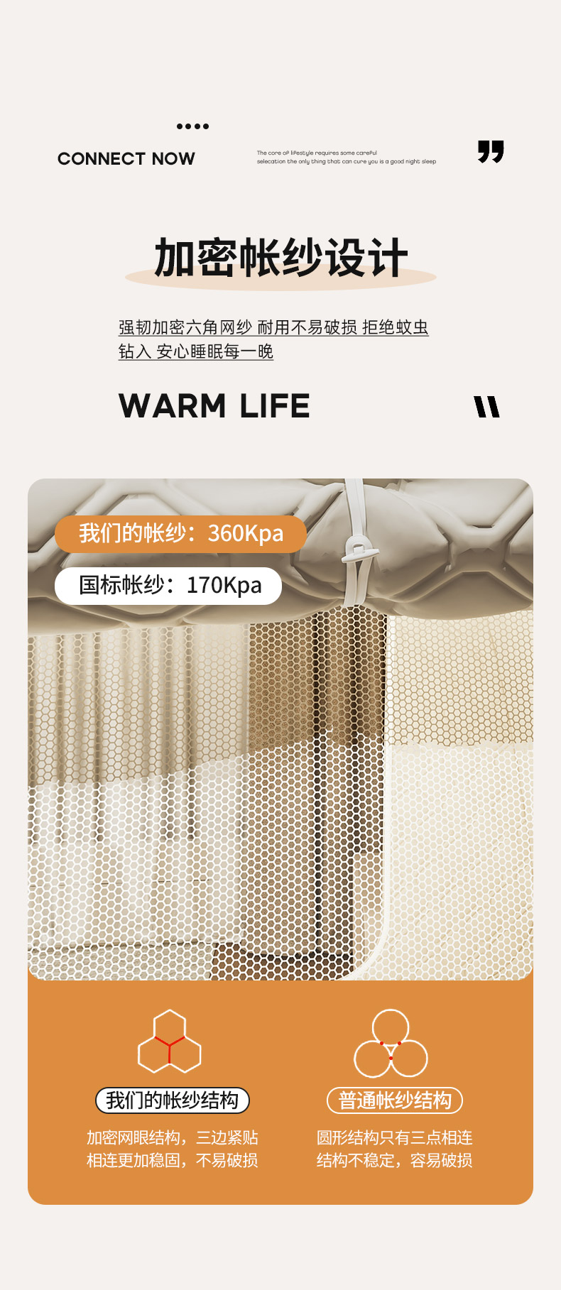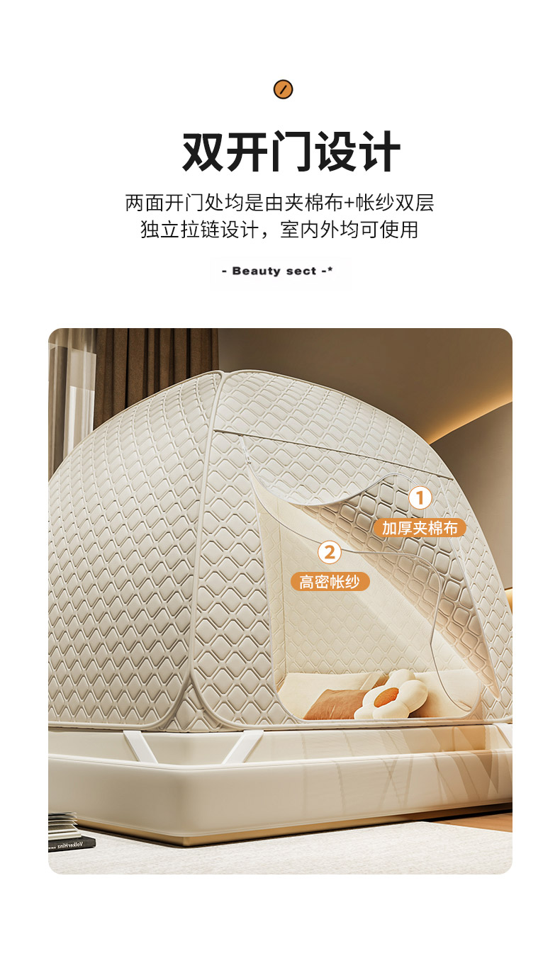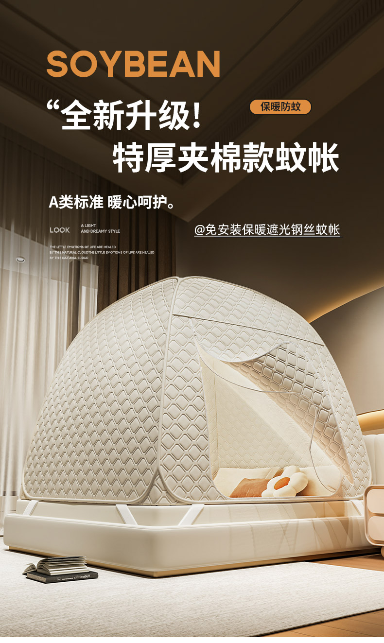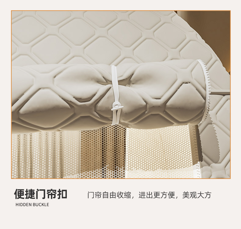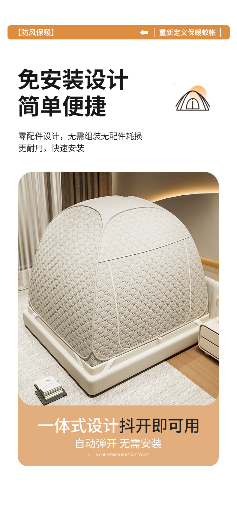商品名称:海虹蚊帐 2025新款免安装保暖遮光钢丝蚊帐 浅米咖夹棉特厚全底