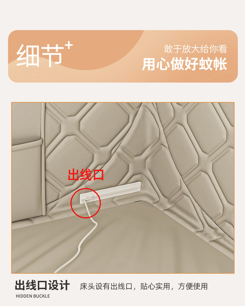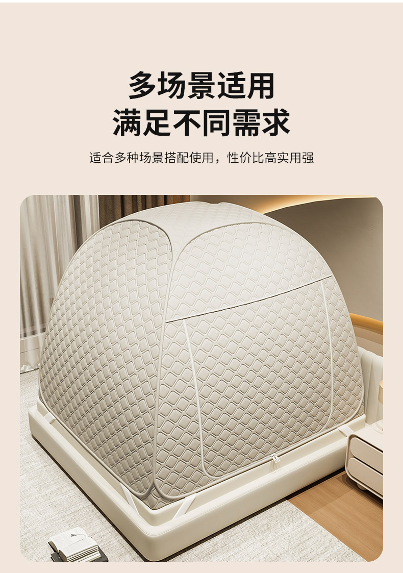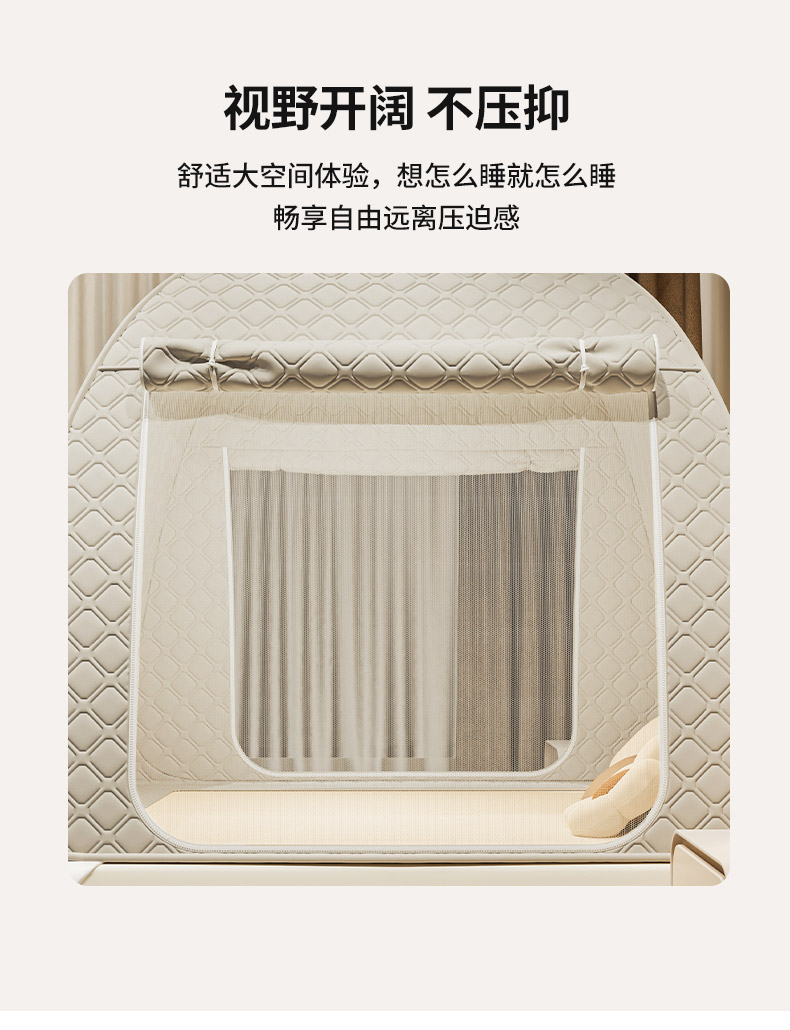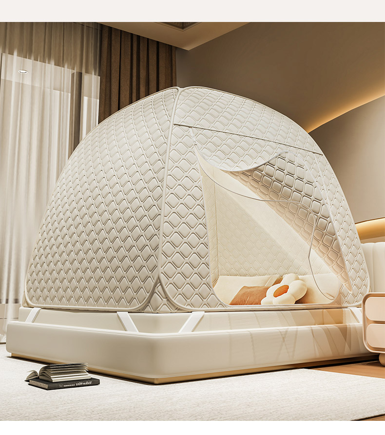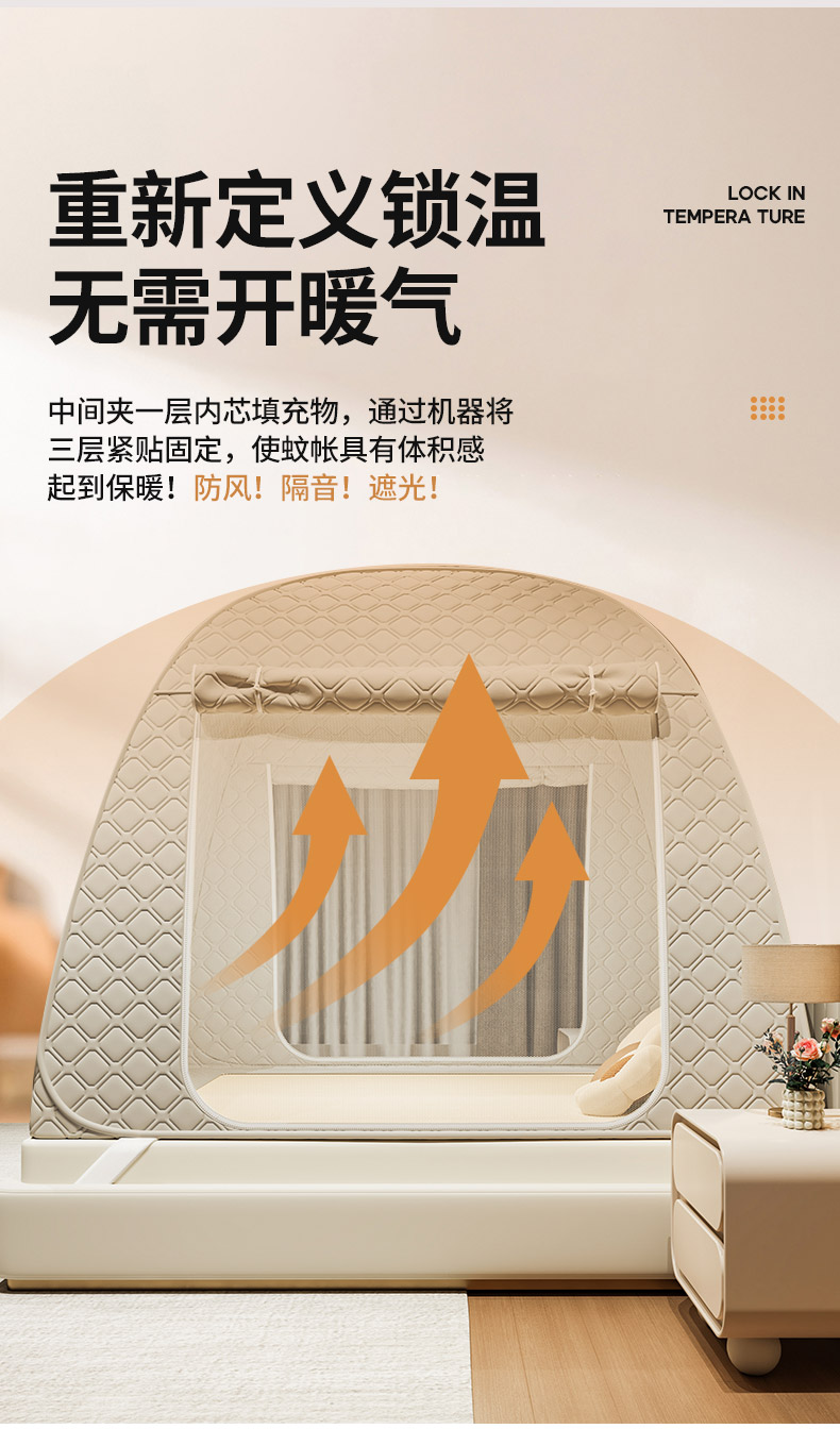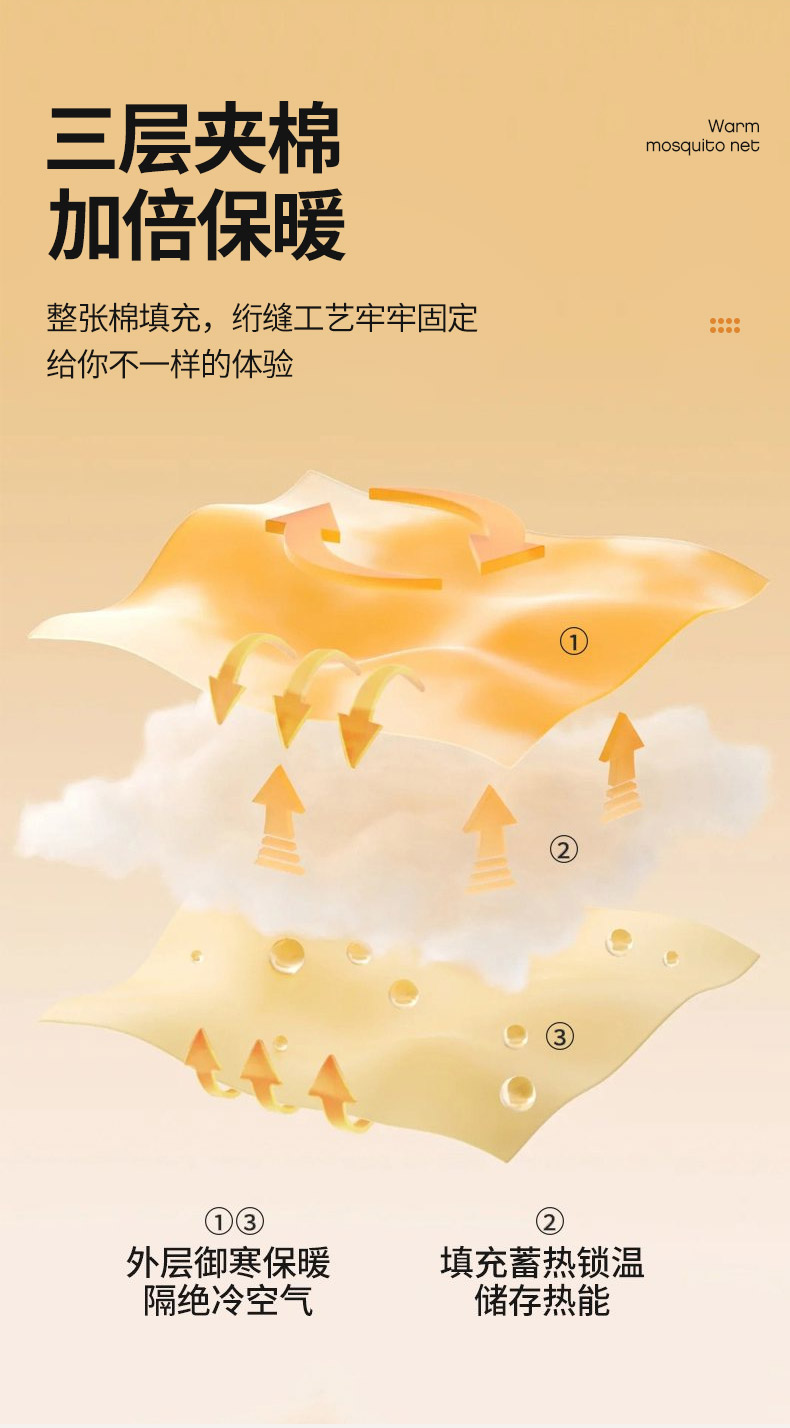 商品名称:海虹蚊帐 2025新款免安装保暖遮光钢丝蚊帐 浅米咖夹棉特厚全底