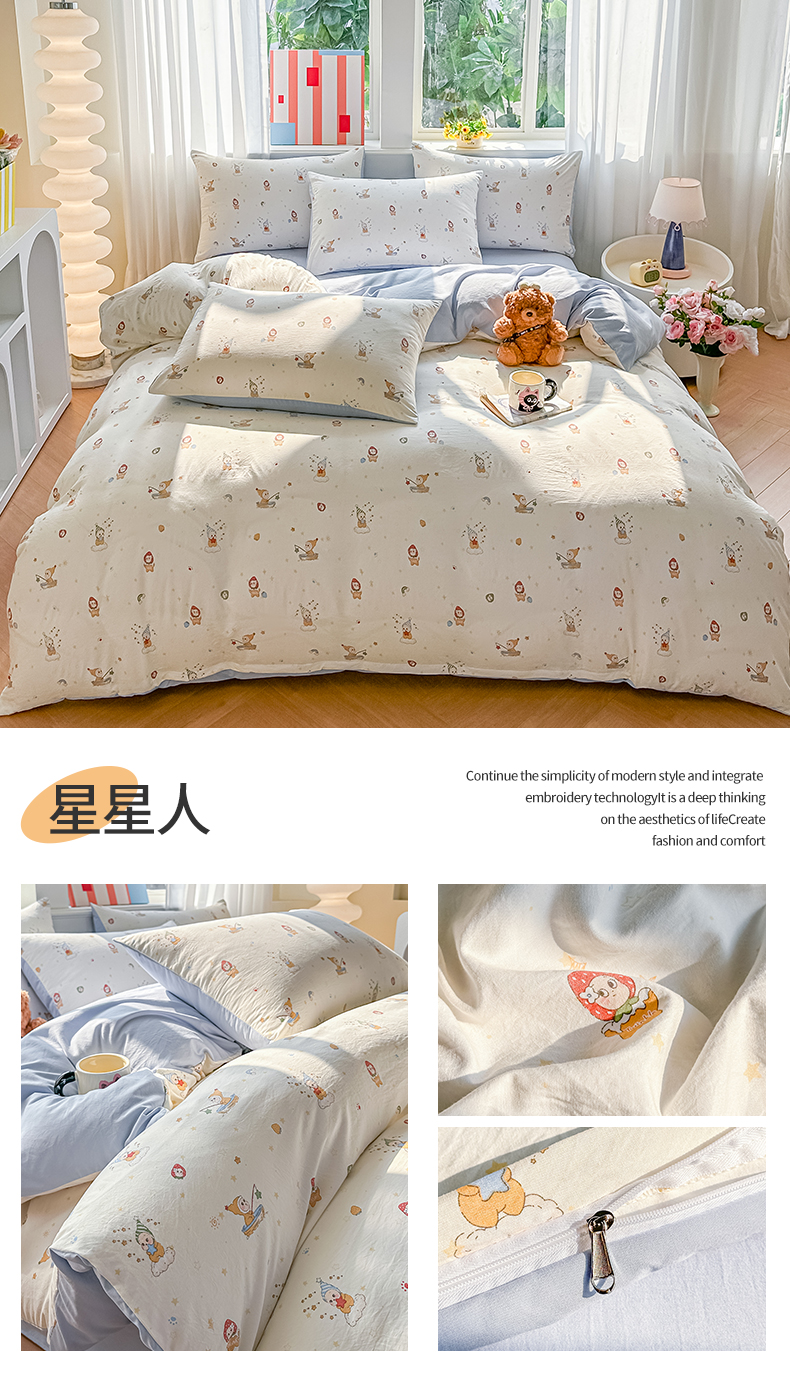 当前位置: 91家纺网 > 商品网购 > 床品套件 > 四件套 > 其它四件套 > 梦庭帛美 2026新款云朵A类三层纱印花四件套(提供买家秀) 星星人