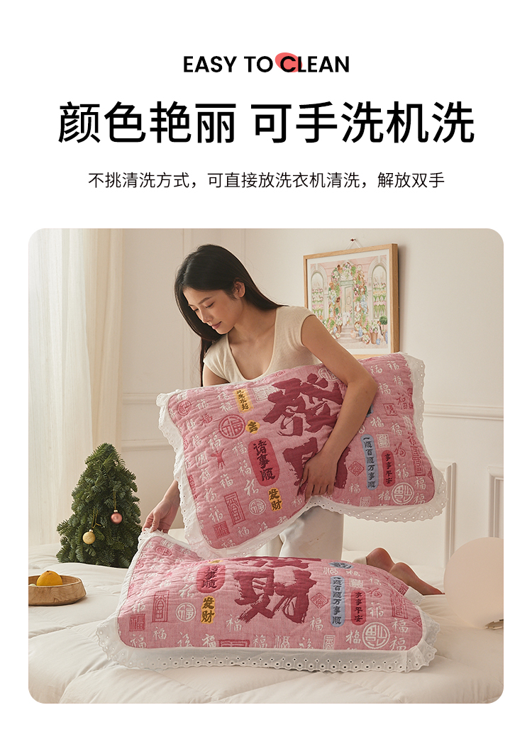 沐瑟家纺 2025新款花边枕巾 命好