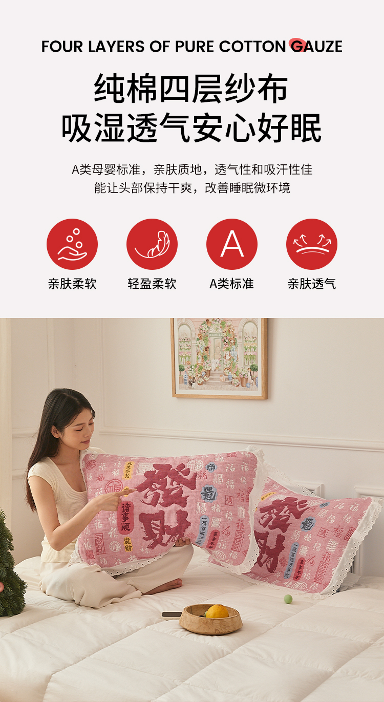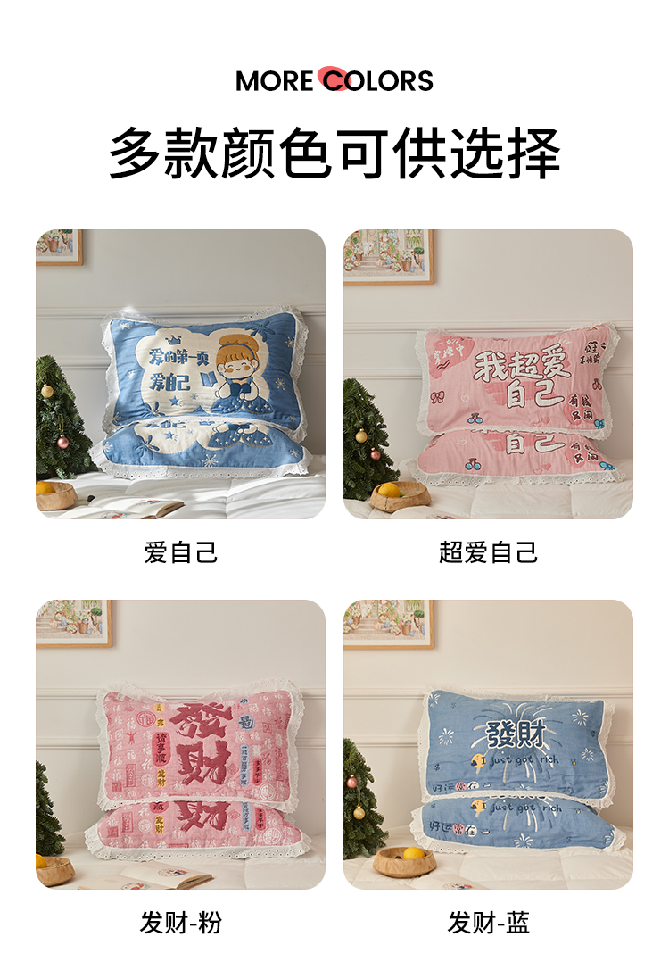 (总)沐瑟家纺 2026新款亲肤舒适全棉四层纱布枕巾-星星和心情系列,心情-粉色,心情-灰蓝,心情-卡其,星星-黄色,星星-灰色,星星-蓝色,星星-紫色,组合图仅做展示不可下单