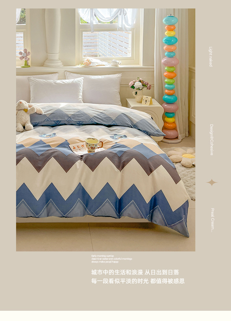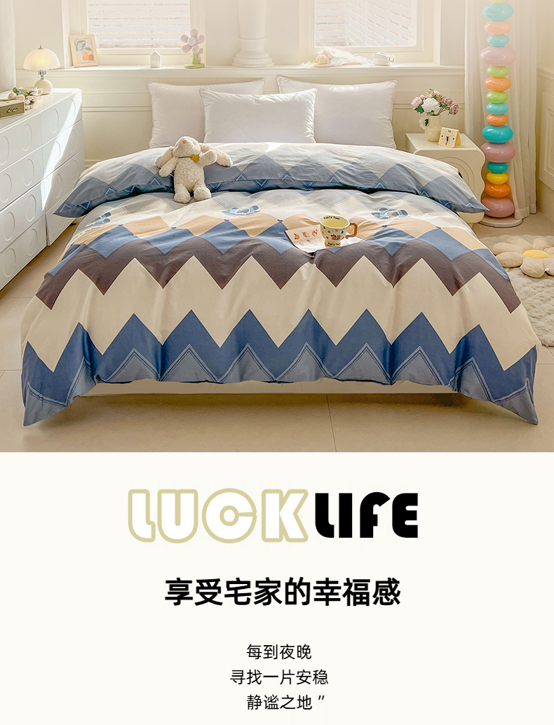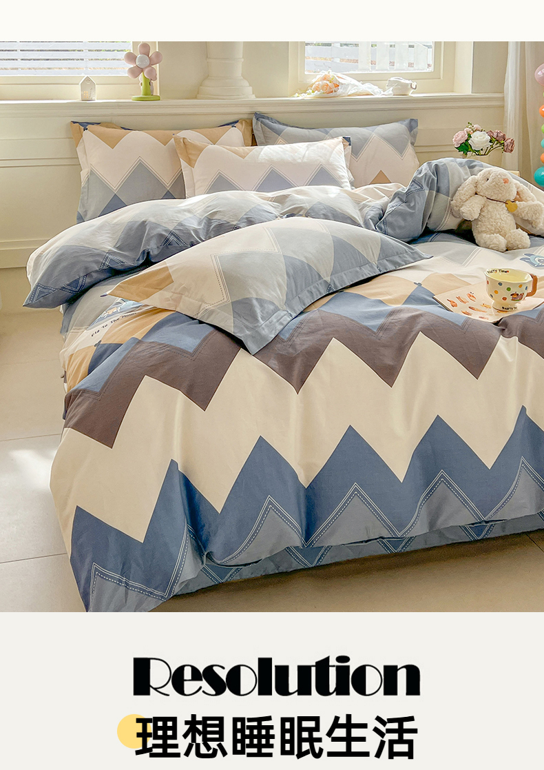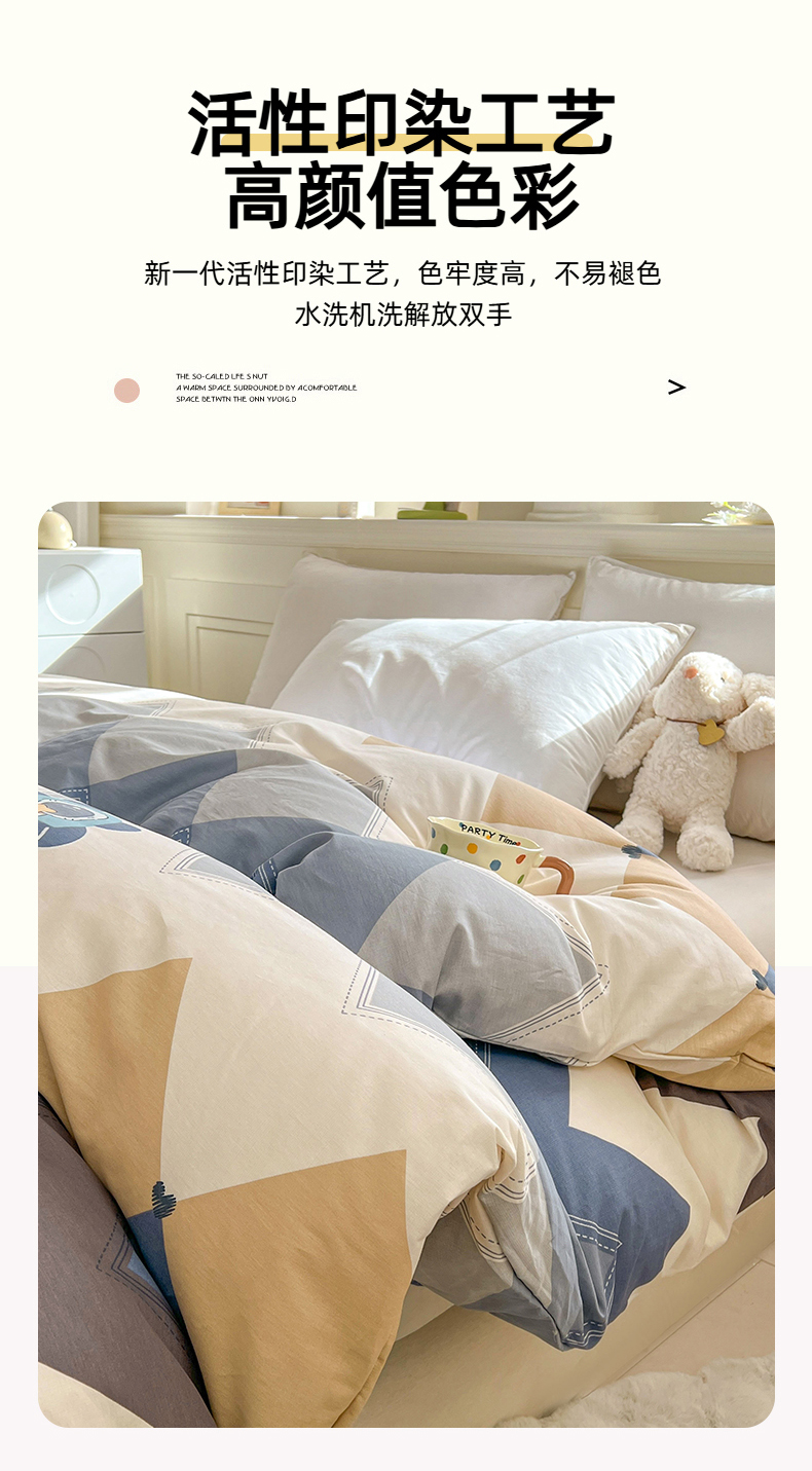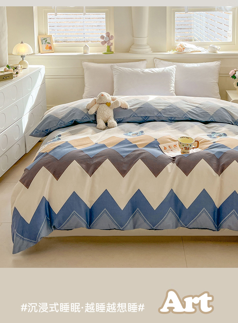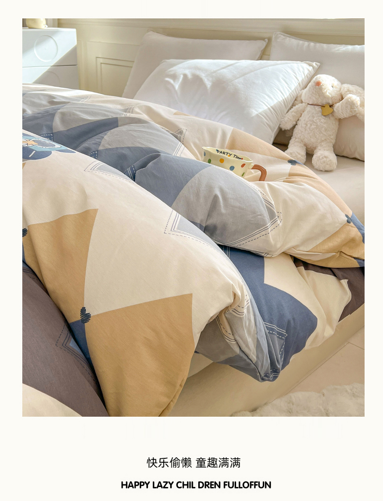 • 91家纺网 家纺一手货源 找家纺 名优家纺 2026新款12868全棉小清新印花四件套单品系列-单被套 几何飞船