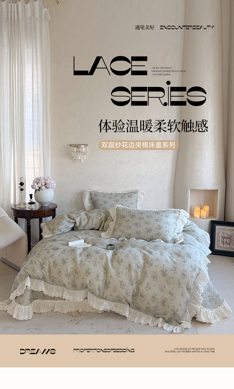 (总)琳可家居 2026新款60S长绒棉花边床盖A类双面全棉高温水洗-蝶恋系列,蝶恋-暖白,蝶恋-卡其,蝶恋-雾粉,组合