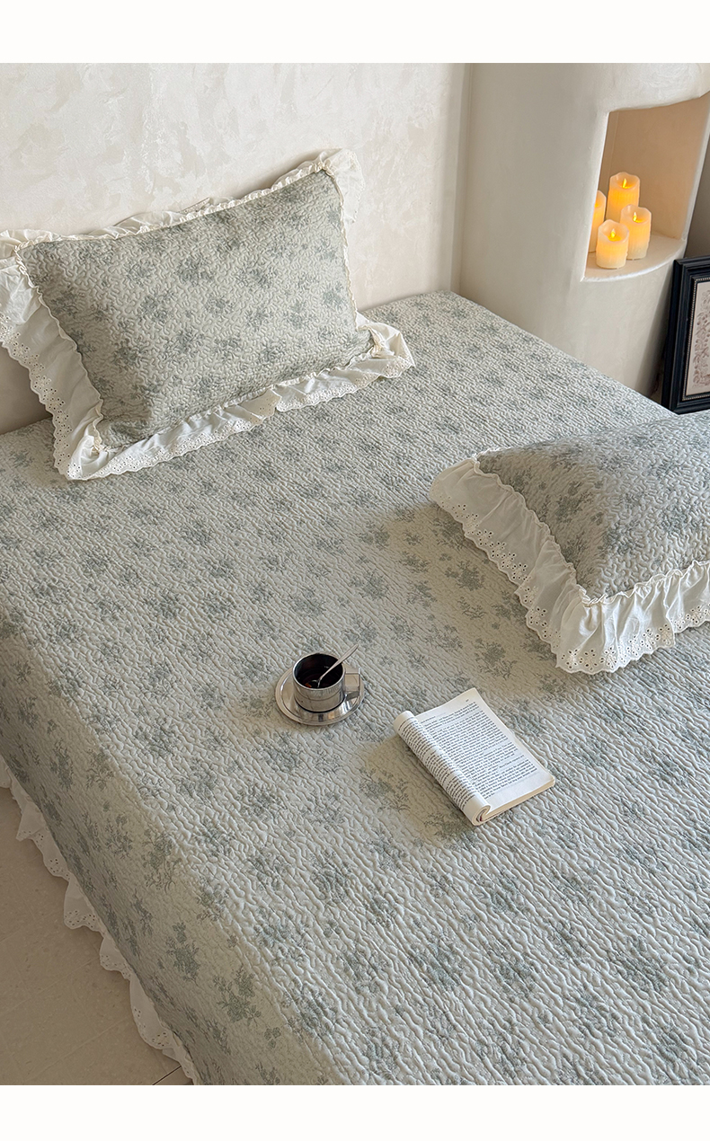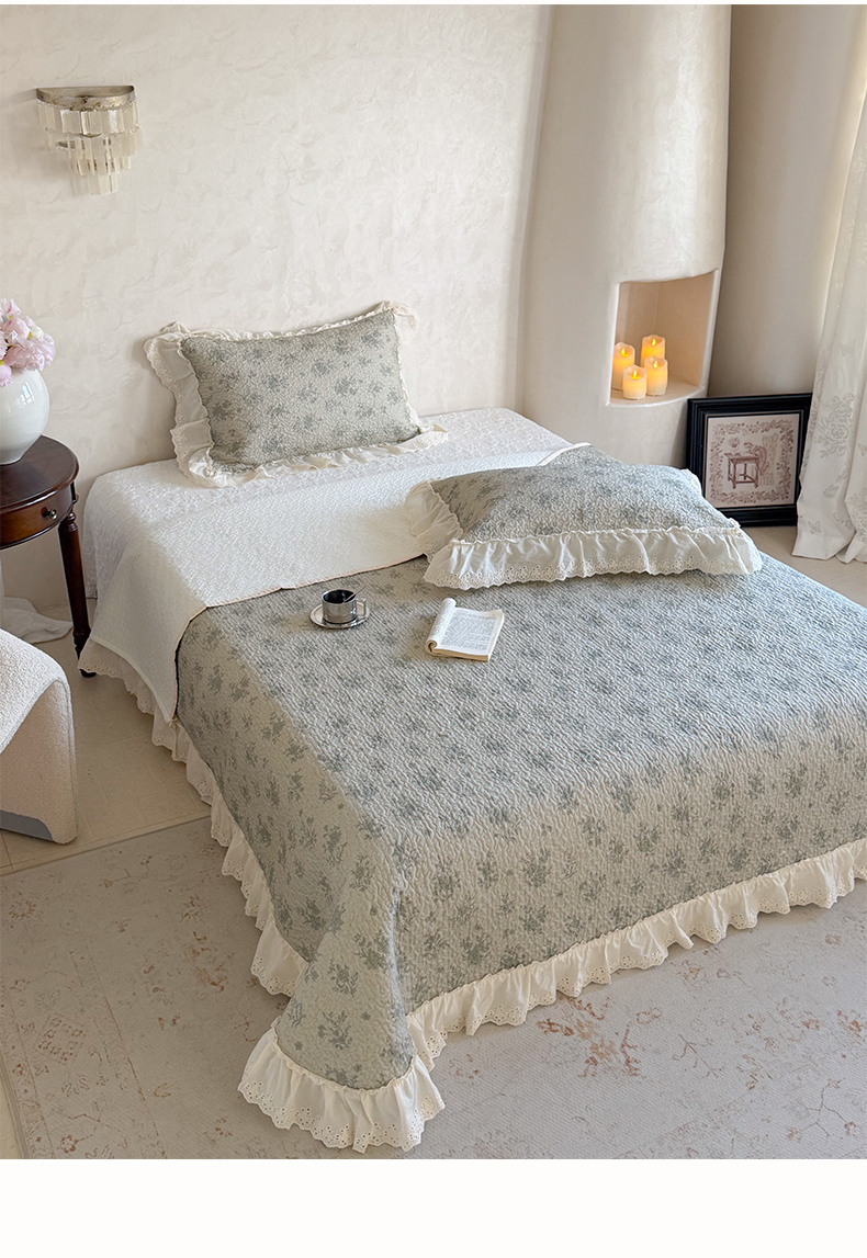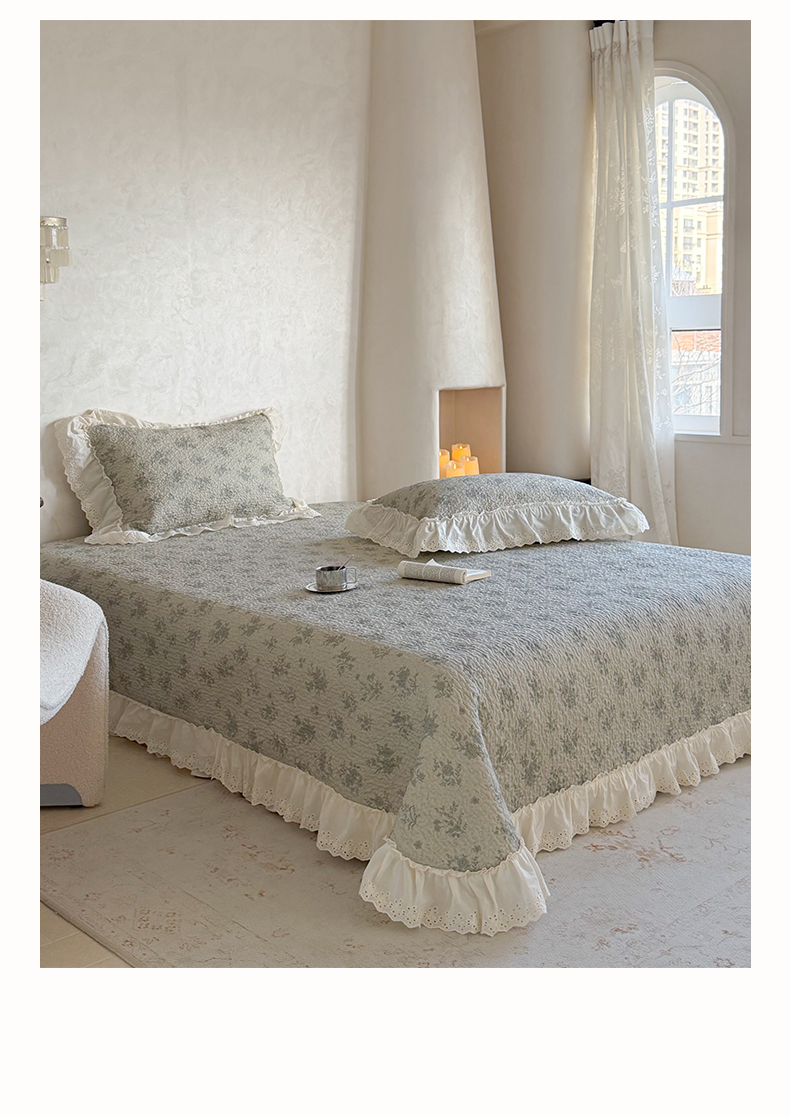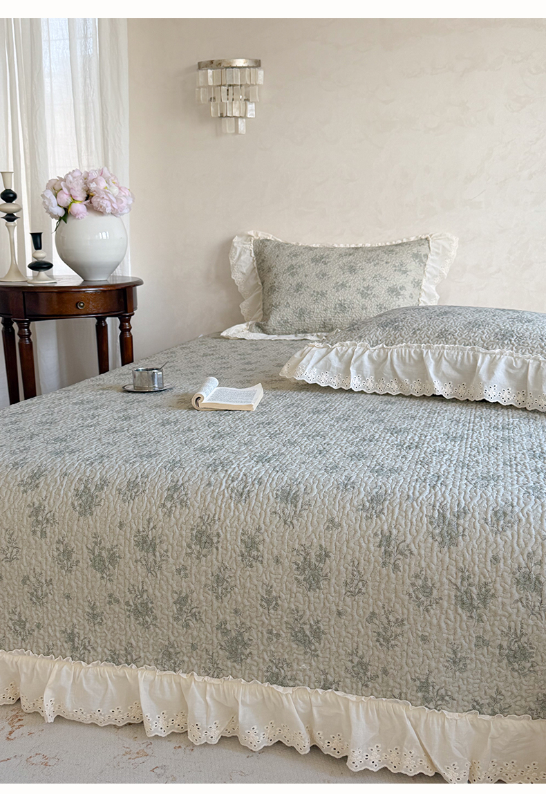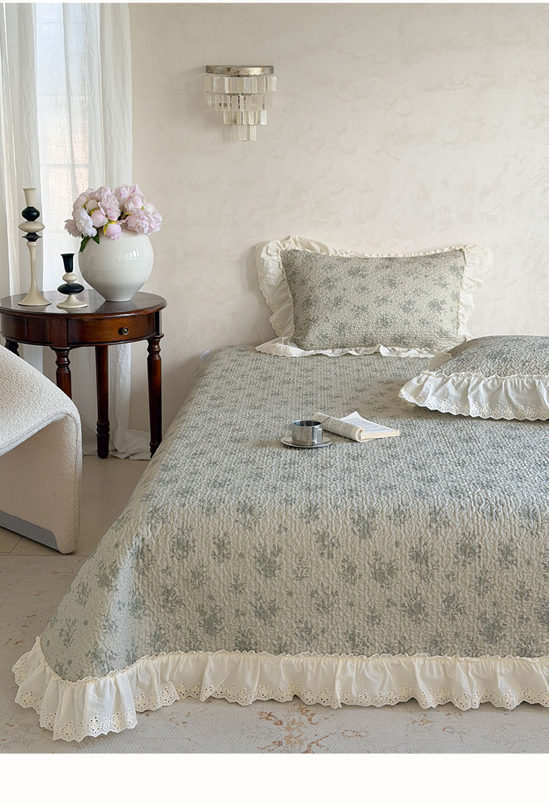 商品名称:琳可家居 2026新款印花全棉双层纱床盖棉布花边高温水洗A类标准夹棉可机洗 风雅花韵